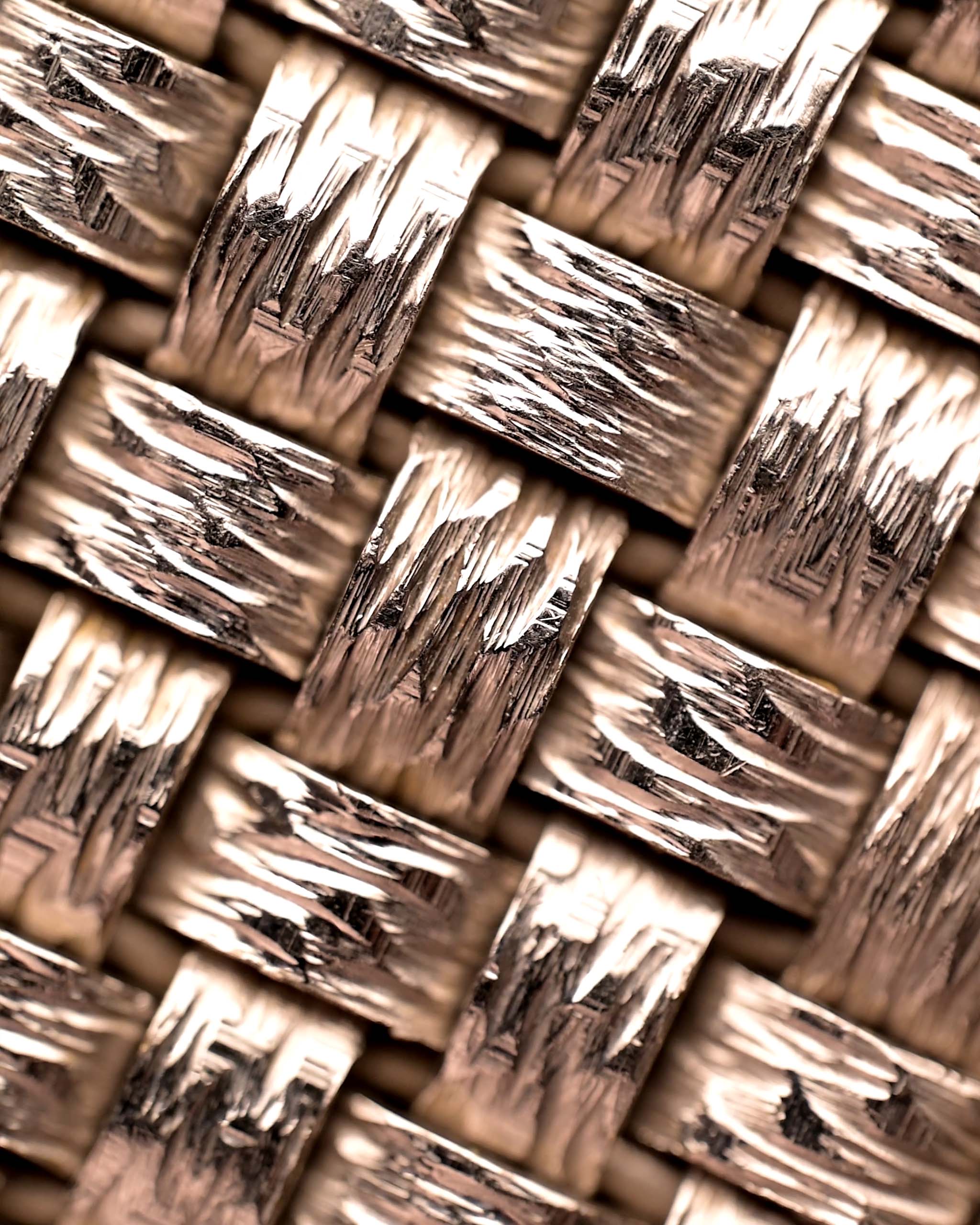Porté au poignet, le bracelet panier souple se moule naturellement à la peau - un confort luxueux qui définit une opulence discrète.