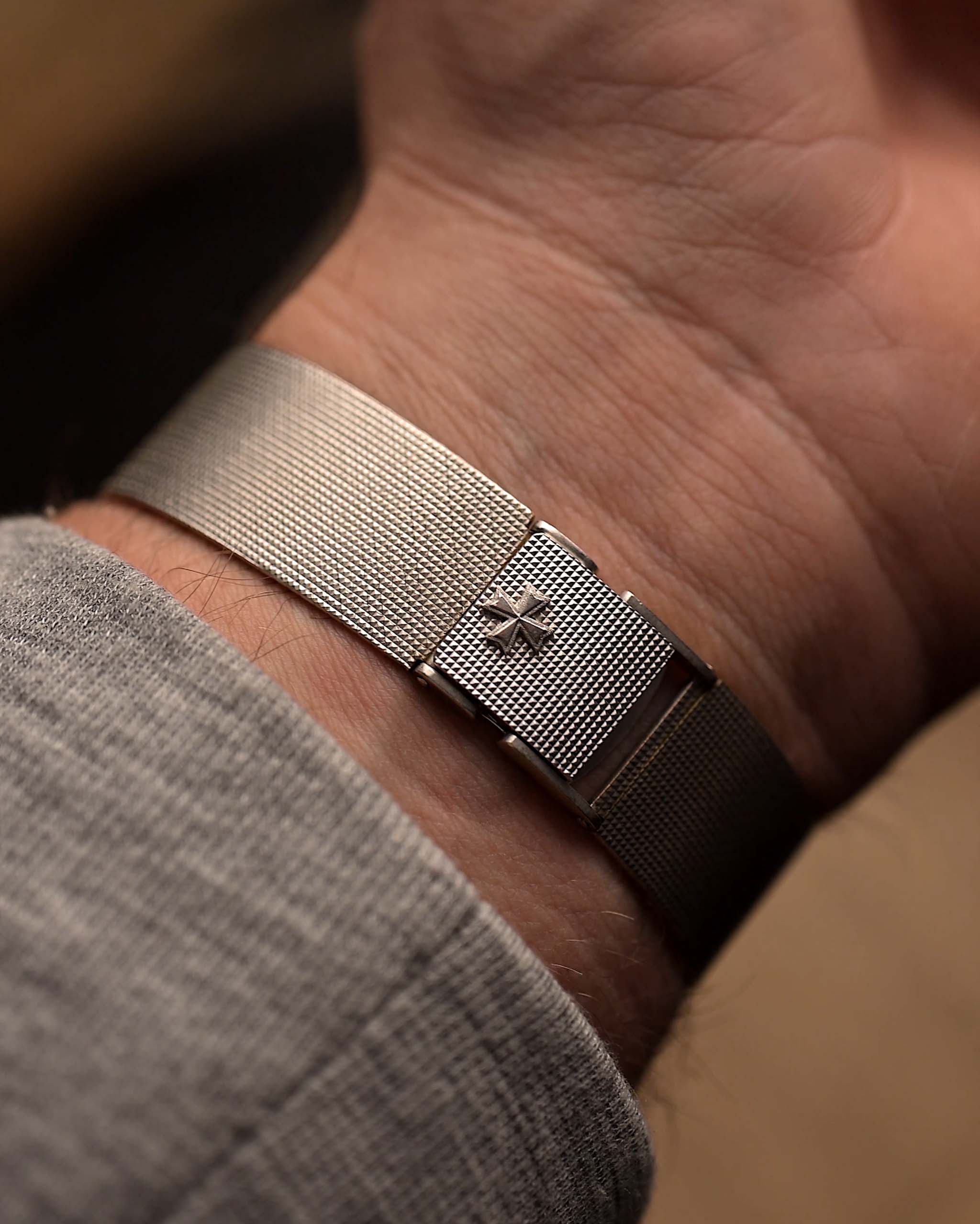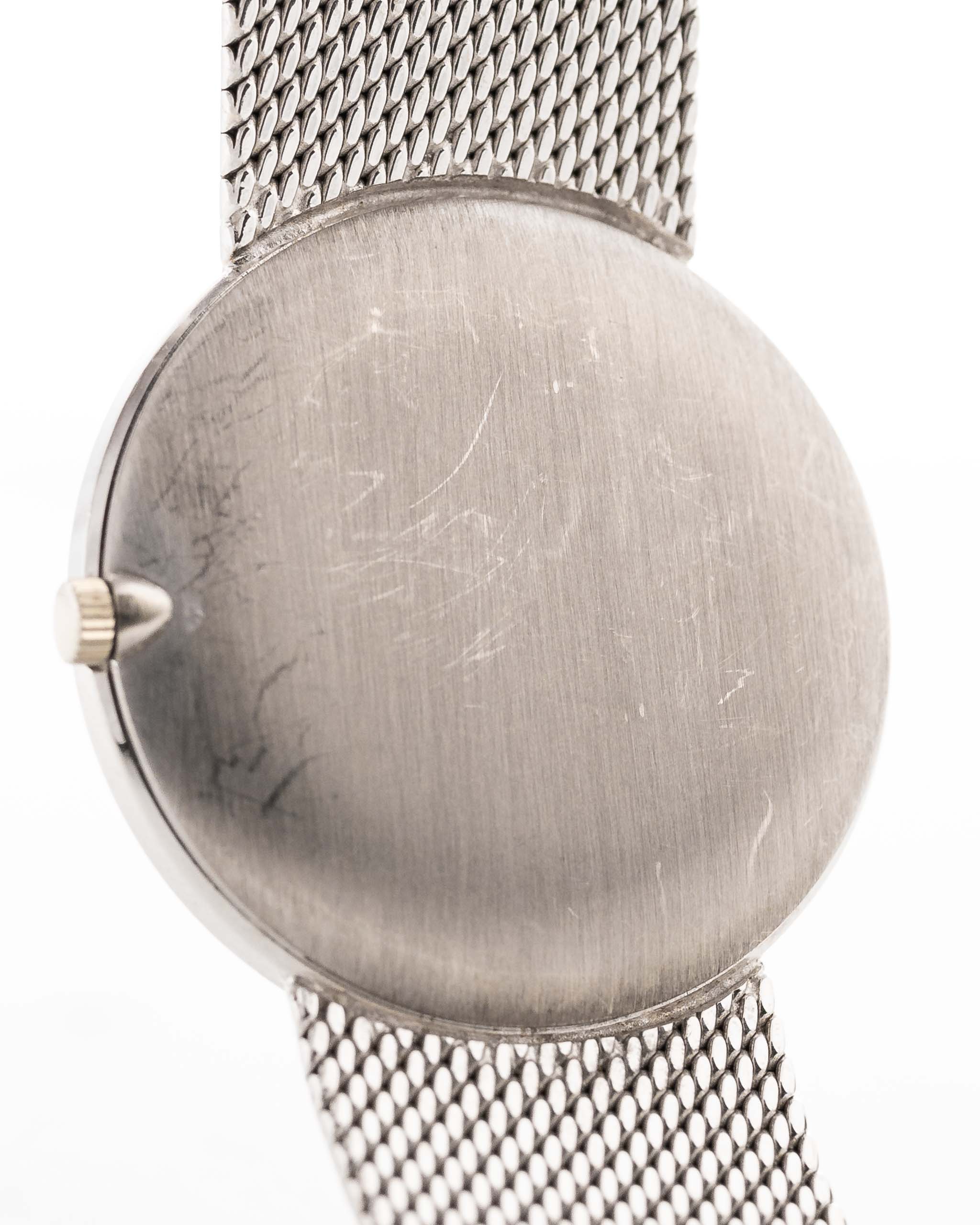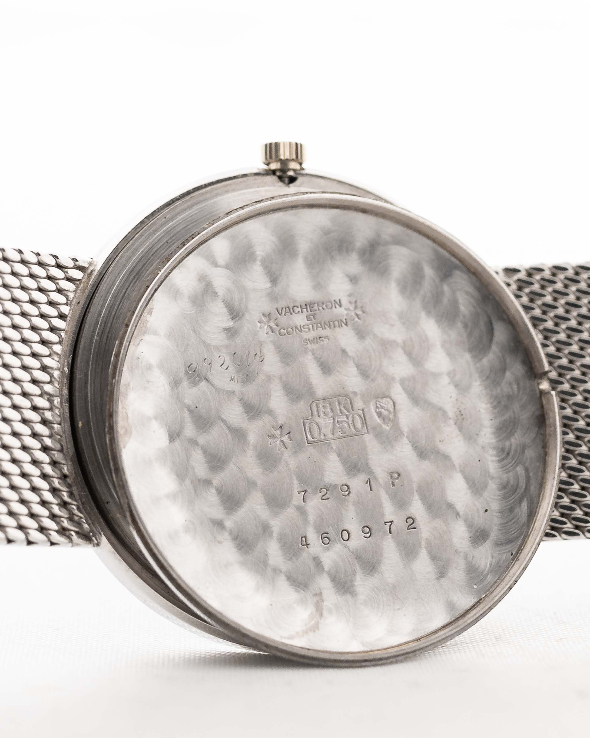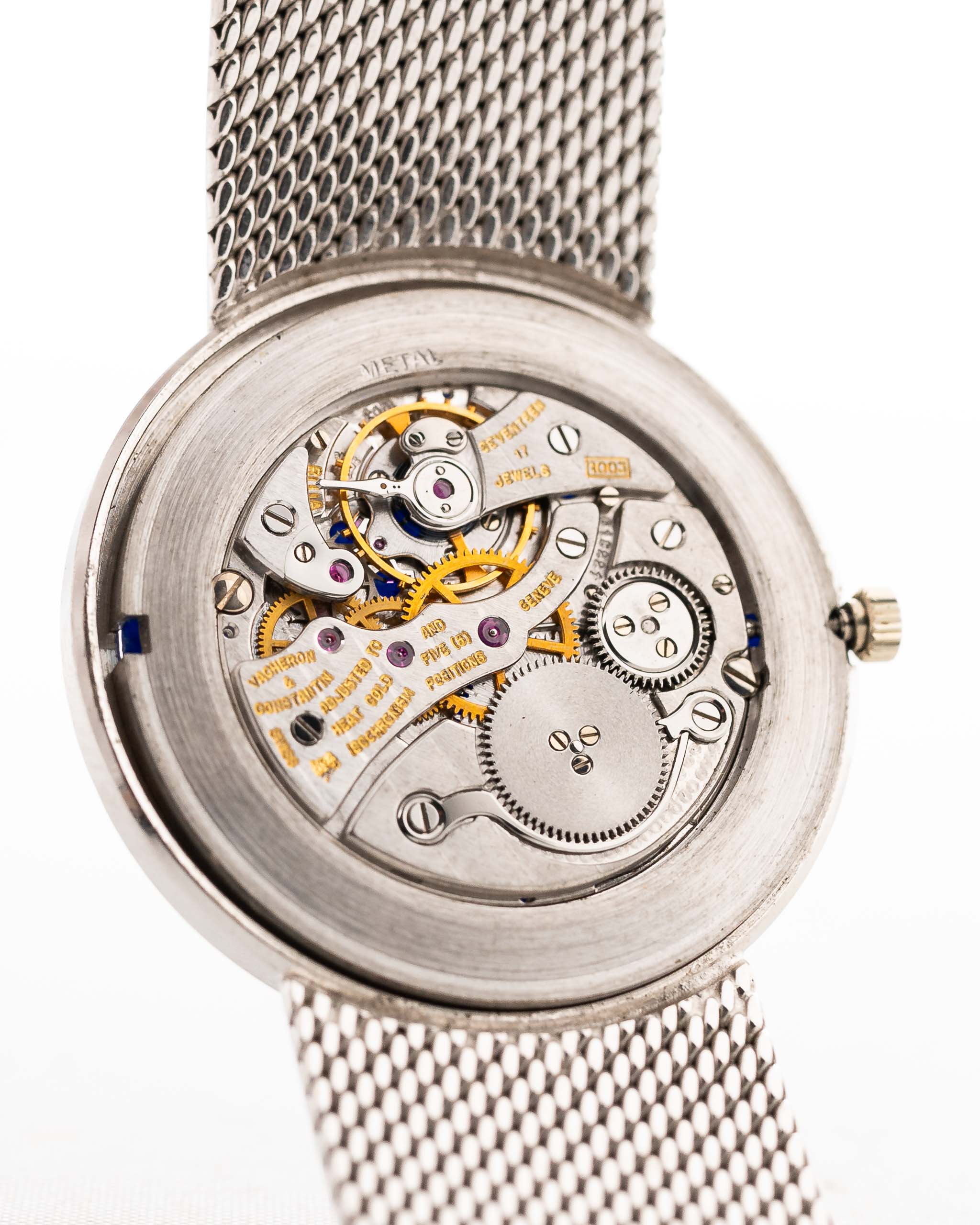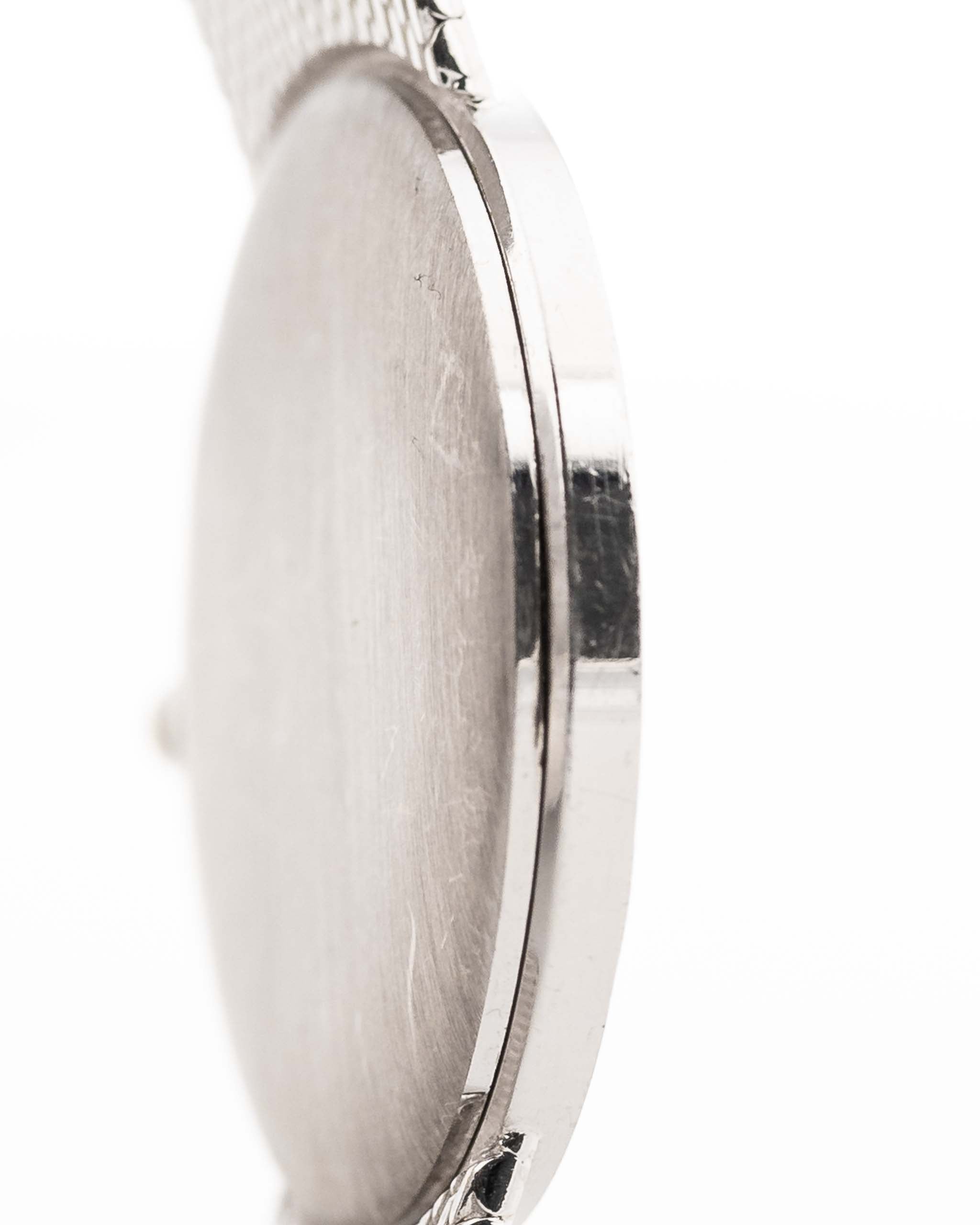 L'une des montres habillées Vacheron Constantin les plus rares et les plus remarquables des années 1970, rarement observée sur le marché. Le boîtier raffiné de 31 mm en or blanc 18 carats est associé à unbracelet intégréen or blanc, offrant à la fois une profondeur visuelle et un confort exceptionnel.
