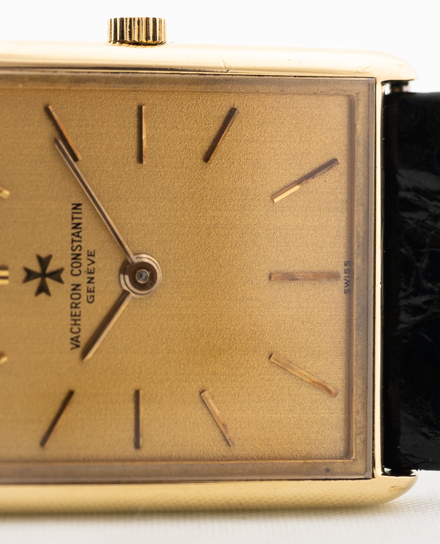 Nous avons ici une montre Tank de Vacheron Constantin en or jaune 18 carats d'une grande beauté, datant des années 1970.