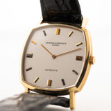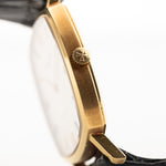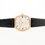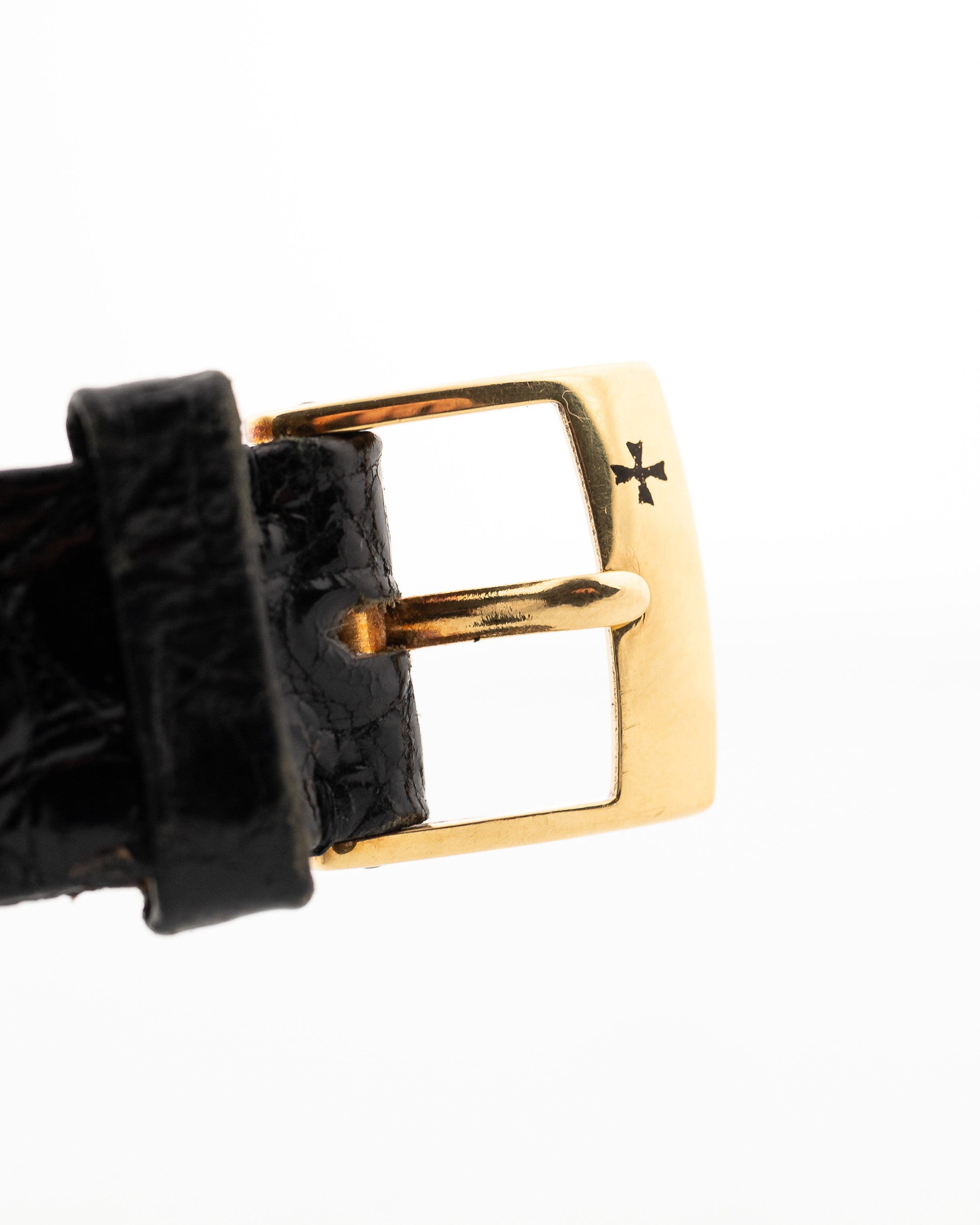 Nous vous présentons ici une montre habillée Vacheron Constantin en or jaune 18 carats de 1991, avec un boîtier en forme de télé. Cette pièce est remarquable pour son cadran en lin blanc, ses magnifiques index en or jaune 18 carats et son boîtier en or jaune 18 carats de forme TV.