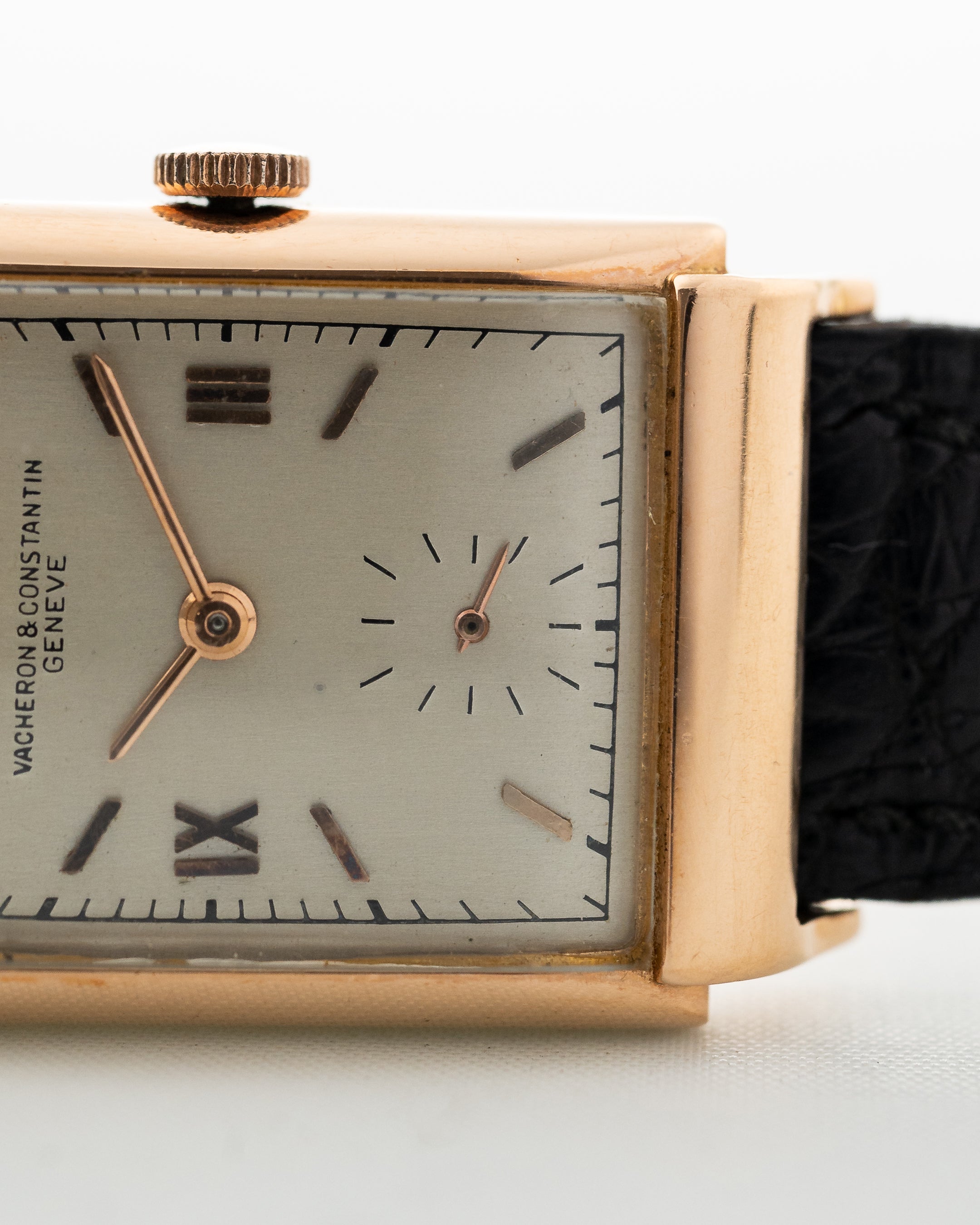 Nous avons ici une montre habillée Vacheron Constantin Rectangulaire de 1944, d'une finition magnifique, avec un cadran étonnamment conçu, comportant tant de détails qu'il est difficile de les mentionner tous.