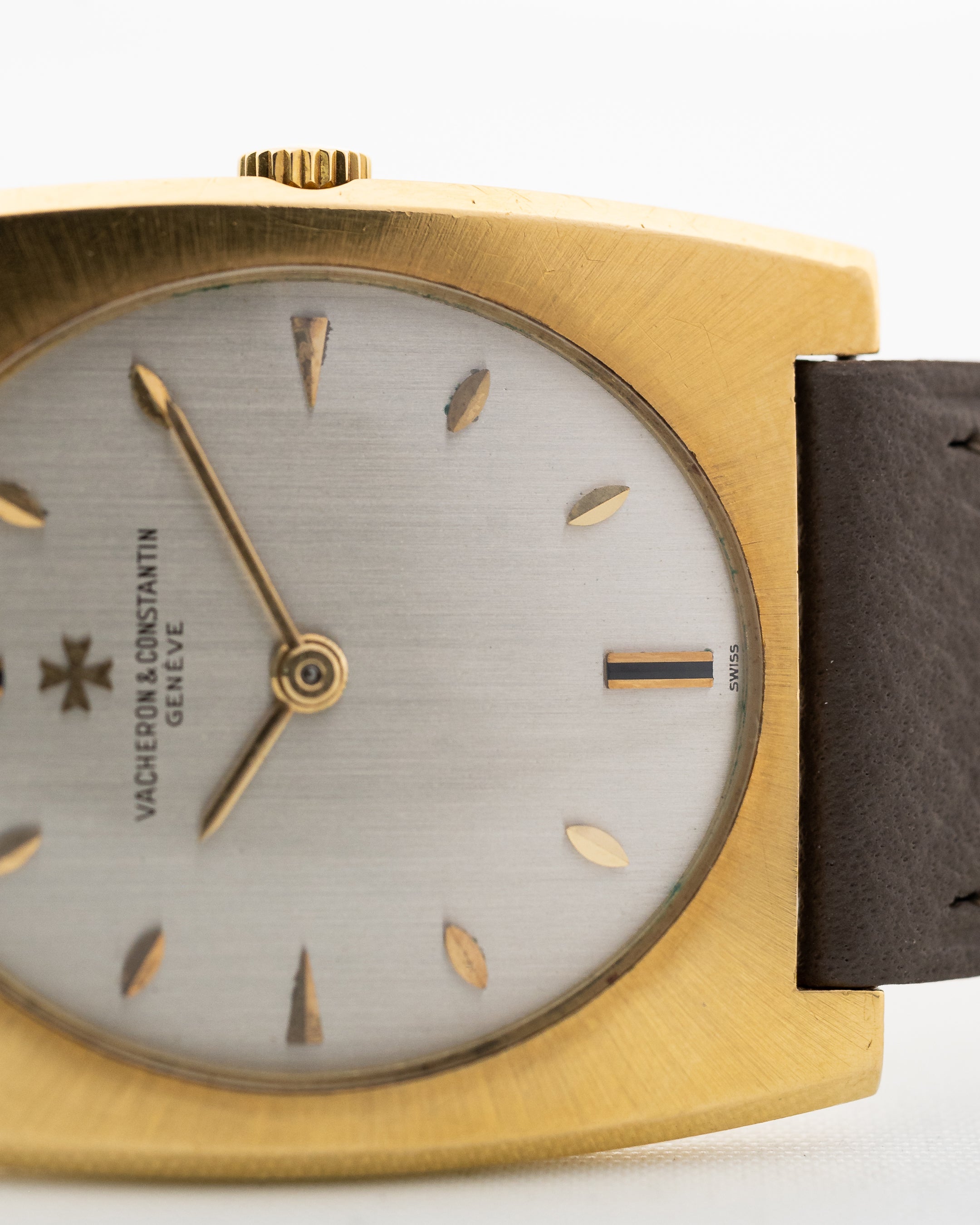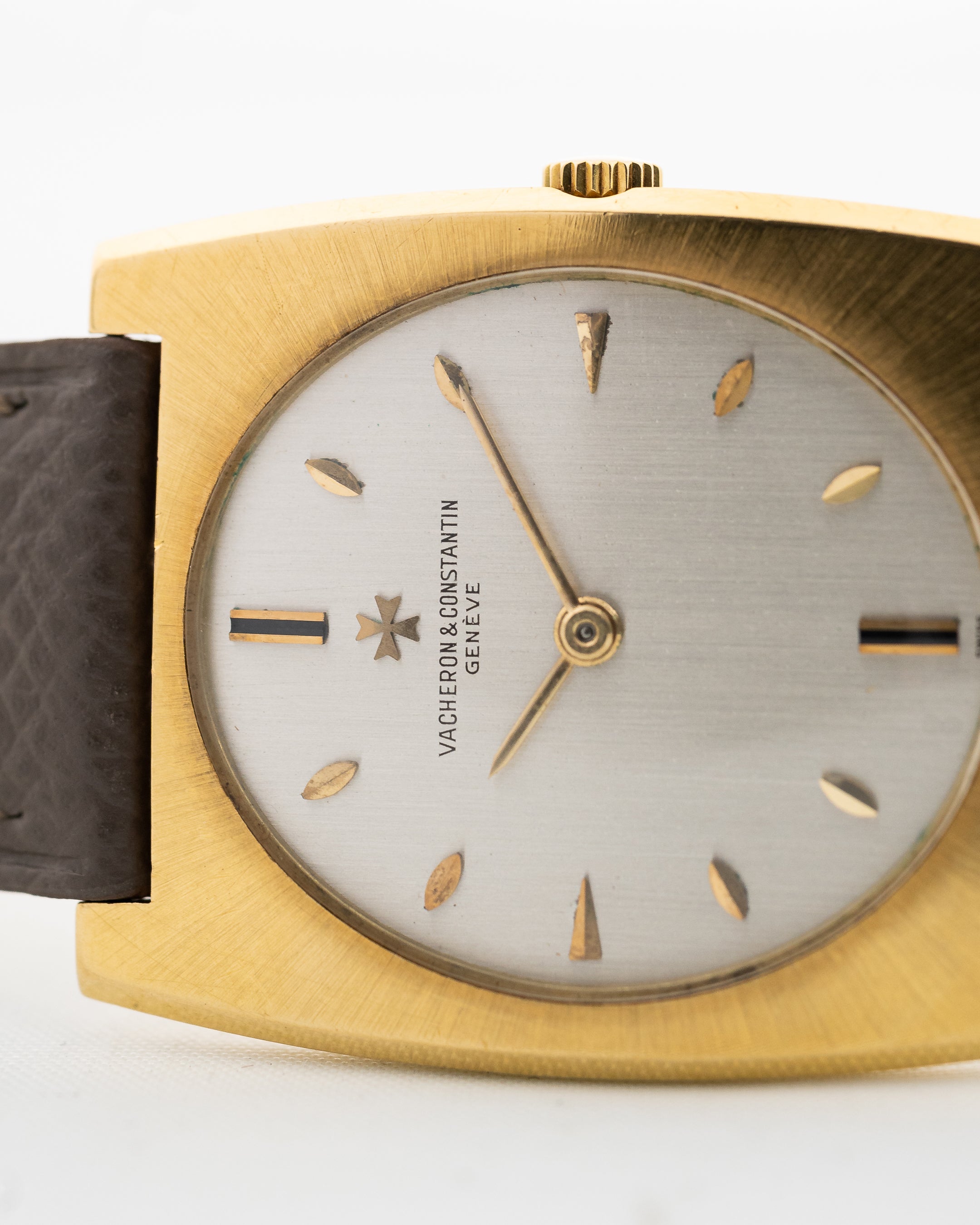 Nous avons ici une montre habillée Tonneau de Vacheron Constantin des années 1960, d'une grande beauté, avec un cadran ovale d'une conception étonnante et des index en or jaune d'une grande netteté.