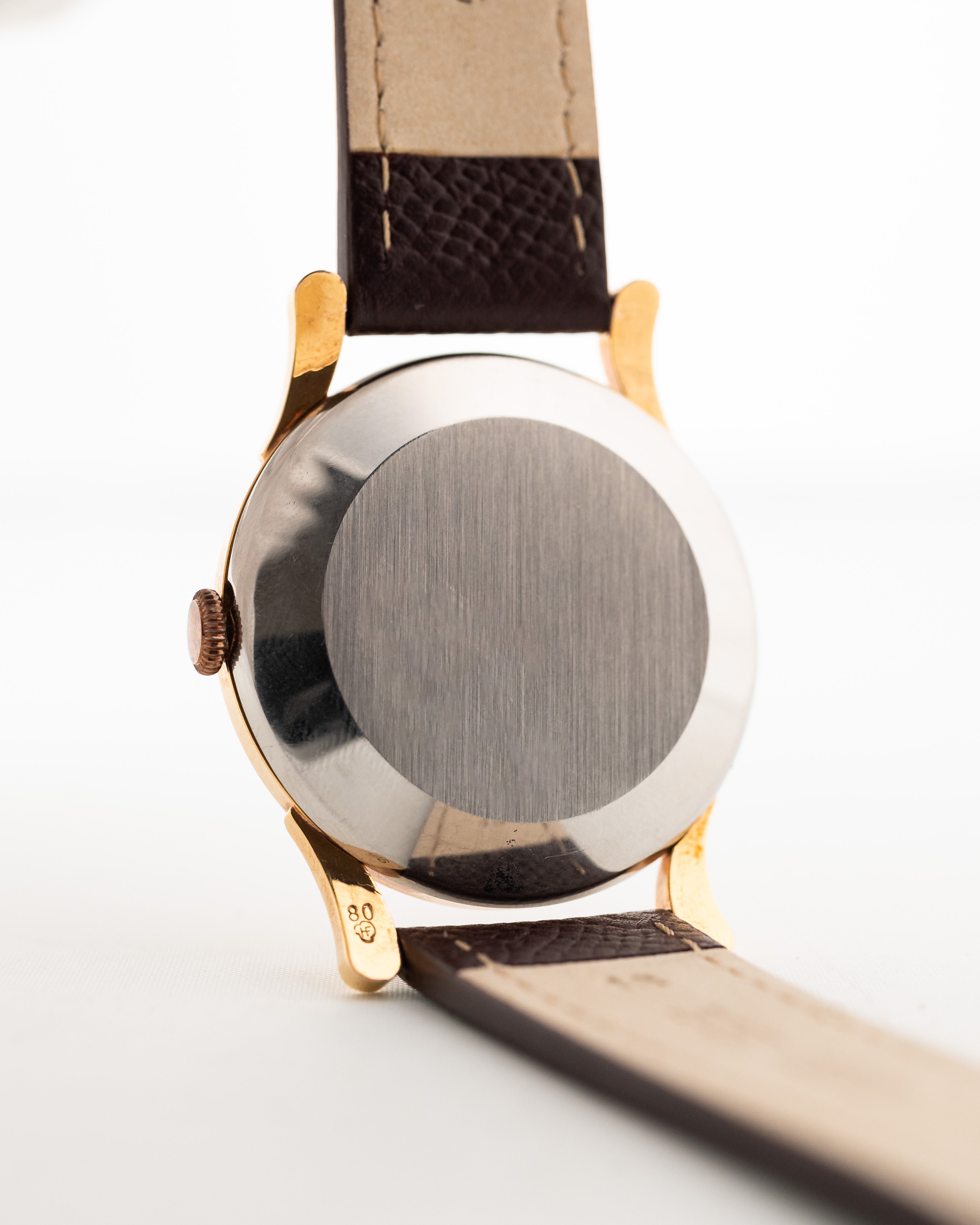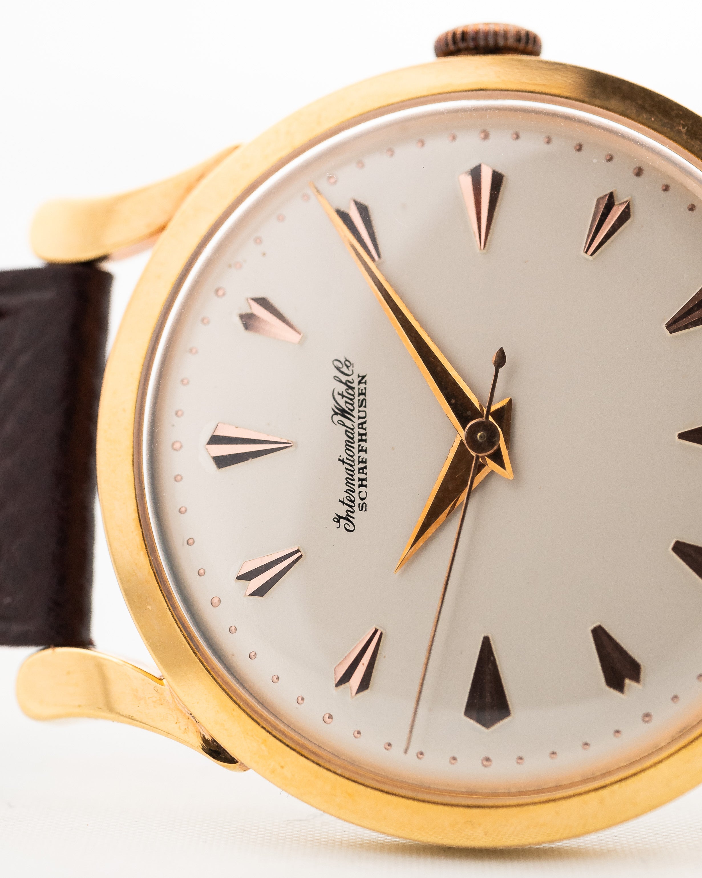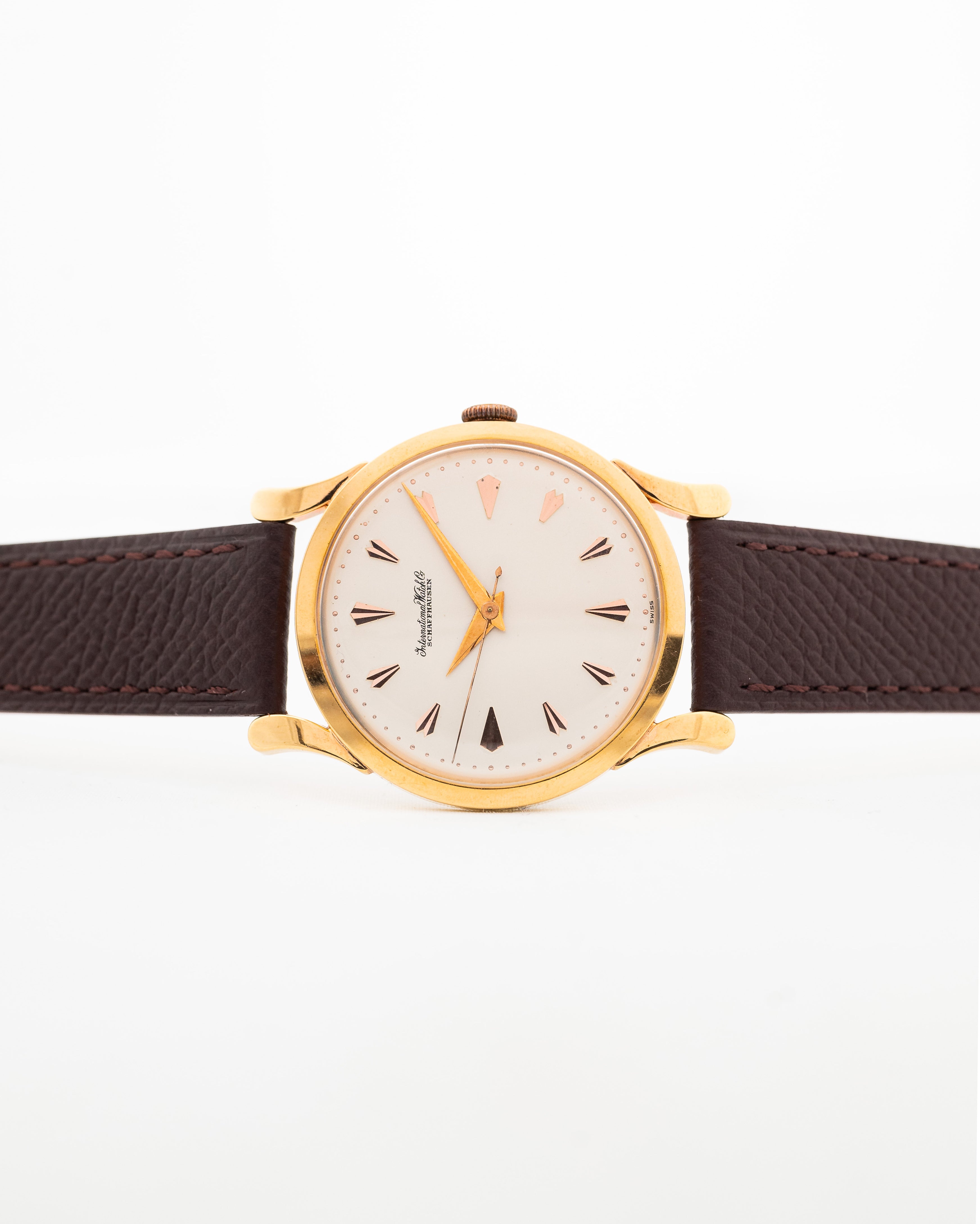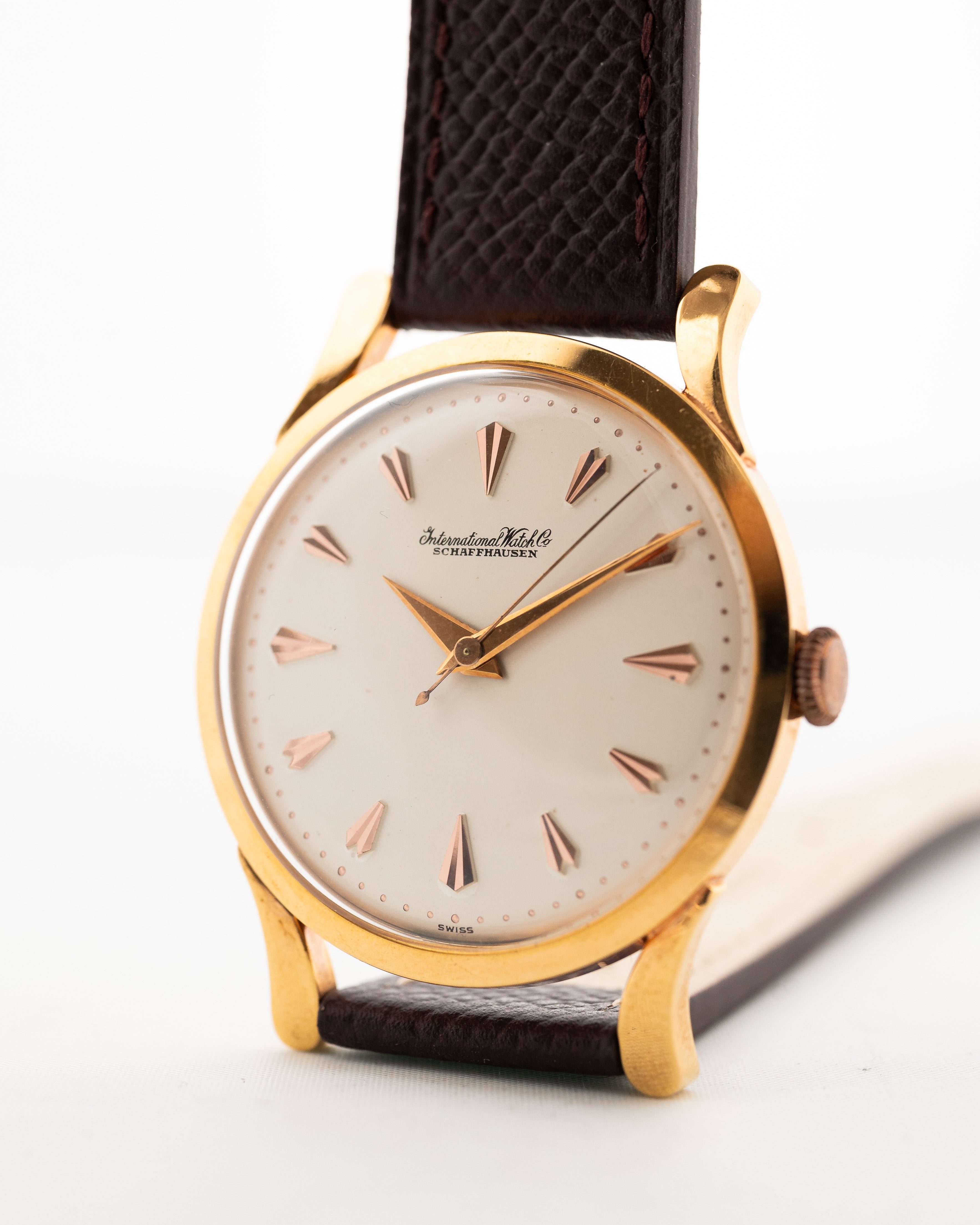 IWC ha prodotto un'ampia varietà di orologi da polso fin dall'inizio, dagli orologi da cerimonia a quelli per l'aviazione. Questo esemplare, in acciaio placcato oro rosa in stile Calatrava con anse molto particolari, rimarrebbe una costante nelle collezioni di chiunque, soprattutto perché si presenta in condizioni eccezionali con i bellissimi e rarissimi indici Arrow.