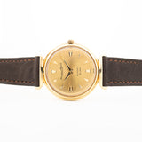 Sotto il cofano batte un calibro automatico 853 del 1958 e il quadrante emana una certa eleganza, senza dubbio grazie alle lancette Dauphine incredibilmente ben realizzate e agli indici a forma di pugnale. La cassa, anch'essa in oro massiccio 18 carati, presenta una lunetta leggermente a gradini che aggiunge ancora più carattere a questa bellezza.