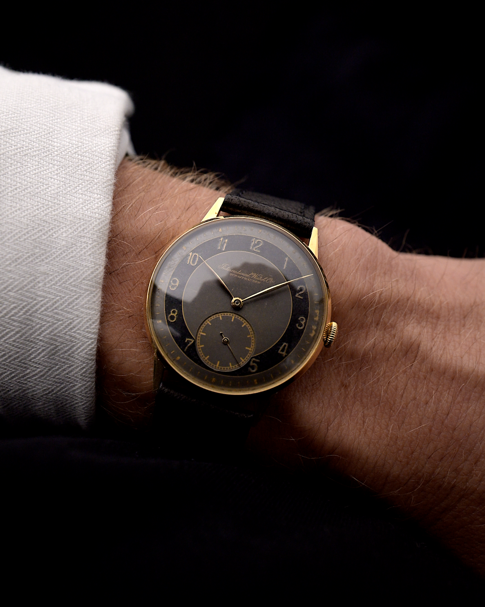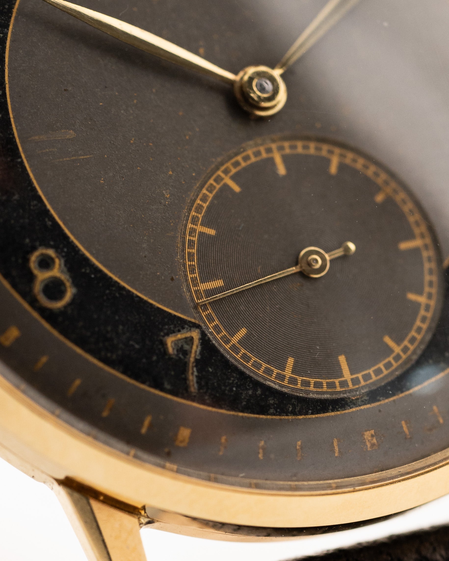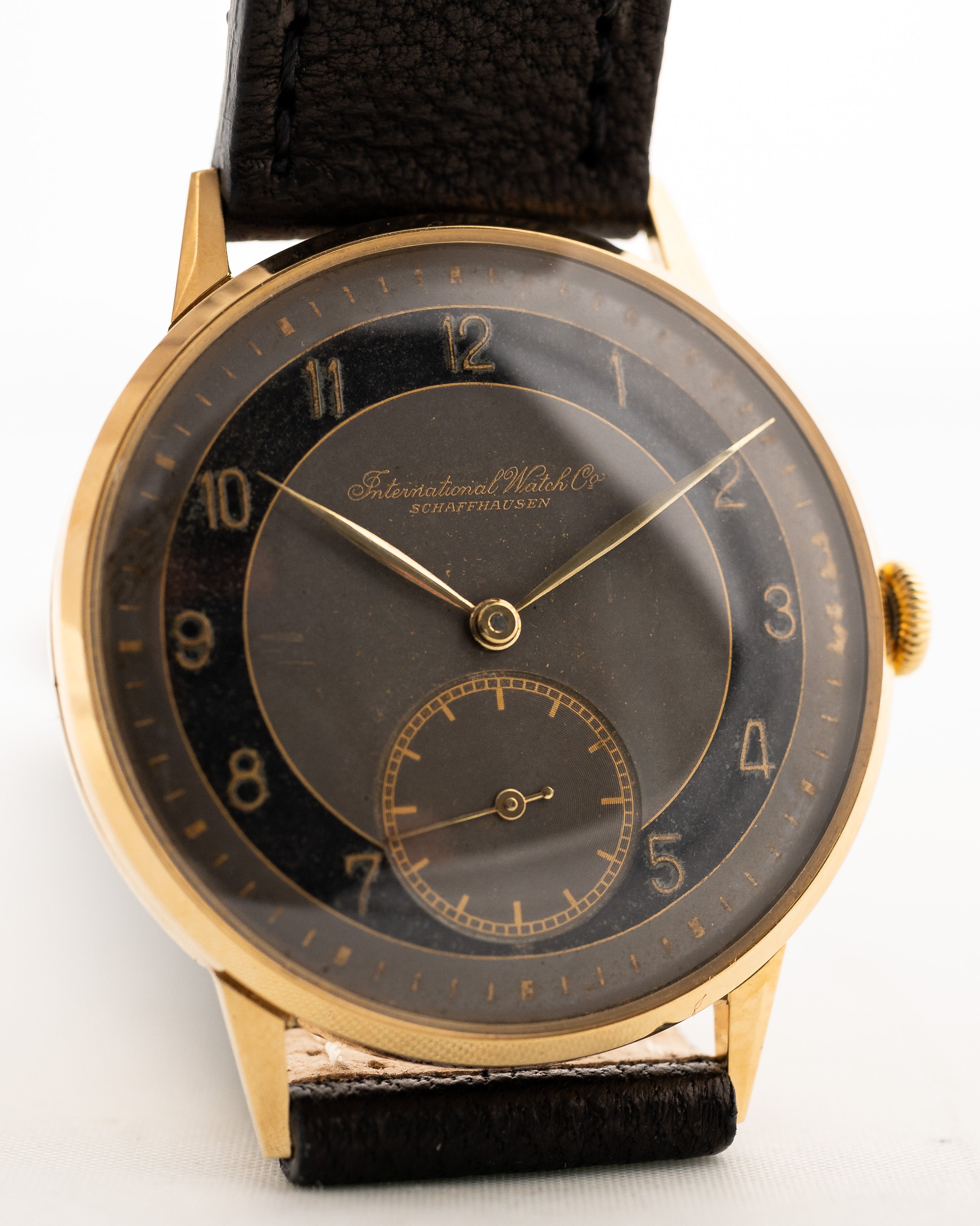 Questo splendido orologio da sera IWC presenta un classico design dei secondi, lancette e indici in oro giallo e monta il celebre movimento calibro 83. La ciliegina sulla torta è il rarissimo e desiderabile quadrante bicolore in condizioni fantastiche. La ciliegina sulla torta è il raro e desiderabile quadrante bicolore in condizioni fantastiche. IWC è da tempo sinonimo di ricerca della bellezza nella semplicità e questo esemplare esemplifica tale etica.