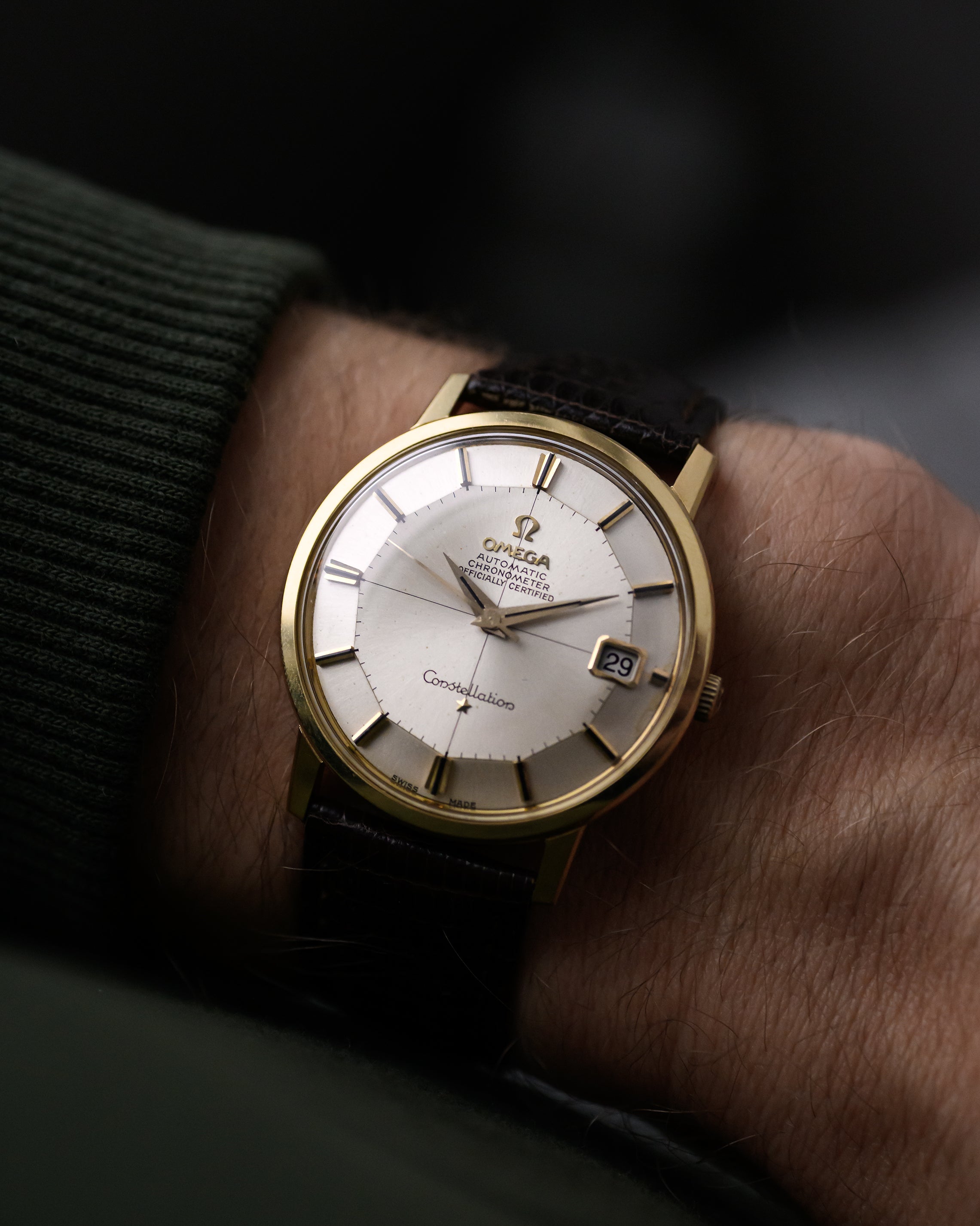 Ben proporzionato, semplice e classico, questo Constellation presenta un fondello a vite, il calibro 561 del cronometro automatico Omega e grandi anse leggermente tornite e si presenta in splendide condizioni.