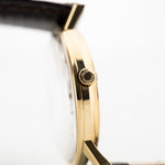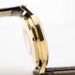 Questo compatto e bellissimo cronometro automatico Omega Constellation ha tutto ciò che si desidera in un orologio da sera: Cassa da 35 mm in oro giallo 18 carati, secondi al centro, un bellissimo quadrante Pie Pan e rari indici sottili a bastone con centri in onice e lancette in onice. Uscito per la prima volta nel 1952, il Constellation era la risposta di Omega al Rolex Datejust.