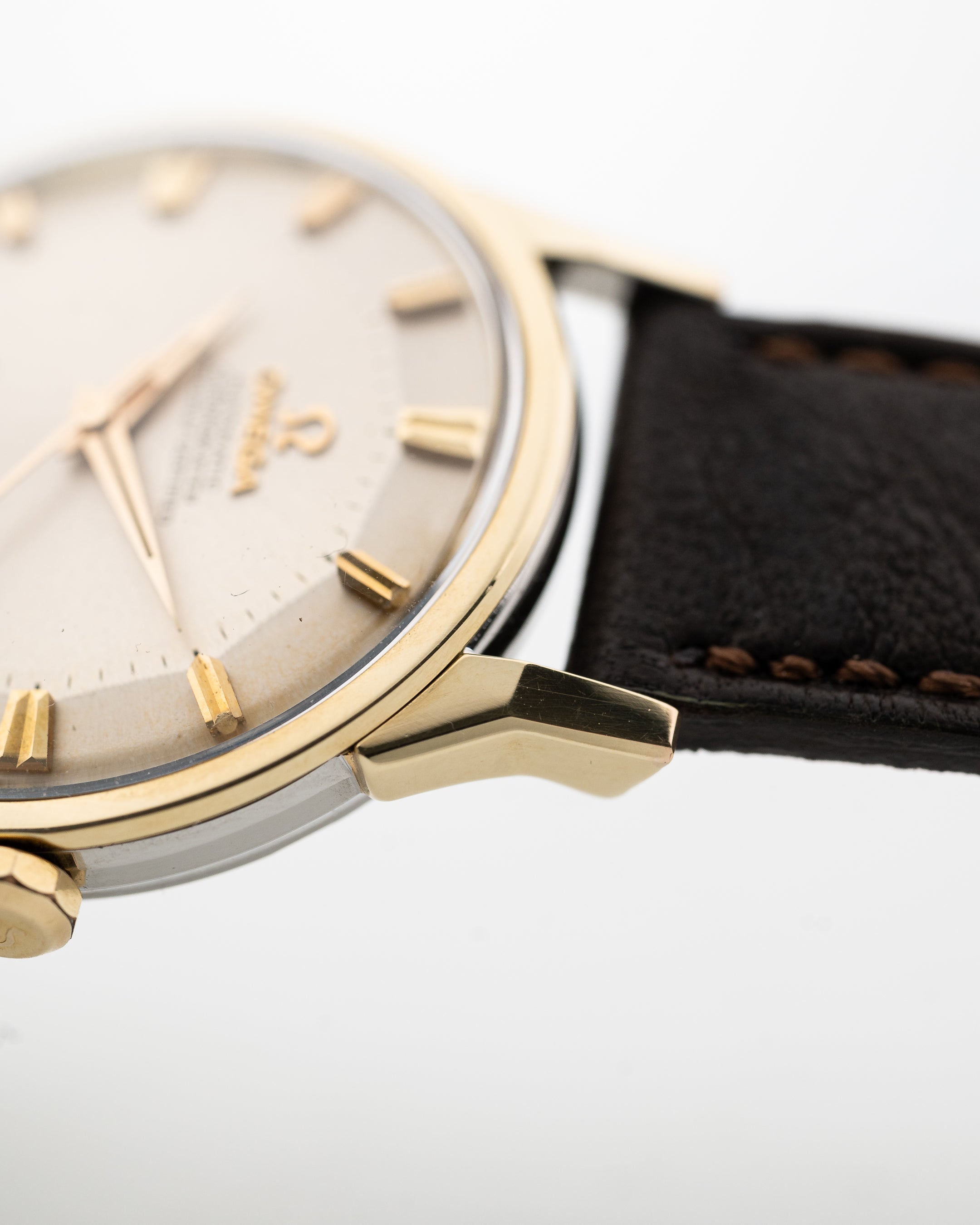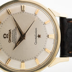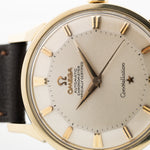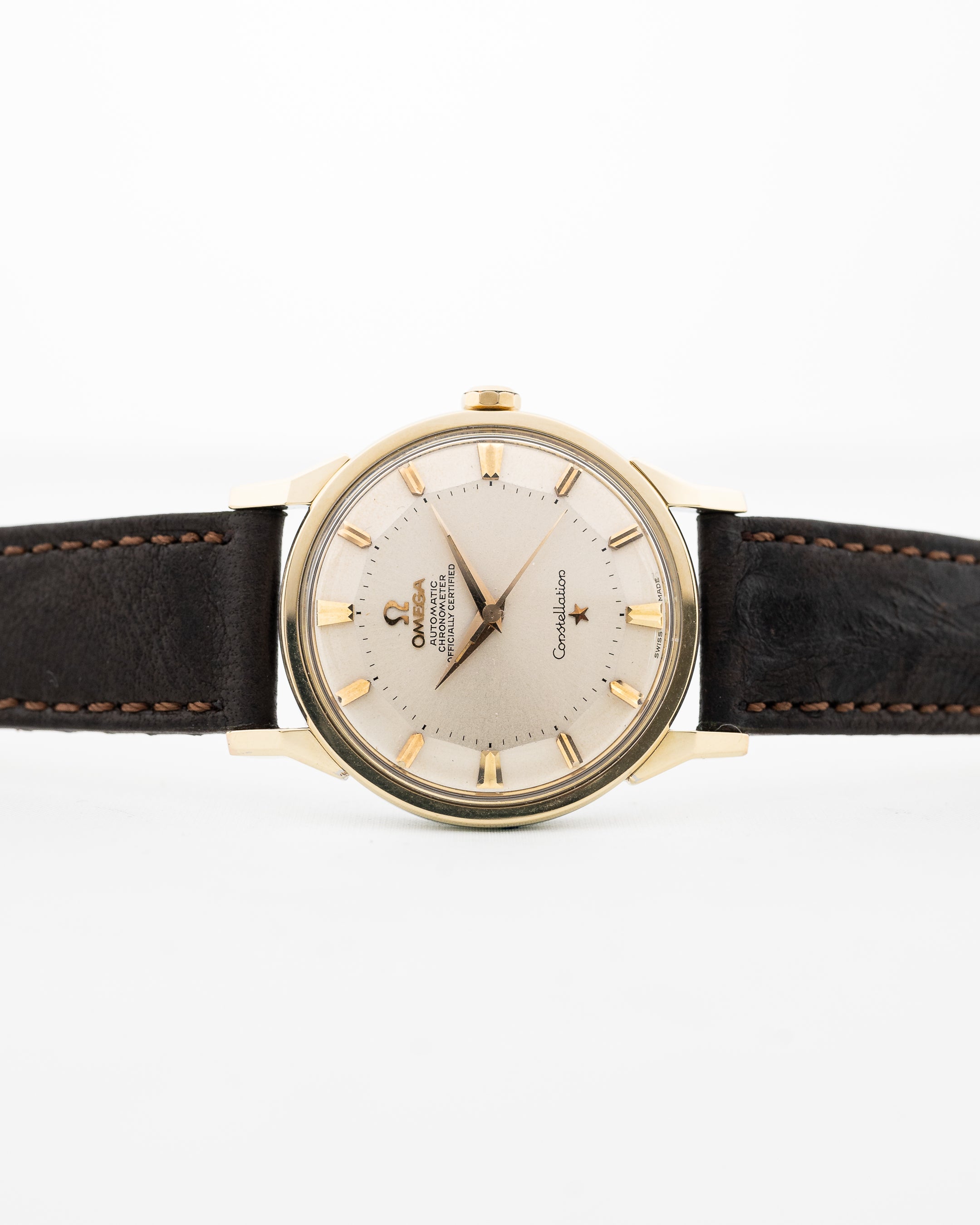 Questo compatto e bellissimo cronometro automatico Omega Constellation ha tutto ciò che si desidera in un orologio da sera: Cassa da 34 mm in oro giallo, secondi al centro, un bellissimo quadrante Pie Pan e rari indici sottili a bastone. Uscito per la prima volta nel 1952, il Constellation era la risposta di Omega al Rolex Datejust.
