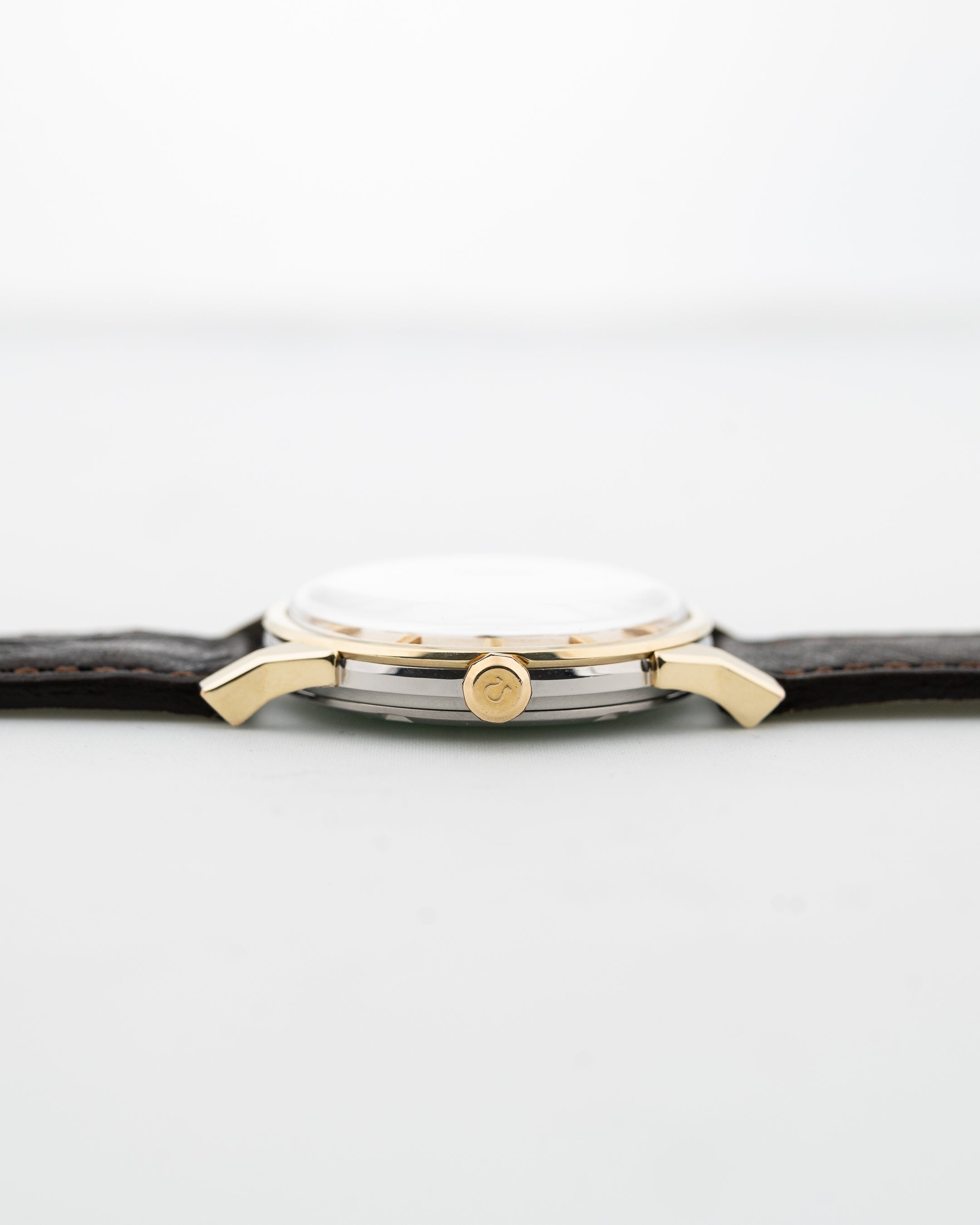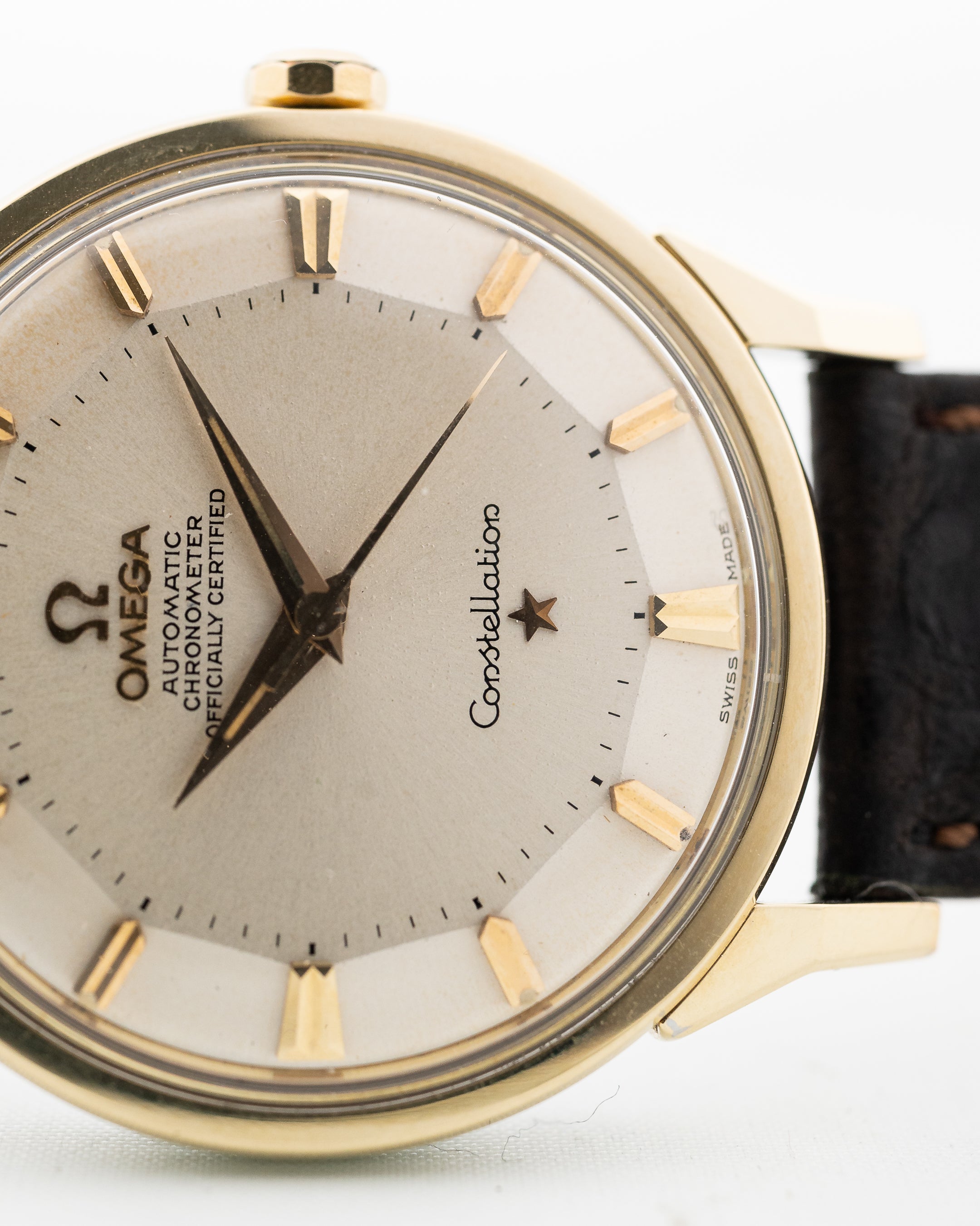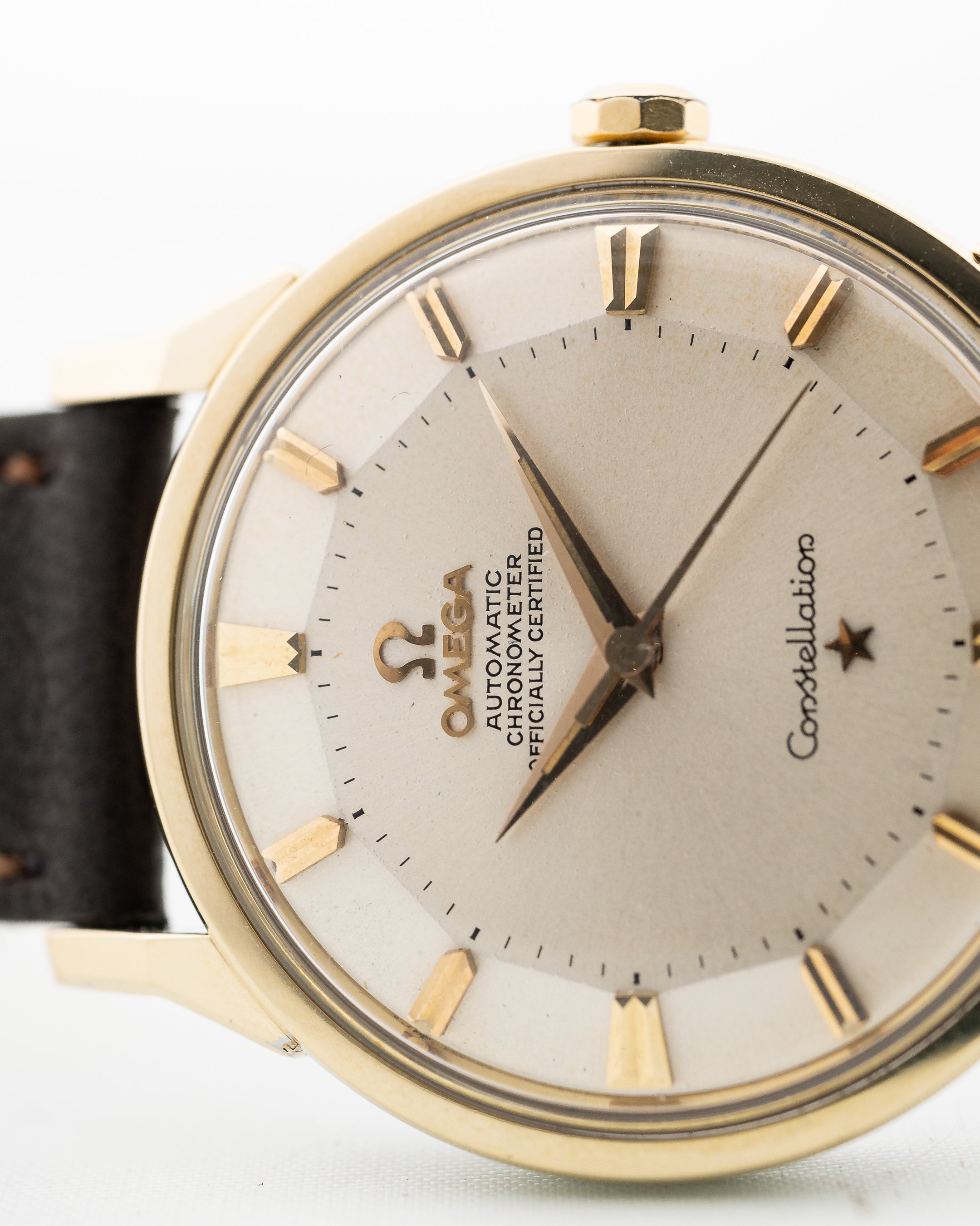 Ben proporzionato, semplice e classico, questo Constellation presenta un fondello a vite, il calibro 551 del cronometro automatico Omega e grandi anse leggermente tornite.