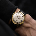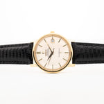 Questo compatto e bellissimo cronometro automatico Omega Constellation ha tutto ciò che si desidera in un orologio da sera: Cassa in oro giallo da 35 mm, secondi al centro, un bellissimo quadrante bianco/argento e rari indici sottili a bastone con intarsio in Onice. Uscito per la prima volta nel 1952, il Constellation era la risposta di Omega al Rolex Datejust.