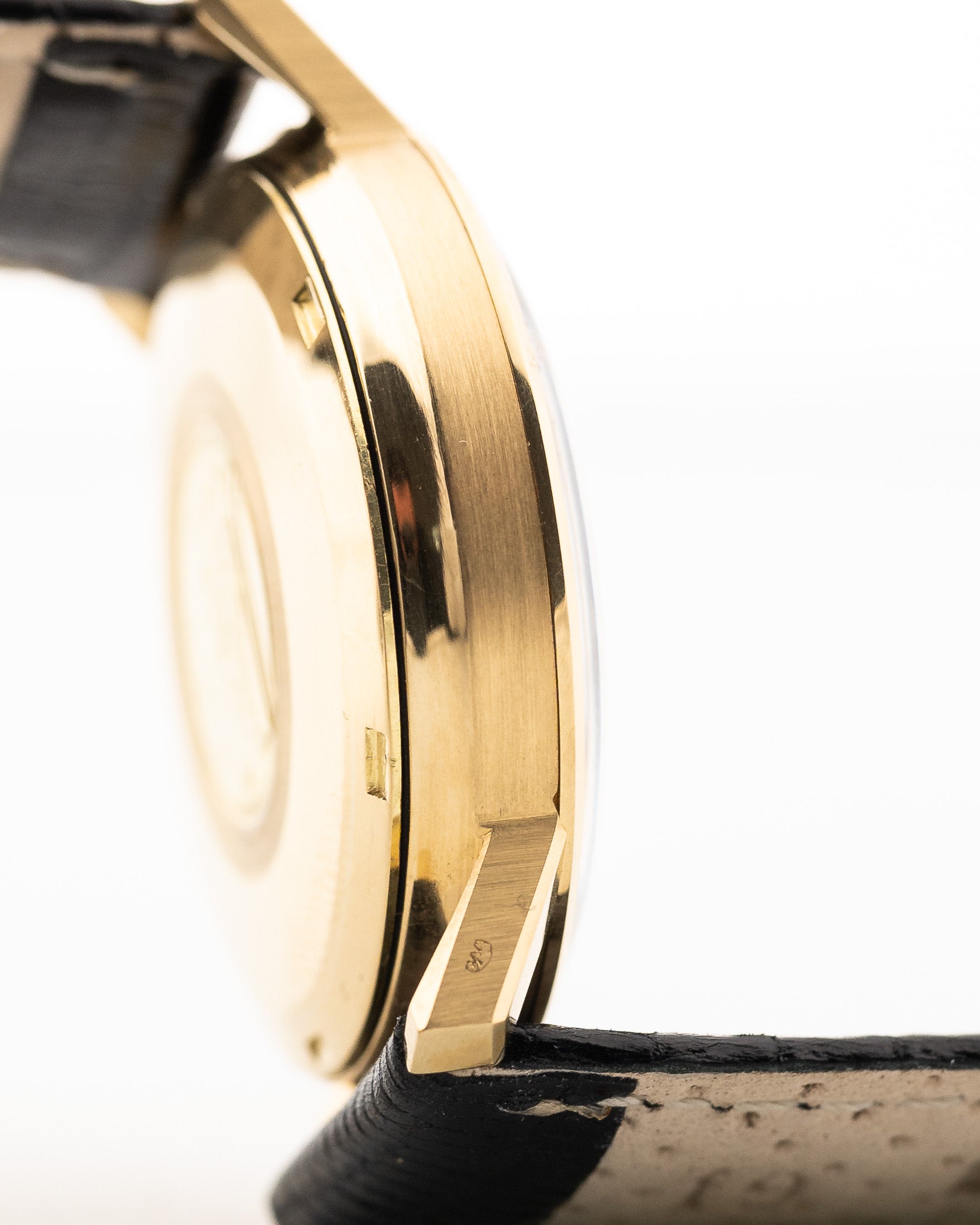 Ben proporzionato, semplice e classico, questo Constellation presenta un fondello a vite, il calibro 564 del cronometro automatico Omega e ottime anse leggermente tornite, in condizioni quasi intatte.
