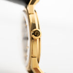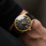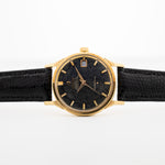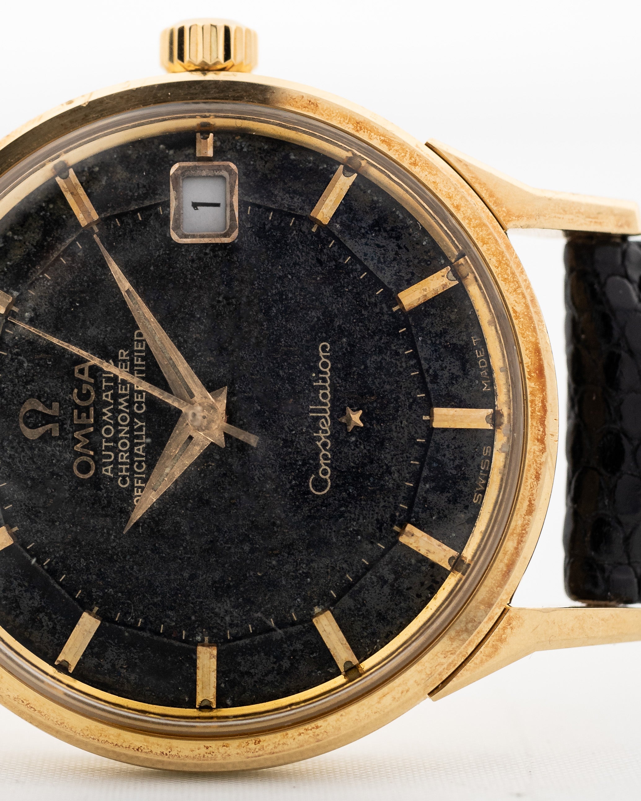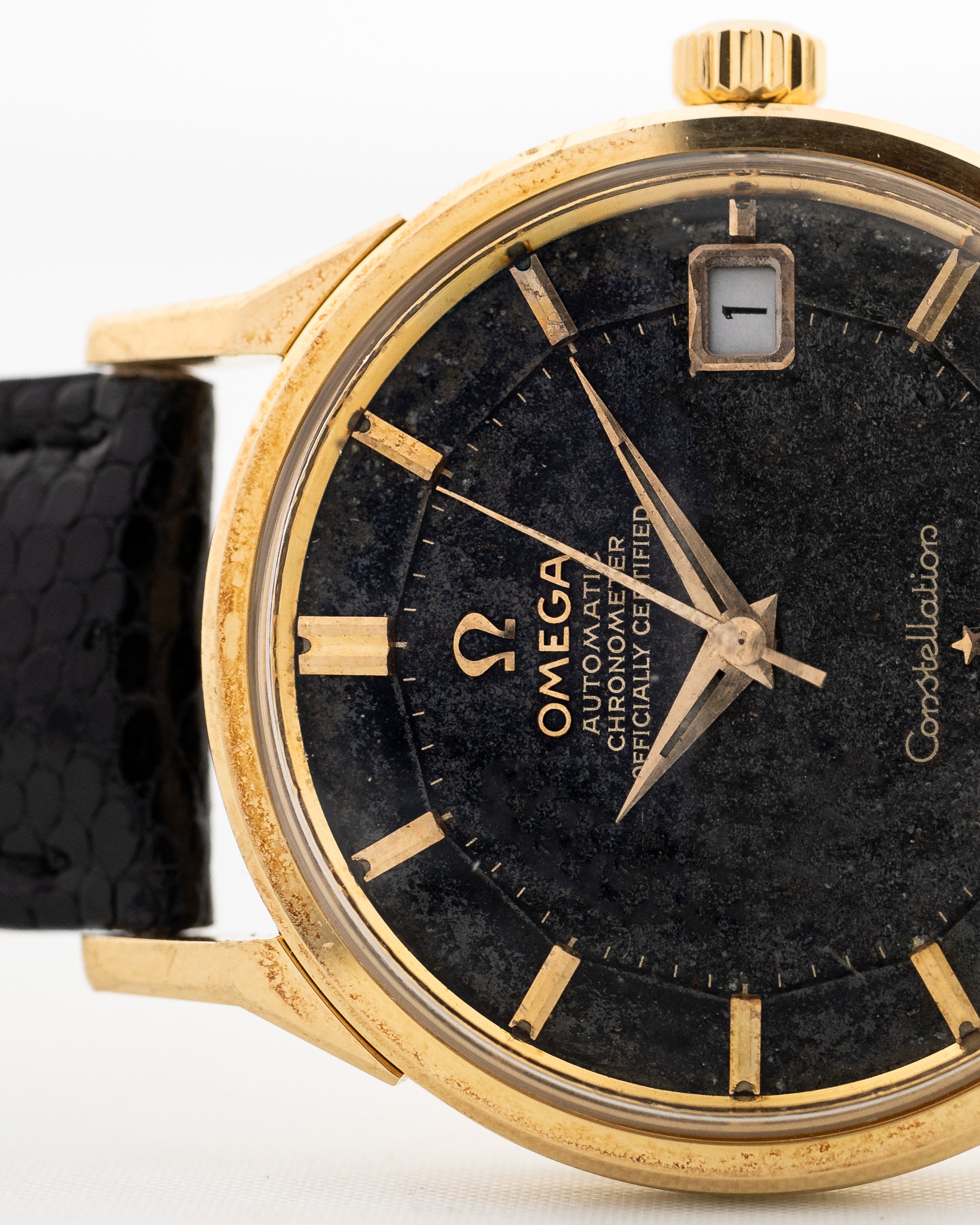 Questo compatto e bellissimo cronometro automatico Omega Constellation ha tutto ciò che si desidera in un orologio da sera: Cassa da 34 mm in oro giallo 18 carati, secondi al centro, un bellissimo e raro quadrante nero Pie Pan che mostra il potere e la magia della patina. Uscito per la prima volta nel 1952, il Constellation era la risposta di Omega al Rolex Datejust.