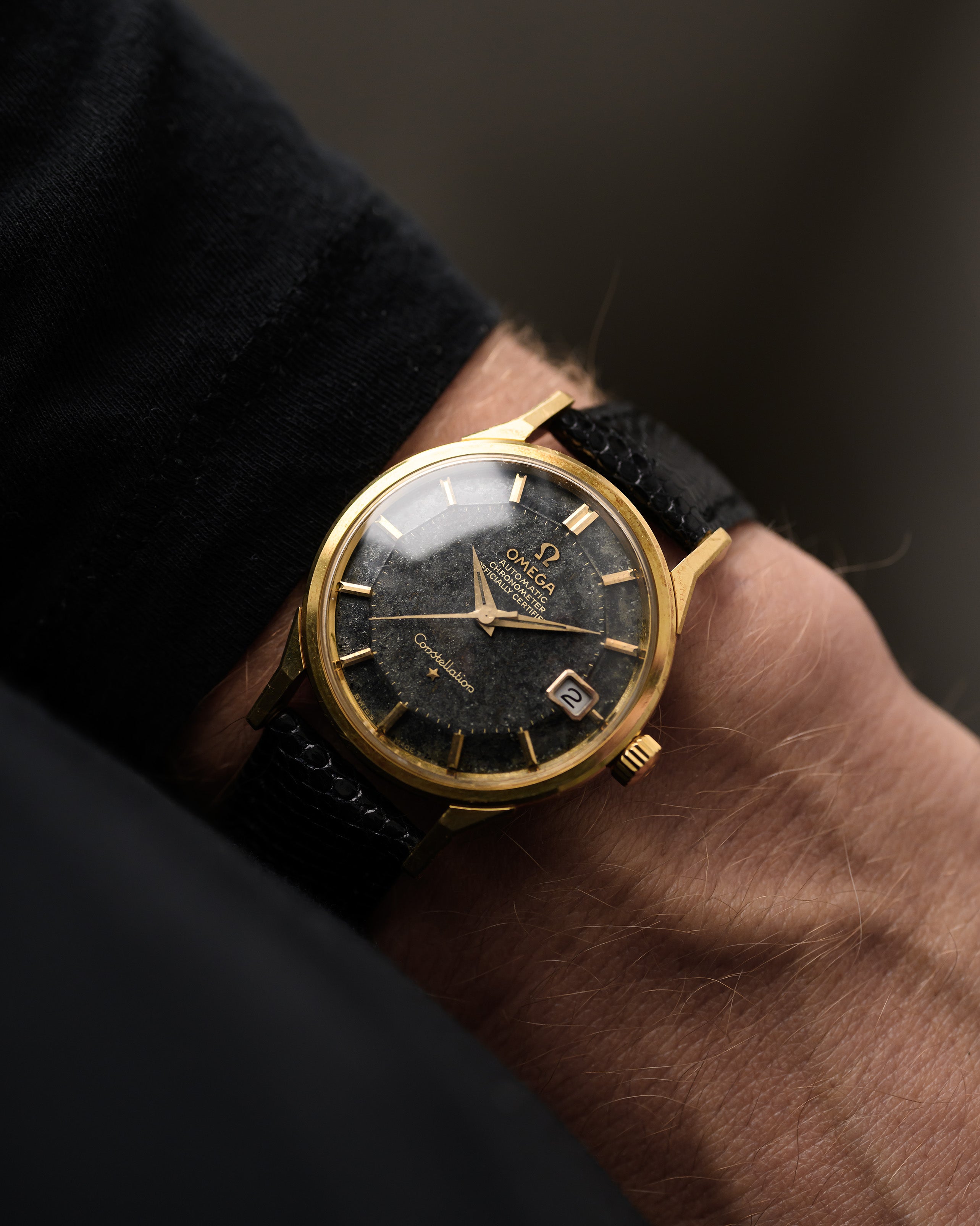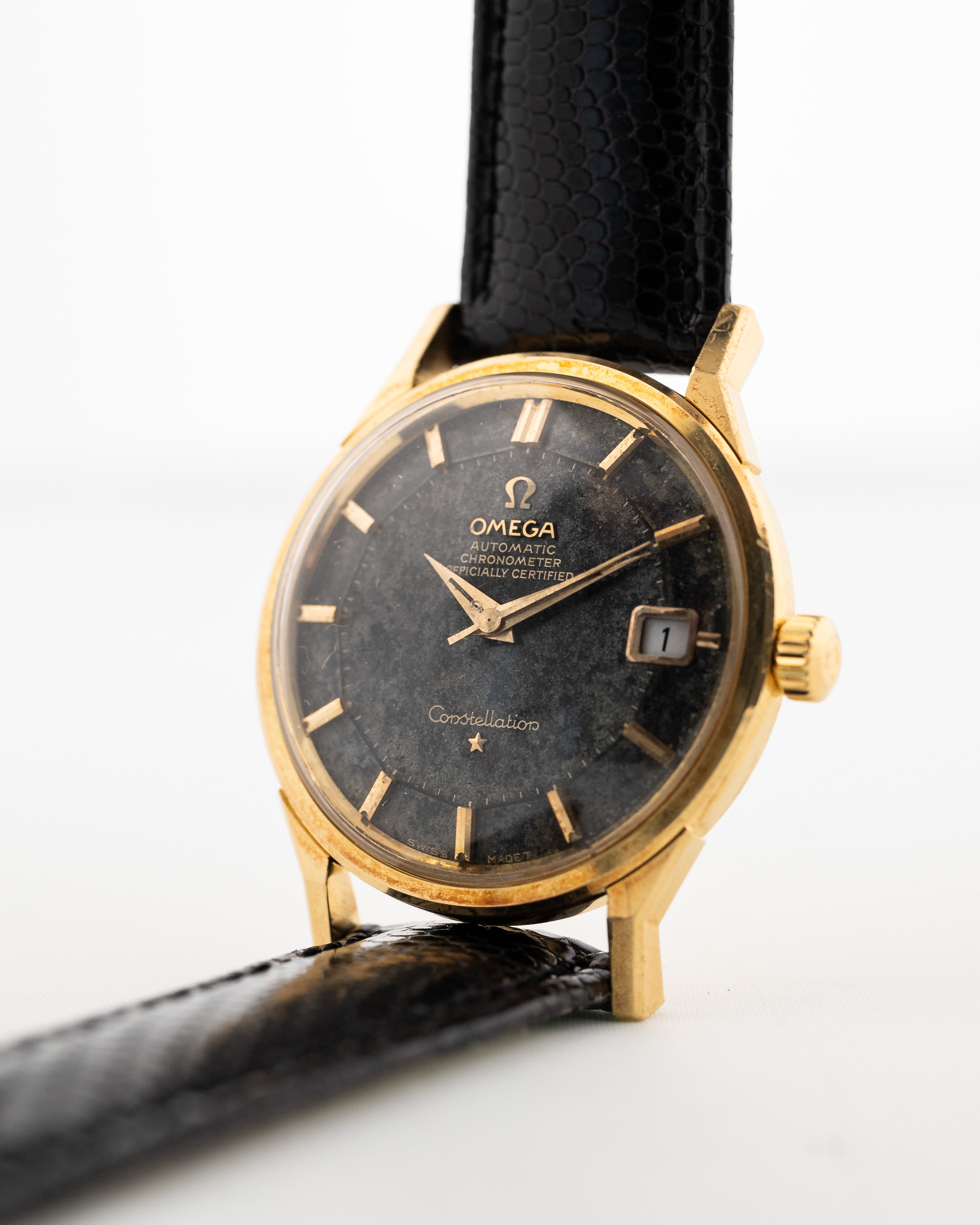 Ben proporzionato, semplice e classico, questo Constellation è caratterizzato da un fondello a vite, dal calibro 561 del cronometro automatico Omega e da grandi anse leggermente tornite.