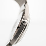 Questo compatto e bellissimo cronometro automatico Omega Constellation ha tutto ciò che si desidera in un orologio da sera: Cassa in acciaio da 35 mm, secondi al centro, quadrante molto bello e pulito e indici a bastone sottili con intarsio in onice. Uscito per la prima volta nel 1952, il Constellation era la risposta di Omega al Rolex Datejust.