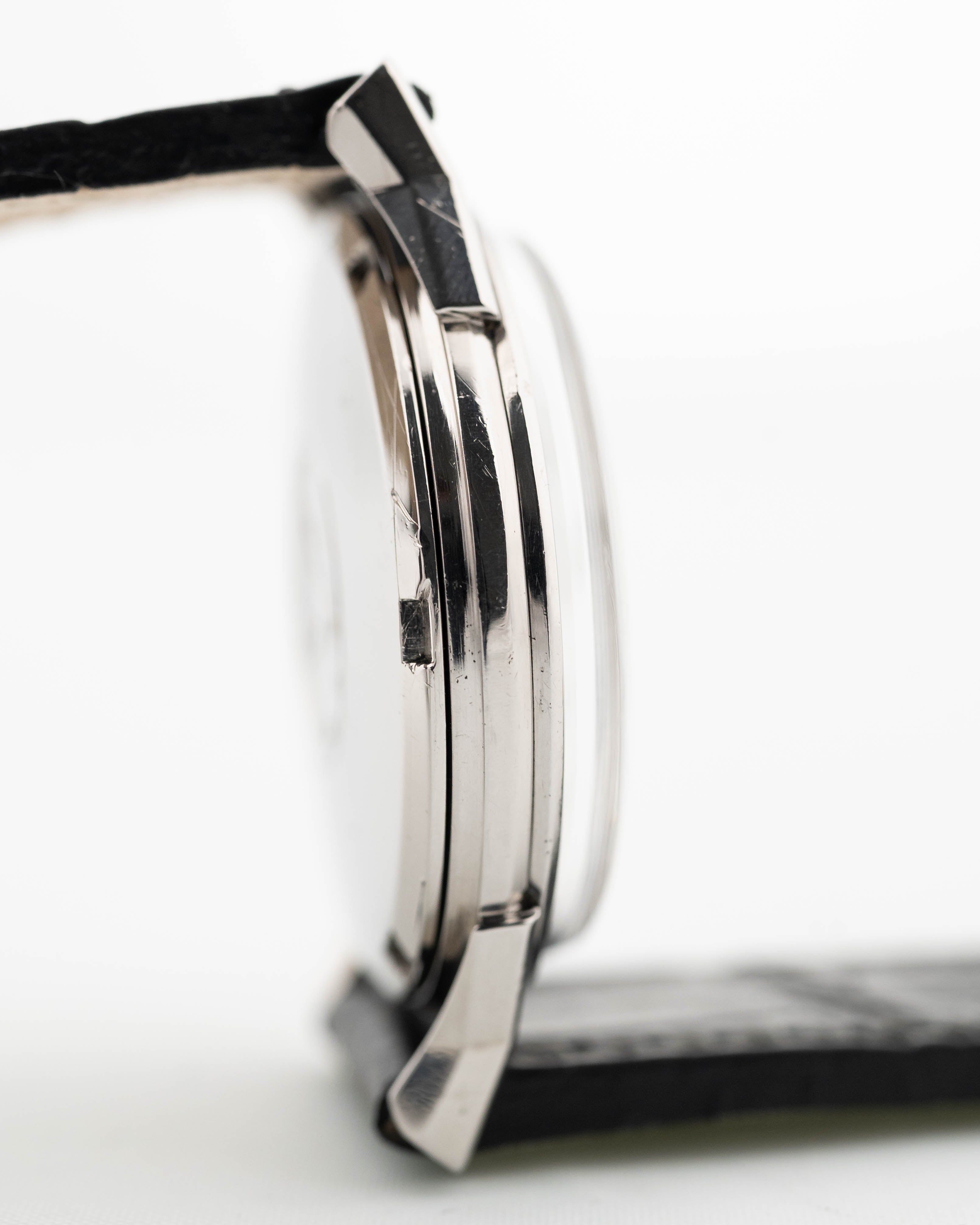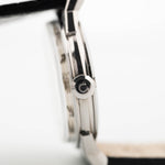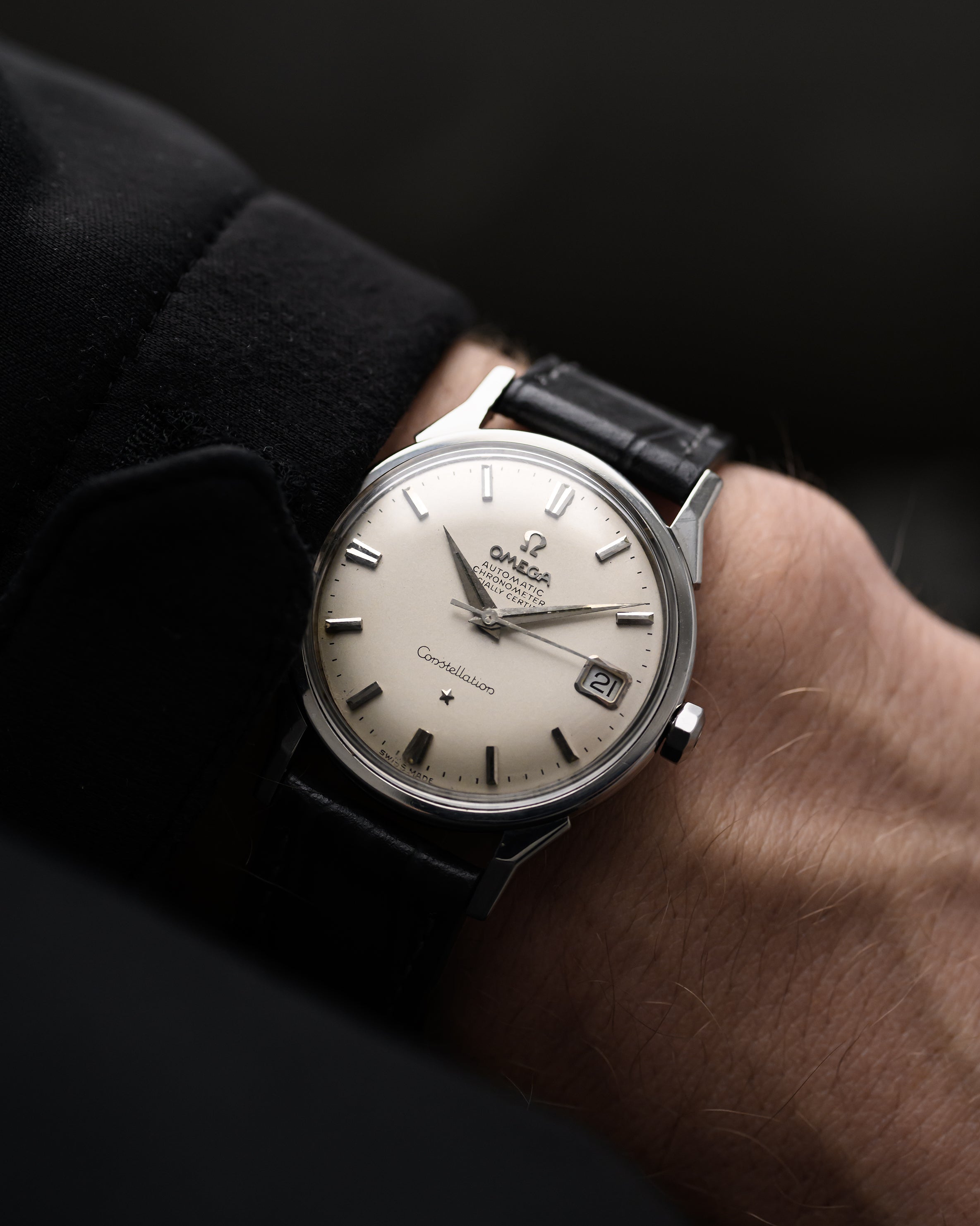 Questo compatto e bellissimo cronometro automatico Omega Constellation ha tutto ciò che si desidera in un orologio da sera: Cassa in acciaio inossidabile da 34 mm, secondi al centro, un bellissimo quadrante bianco con sottili indici a bastone. Uscito per la prima volta nel 1952, il Constellation era la risposta di Omega al Rolex Datejust.
