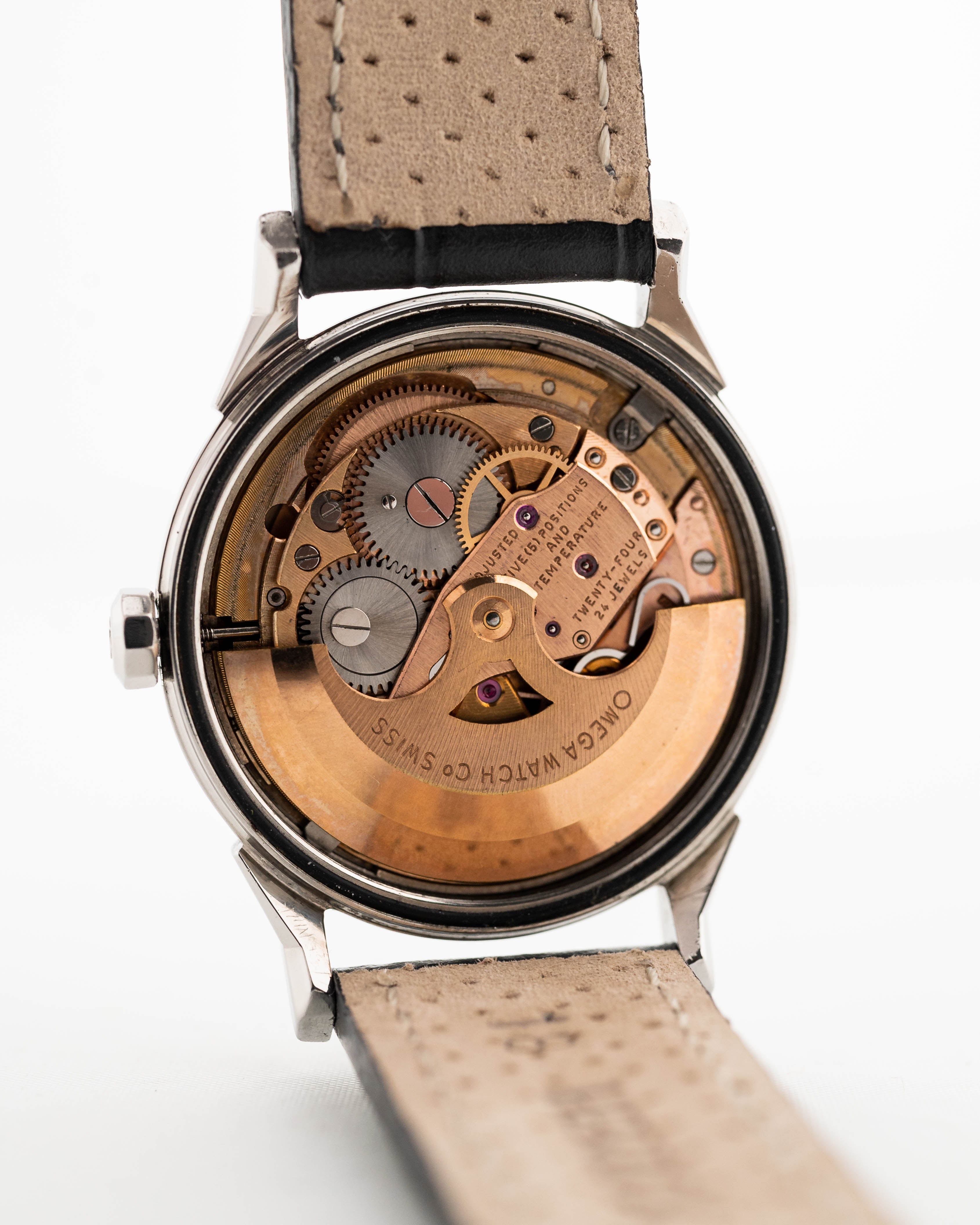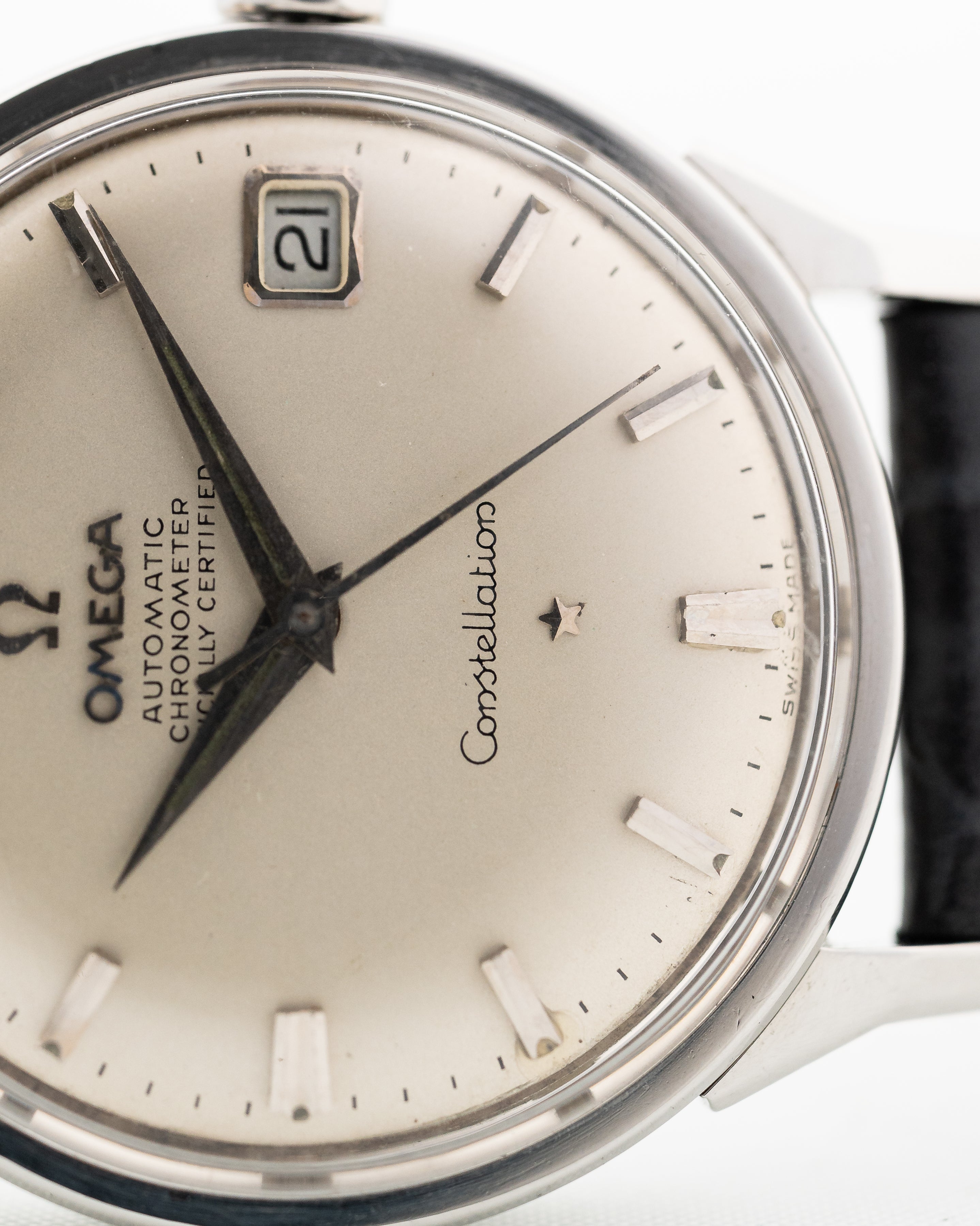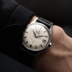 Ben proporzionato, semplice e classico, questo Constellation presenta un fondello a vite, il cronometro automatico Omega Calibro 561 ed è in ottime condizioni generali.