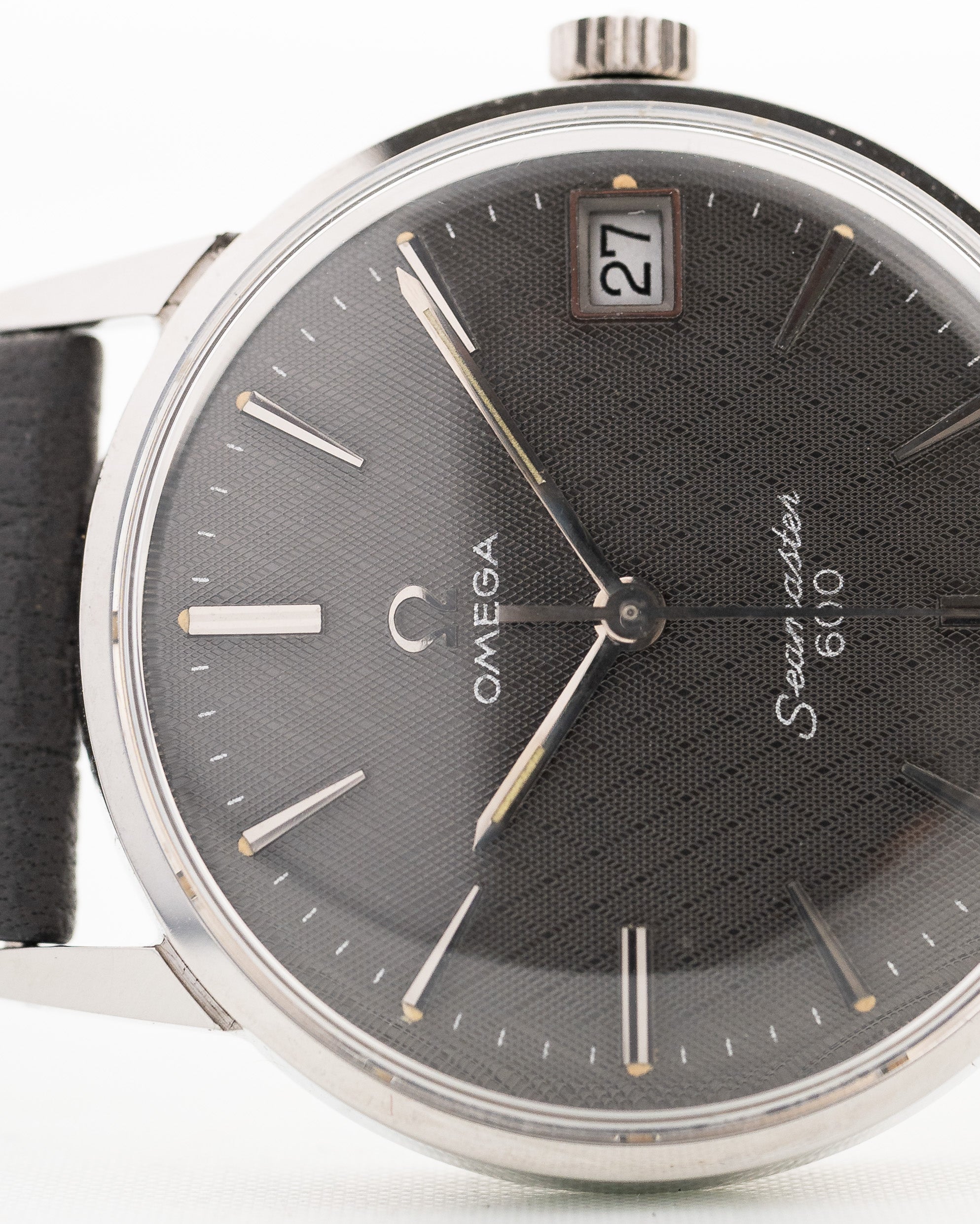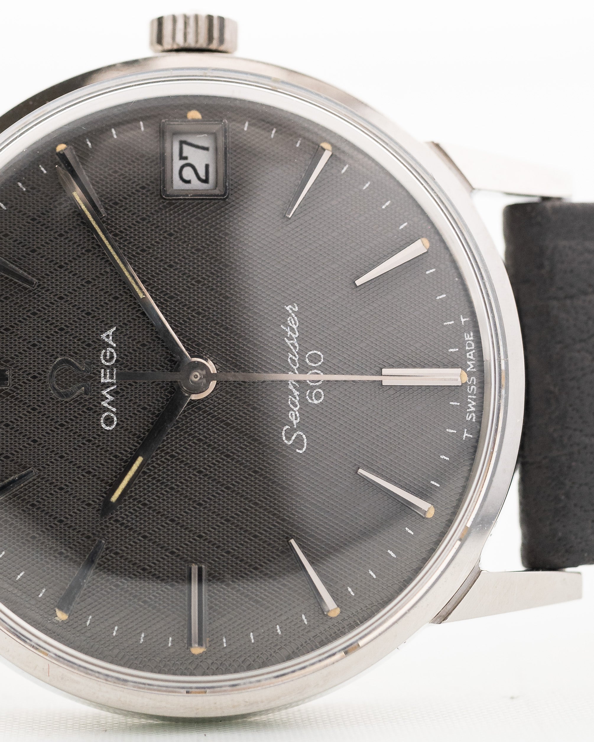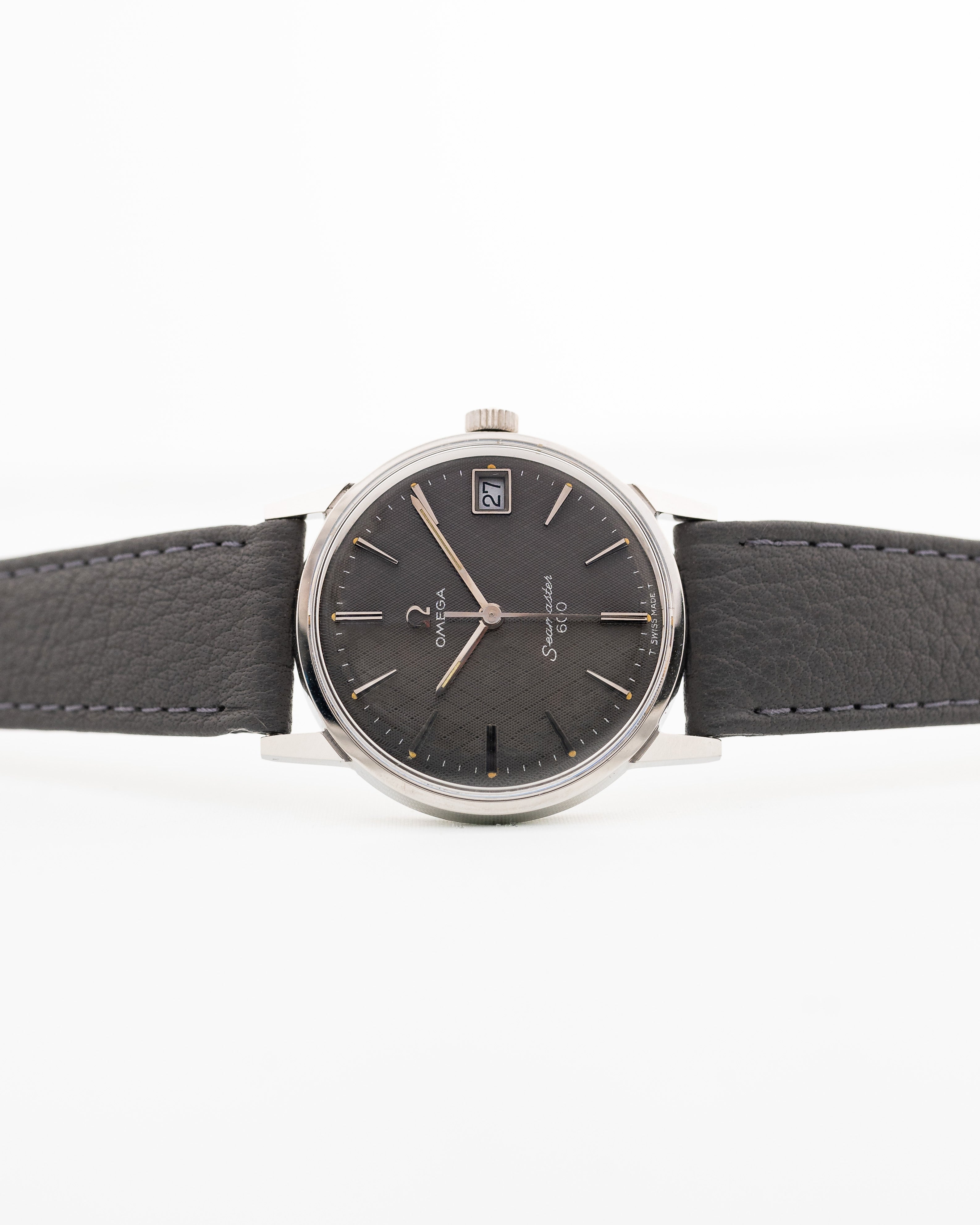 Qui può vedere un affascinante e raro Seamaster 600 realizzato da Omega nel 1966. Presenta una cassa in acciaio inossidabile con un raro e bellissimo quadrante grigio a nido d'ape in condizioni impeccabili.