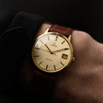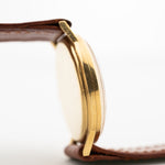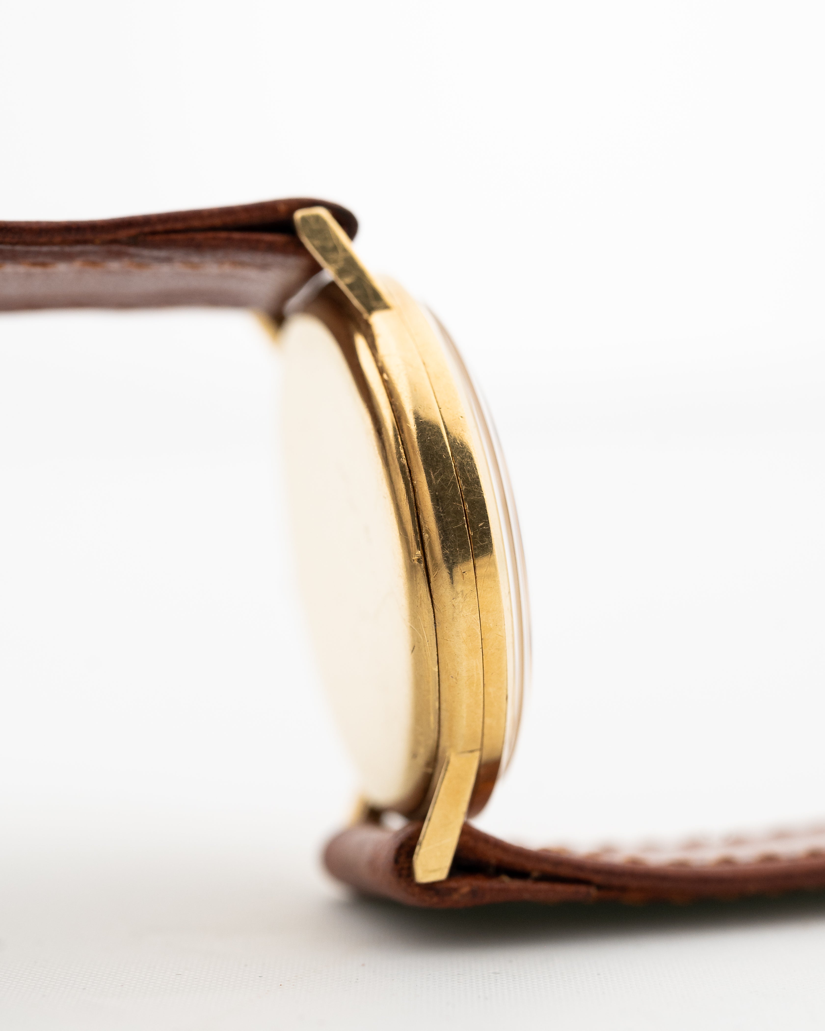 Questo esemplare non è solo bello, ma anche sostanzioso. Dotato di una cassa in oro giallo da 33 mm, di anse diritte e di uno splendido quadrante in oro giallo con indici in onice e lancette in onice, questo orologio è davvero imbattibile.