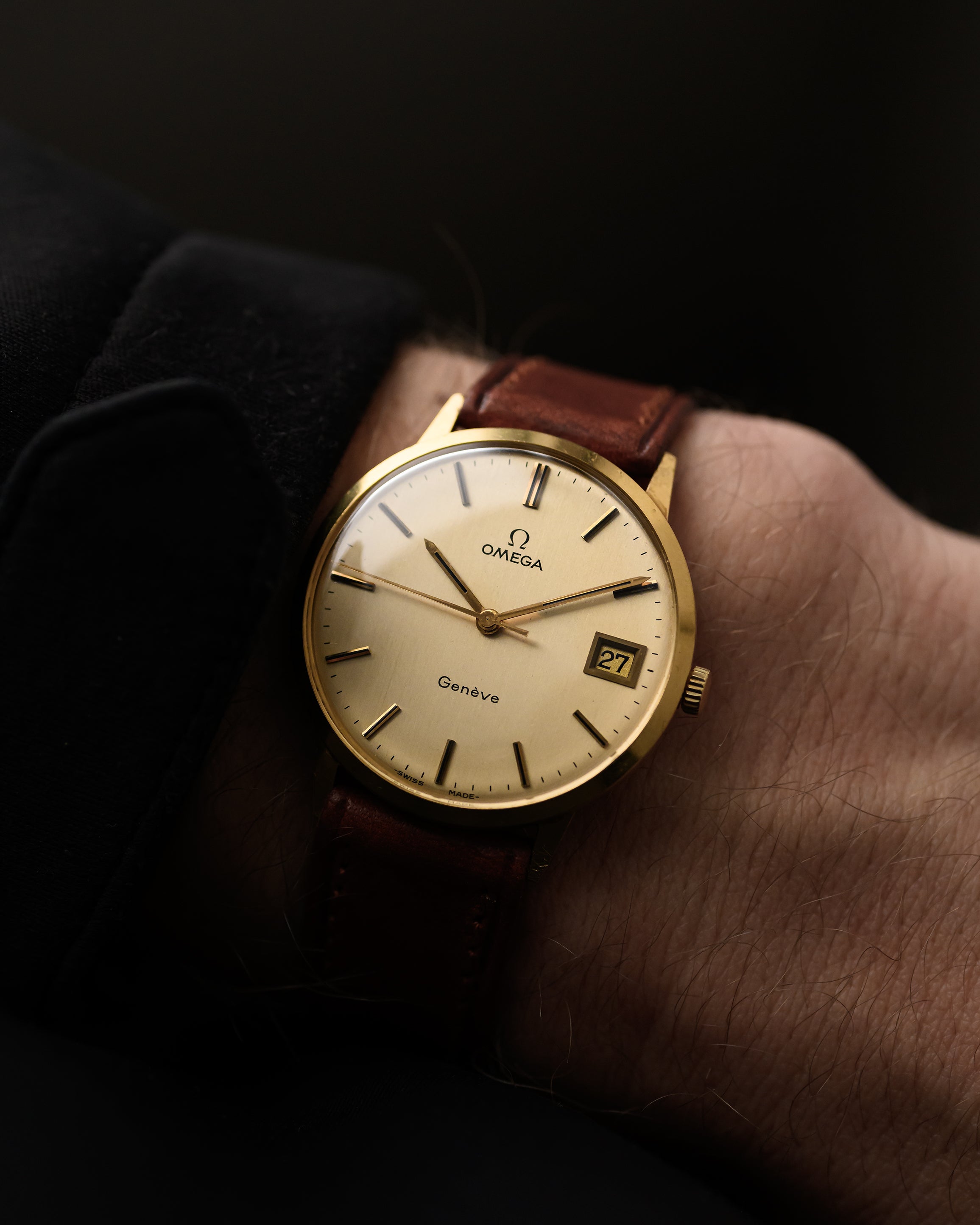 Orologio Vintage classico indossato al polso sopra Orologi Vintage e orologi di lusso su una scrivania.