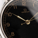 Questo Omega del 1939 è un esempio eccezionale di orologeria svizzera dei primi del Novecento - e un vero gioiello da collezione. Il suo quadrante originale nero lucido e dorato, con numeri arabi dorati e lancette a siringa dorate abbinate, irradia eleganza e carattere. Quadranti come questo sopravvivono raramente in condizioni così belle.