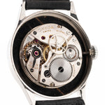 Orologio vintage Omega Gilt Syringe del 1939, cassa in acciaio inossidabile da 33 mm, quadrante nero dorato, movimento a carica manuale, cinturino in pelle nera