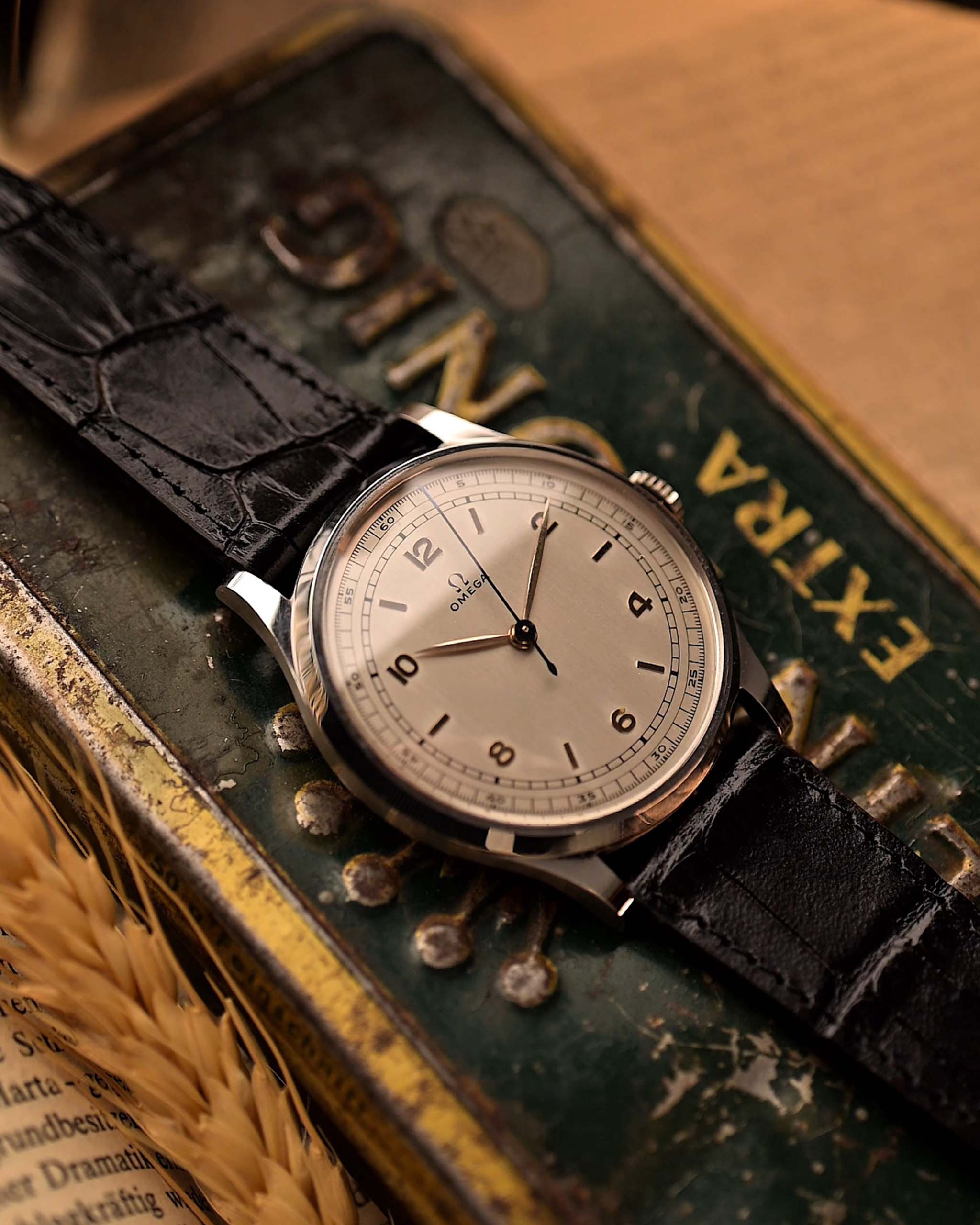 L'orologio è alimentato dal Calibro 23.4 SC di Omega, un movimento a carica manuale noto per la sua precisione e affidabilità. Per gli appassionati di Orologi Vintage sovradimensionati, questo è un pezzo eccezionale che unisce la storia dei primi orologi da polso con uno stile senza tempo.