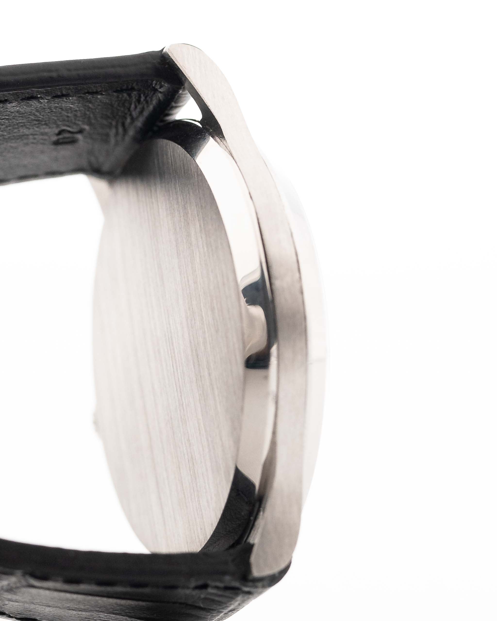• 37.5 mm (senza corona) / 43 mm (da ansa ad ansa) / 19 mm (tra le anse) / 10 mm di spessore