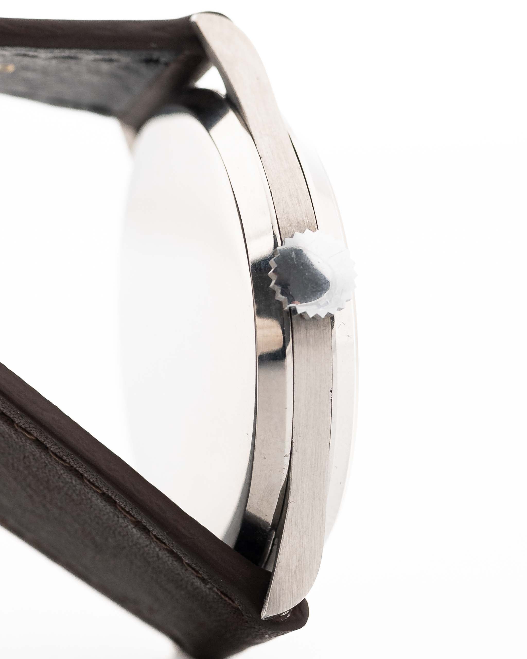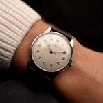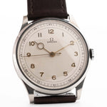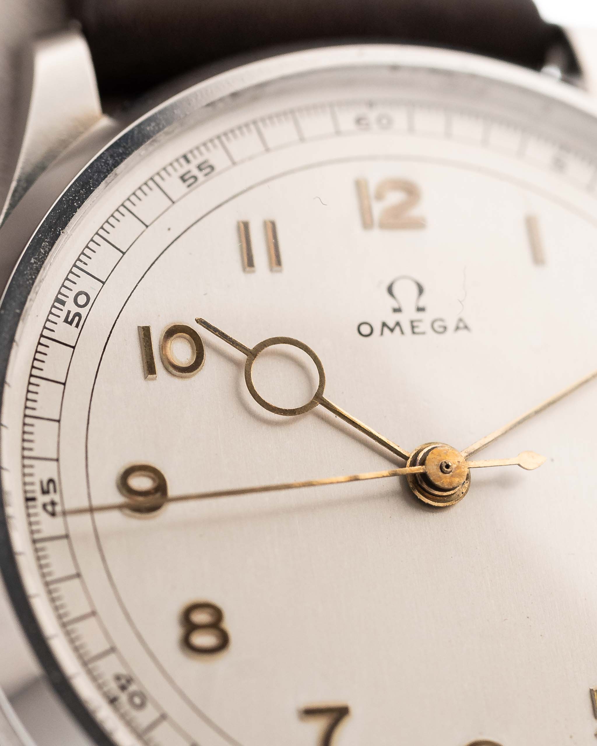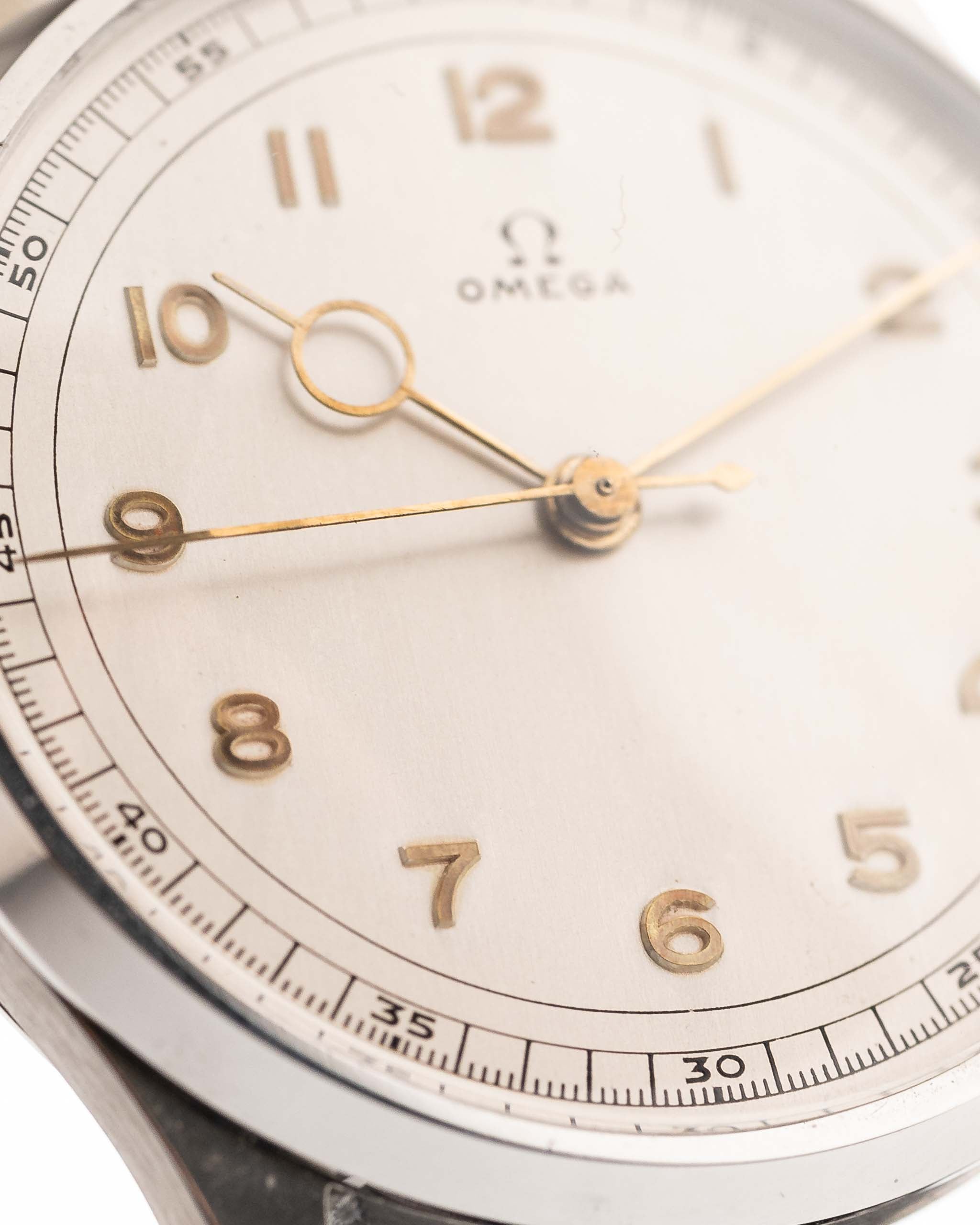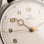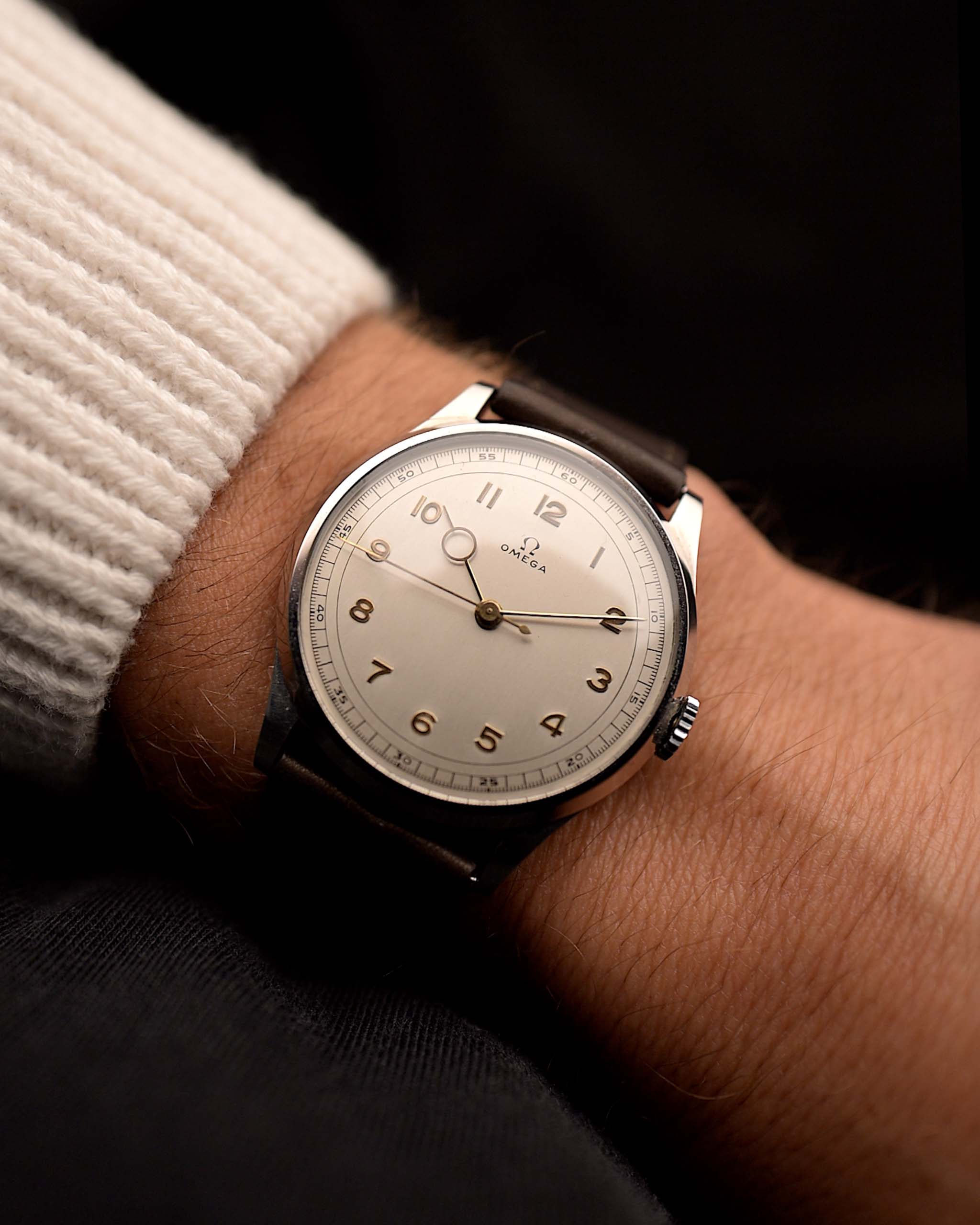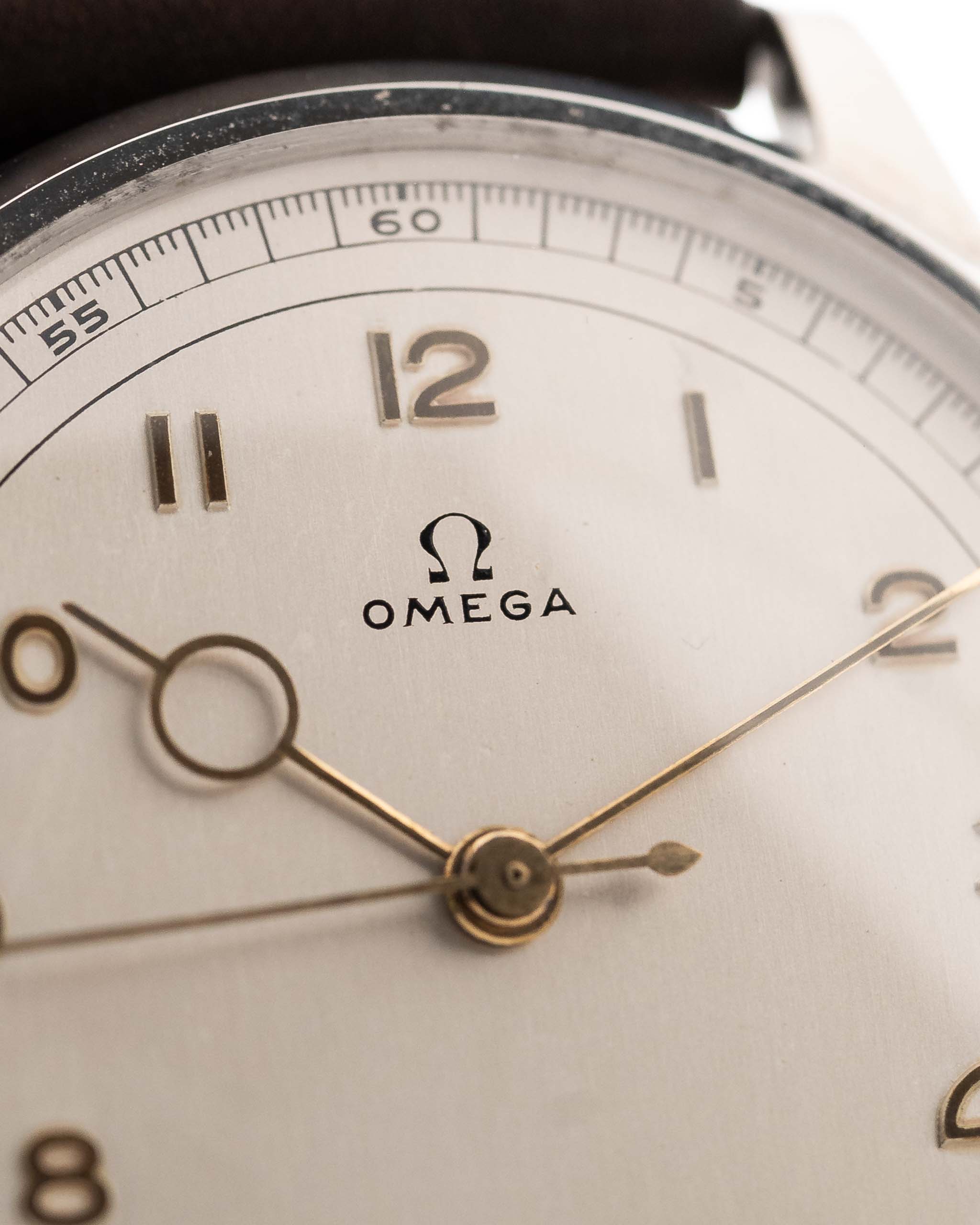 Questo non è il primo Omega degli anni '30 di cui ci siamo innamorati. Questo esemplare presenta un'enorme cassa in acciaio da 37,5 mm ed è ancora più attraente grazie alla splendida disposizione del quadrante con numeri arabi e la lancetta delle ore Pontife.