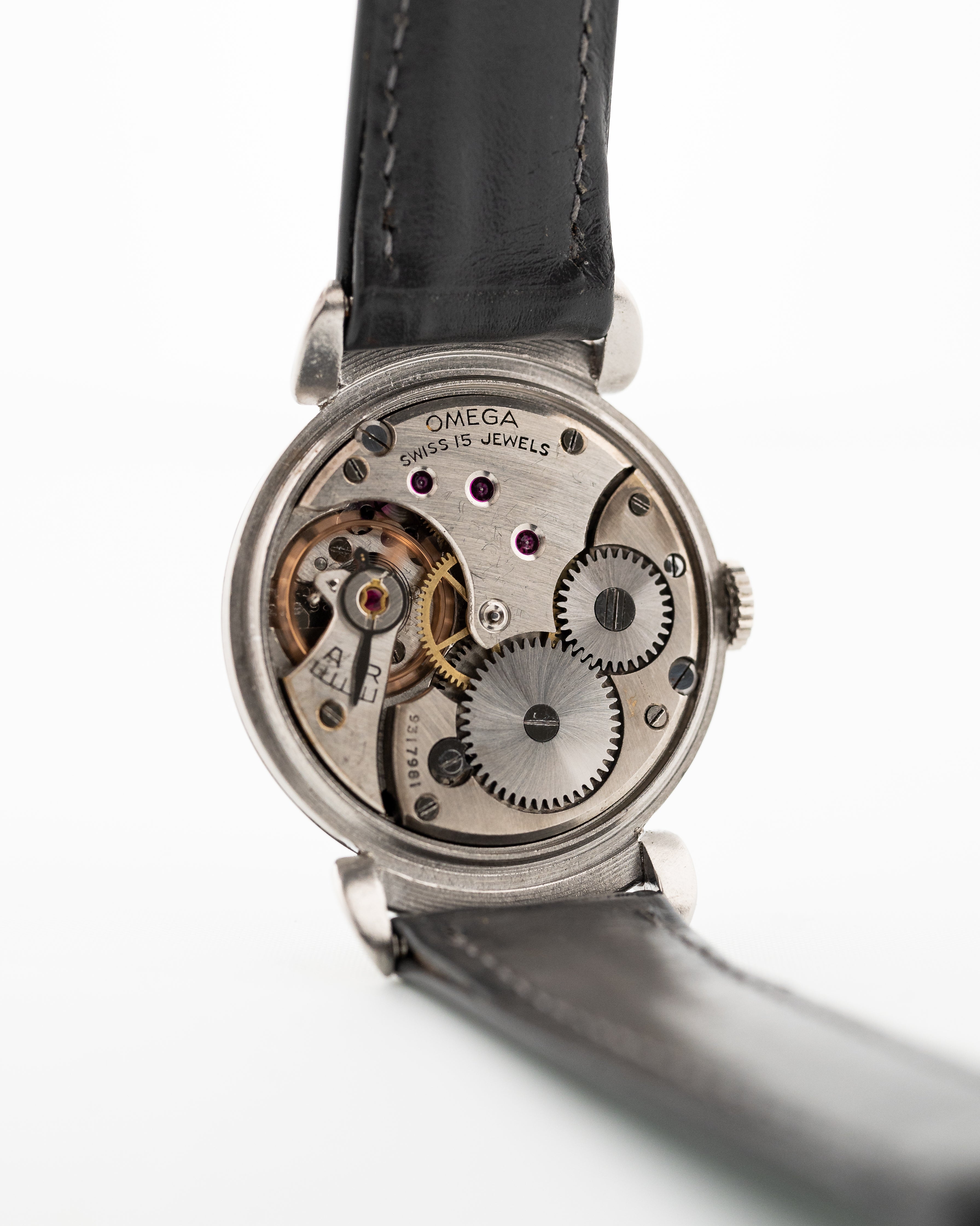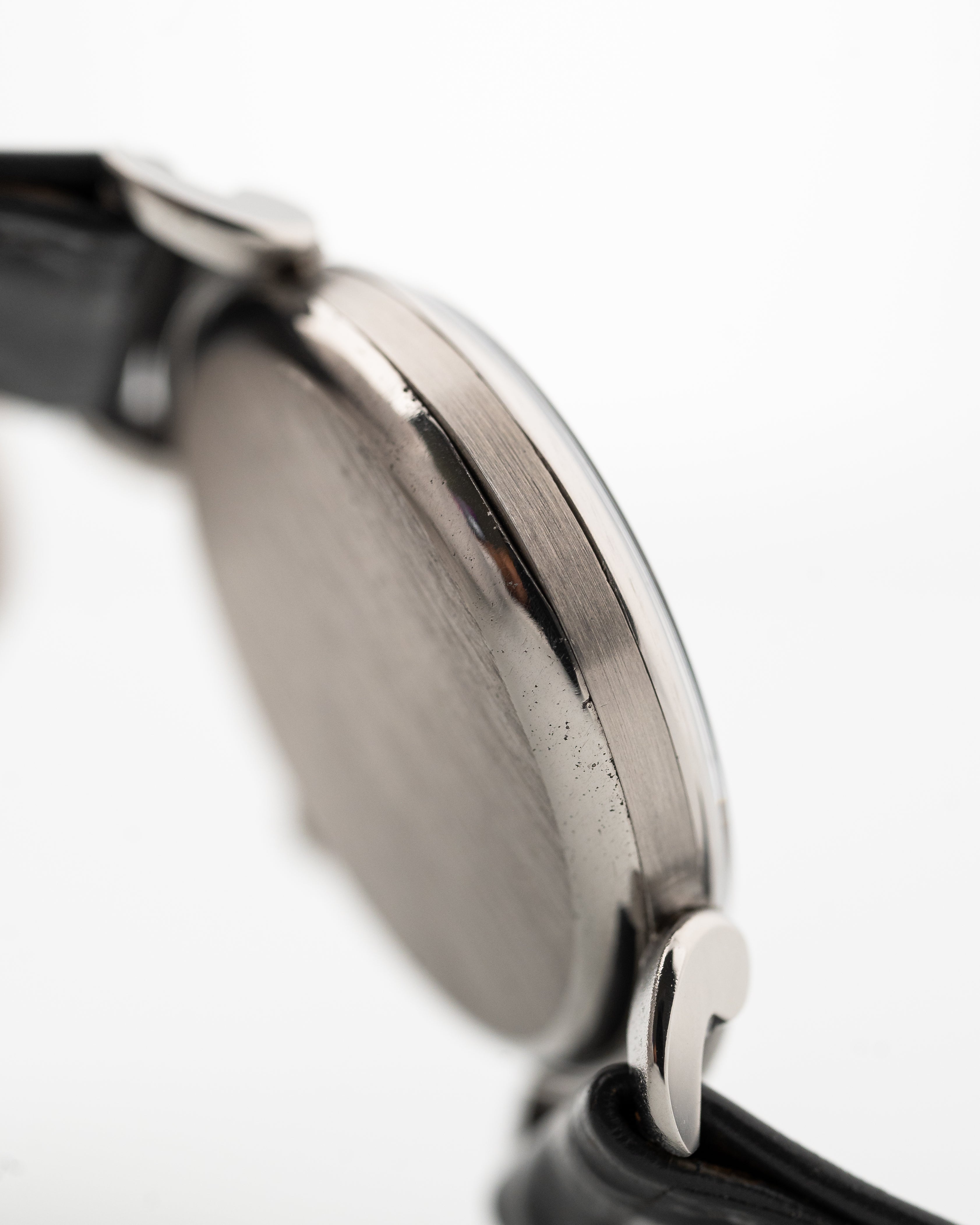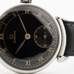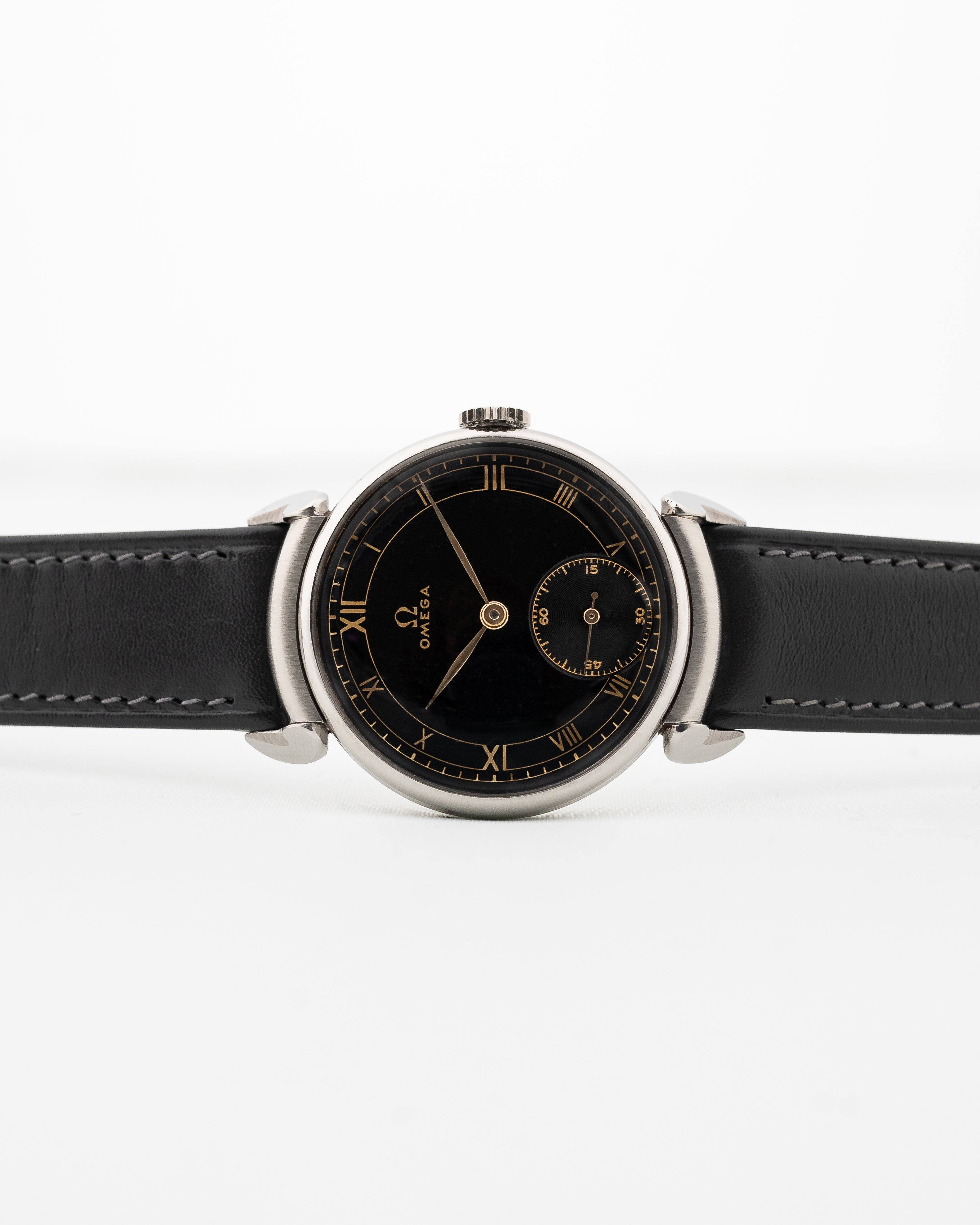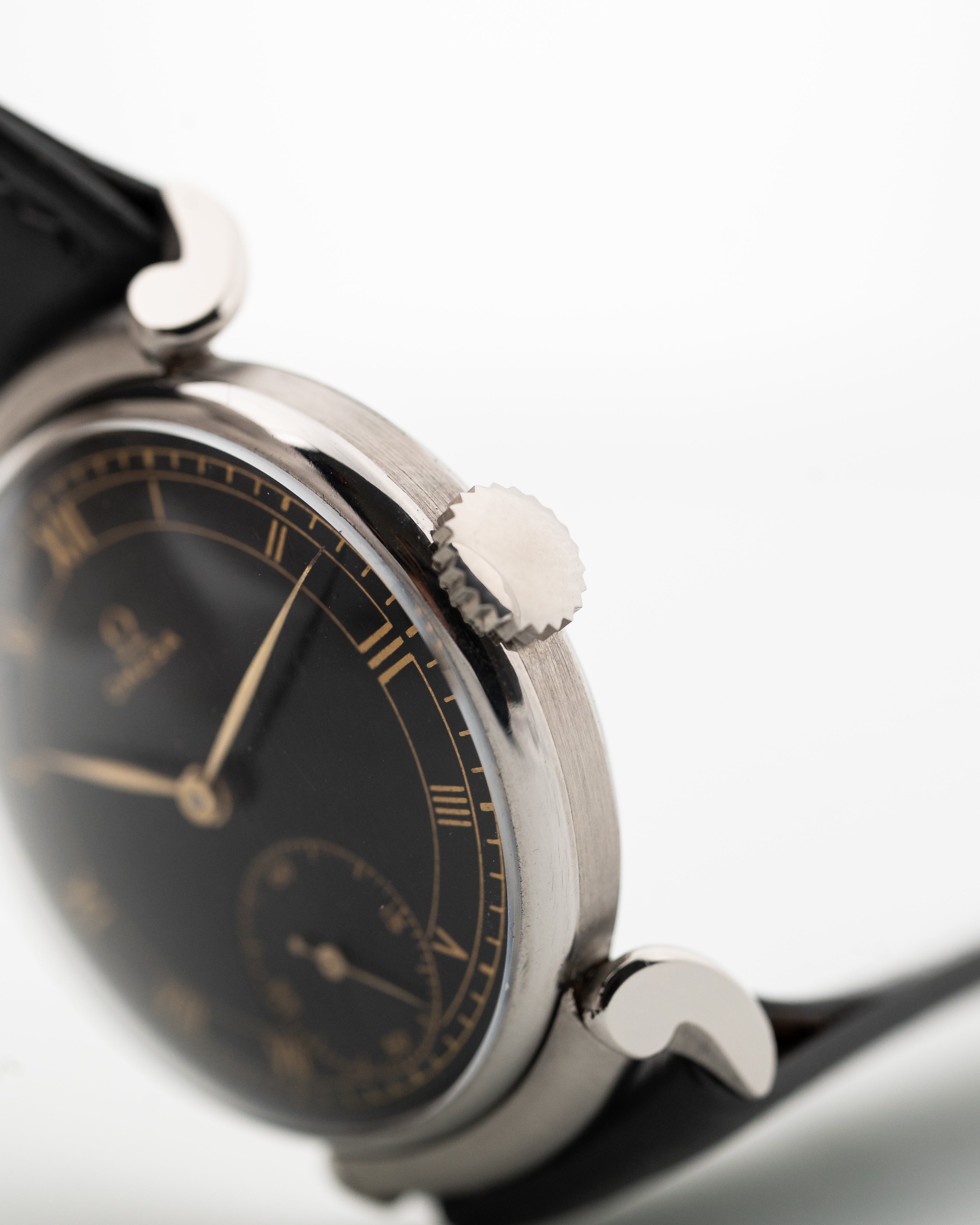 Questa bellezza presenta un grande design della cassa con un fantastico quadrante nero dorato del 1939. A causa del diametro maggiore da lughezza a lughezza, si indossa più come un pezzo da 35 mm.