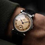 Questa bellezza presenta un grande design della cassa con un fantastico quadrante del 1935. A causa del diametro maggiore da lughezza a lughezza, si indossa più come un pezzo da 35 mm.