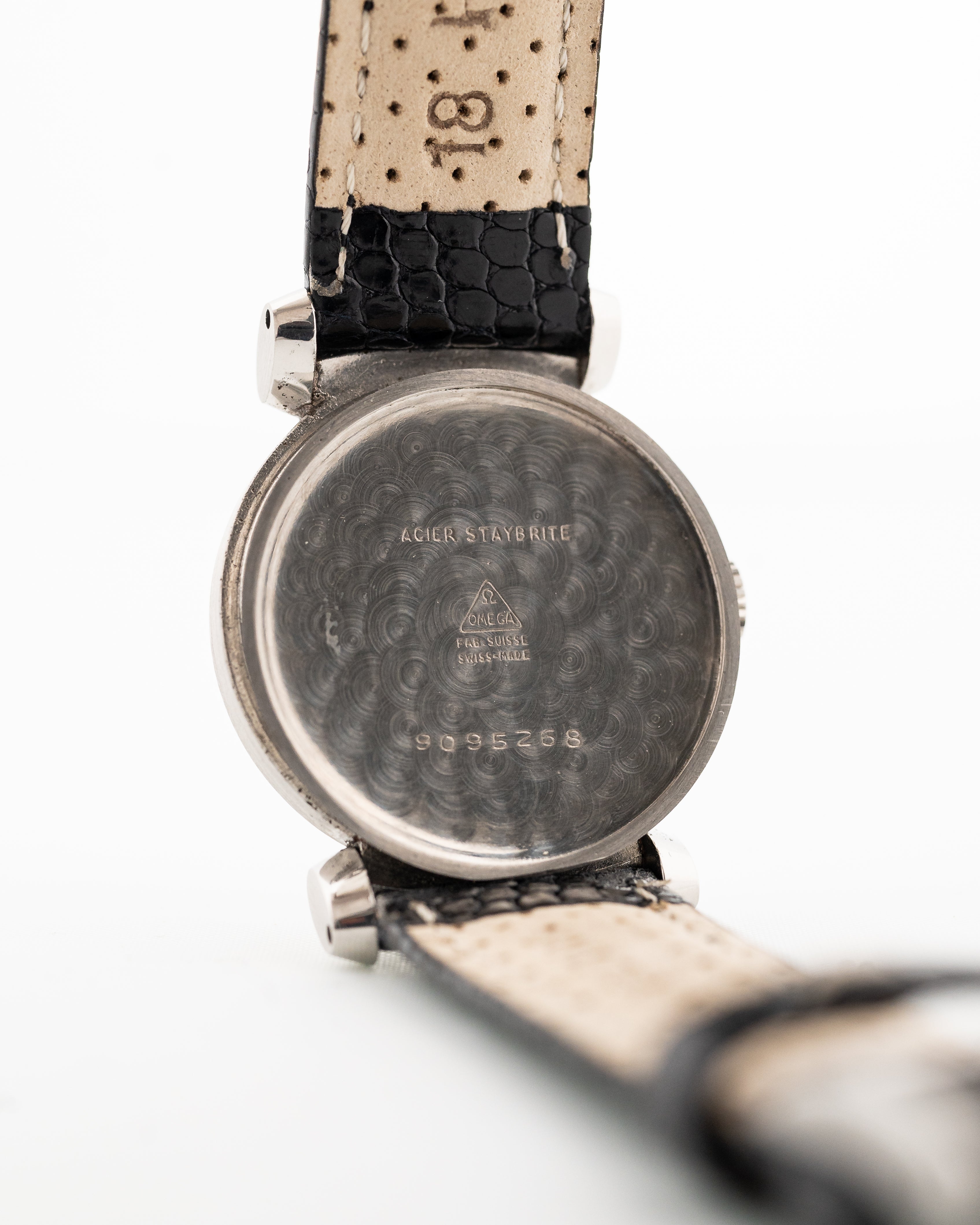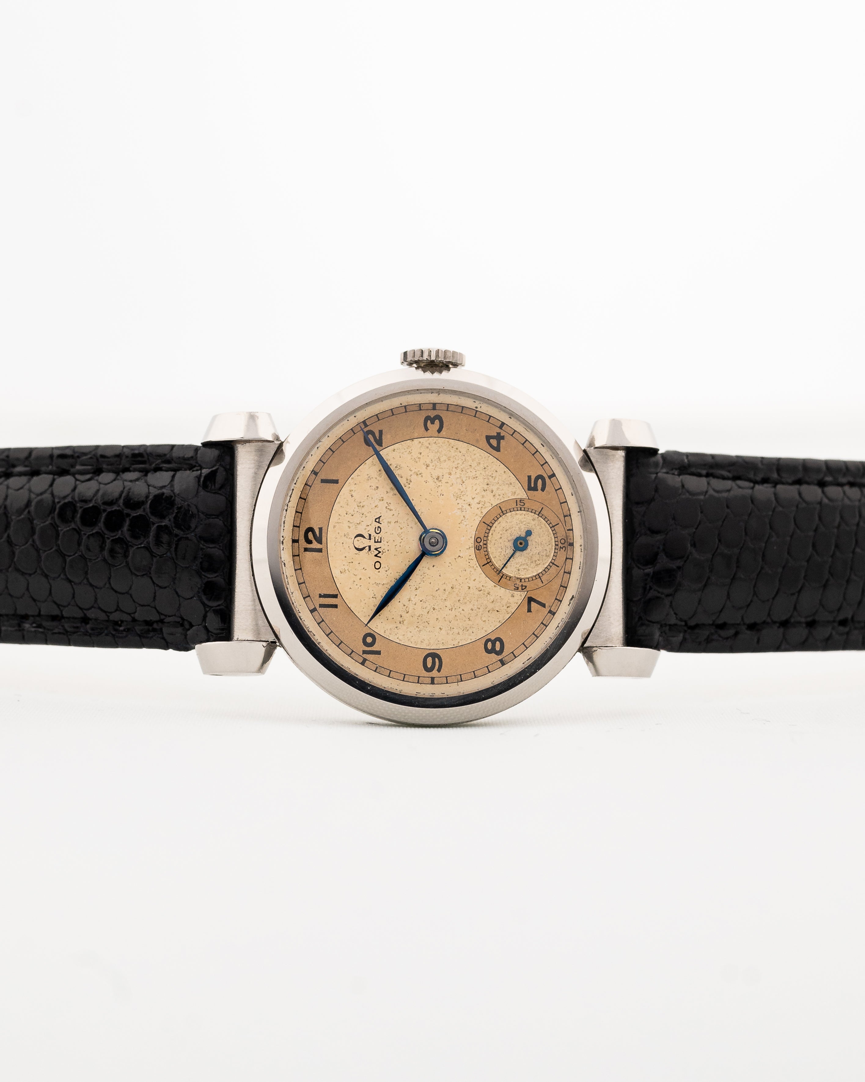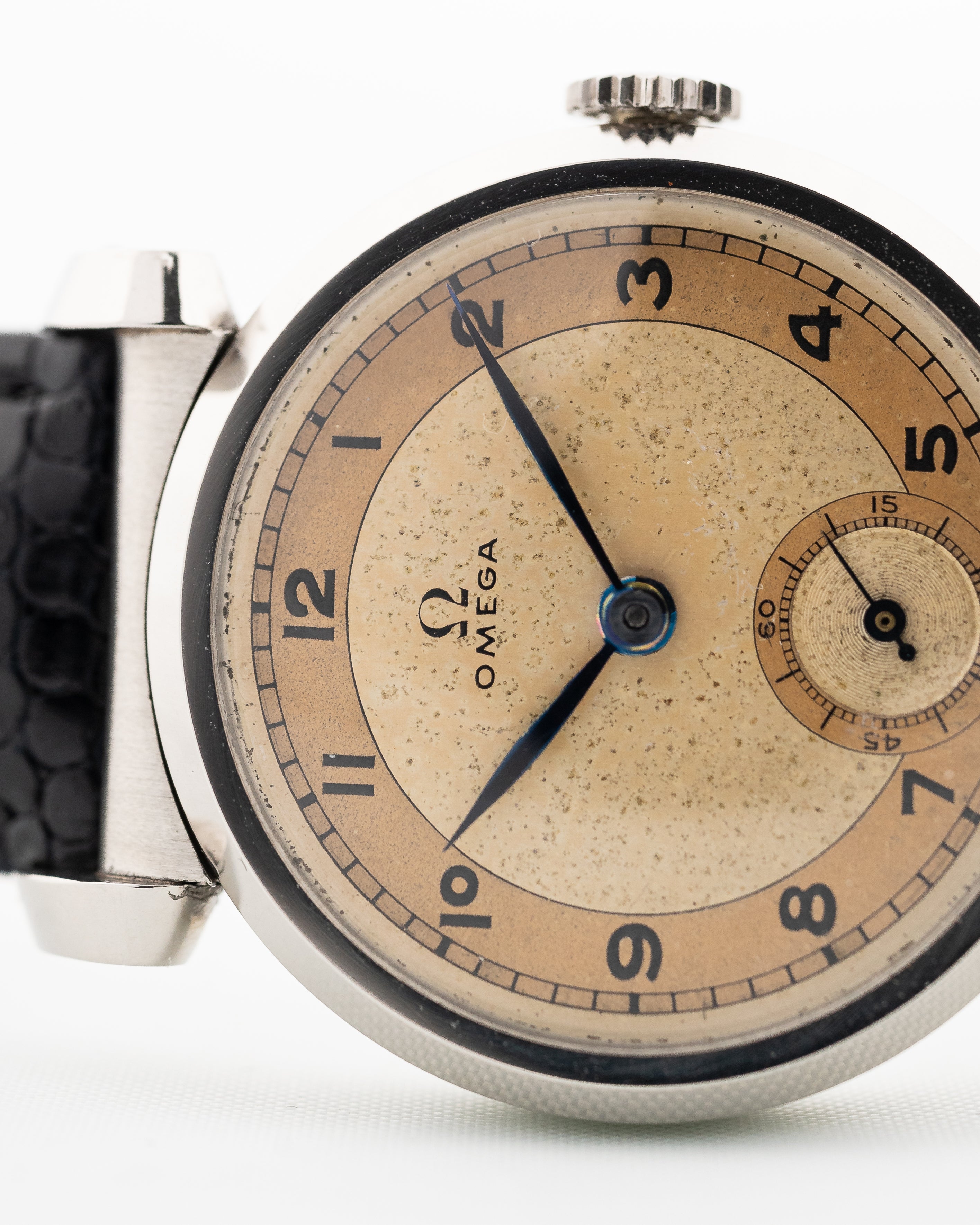 Trovare un Omega con anse a scarabeo in ottime condizioni è piuttosto difficile. Ma trovarne uno con un bellissimo quadrante bicolore e lancette blu impeccabili è quasi impossibile.