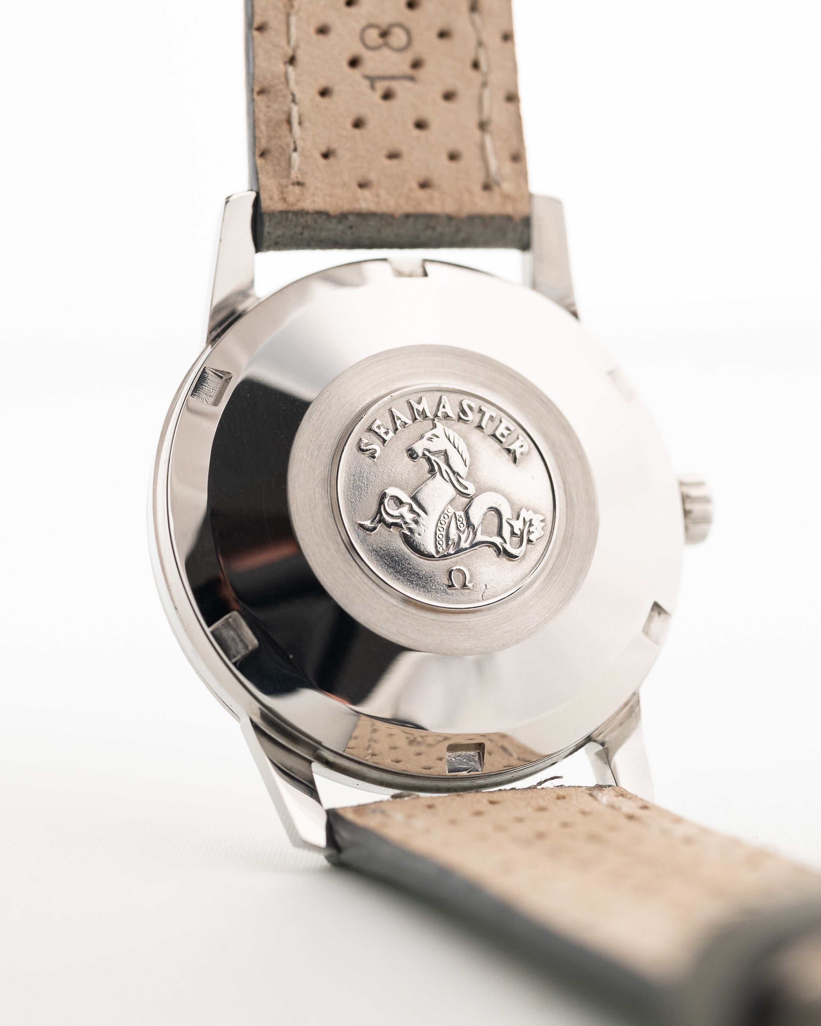 Qui può vedere un affascinante Seamaster realizzato da Omega nel 1962. Presenta una cassa in acciaio inossidabile da 34 mm con anse dritte ed è dotato di un bellissimo quadrante bianco pulito, con splendidi indici e lancette dauphine.
