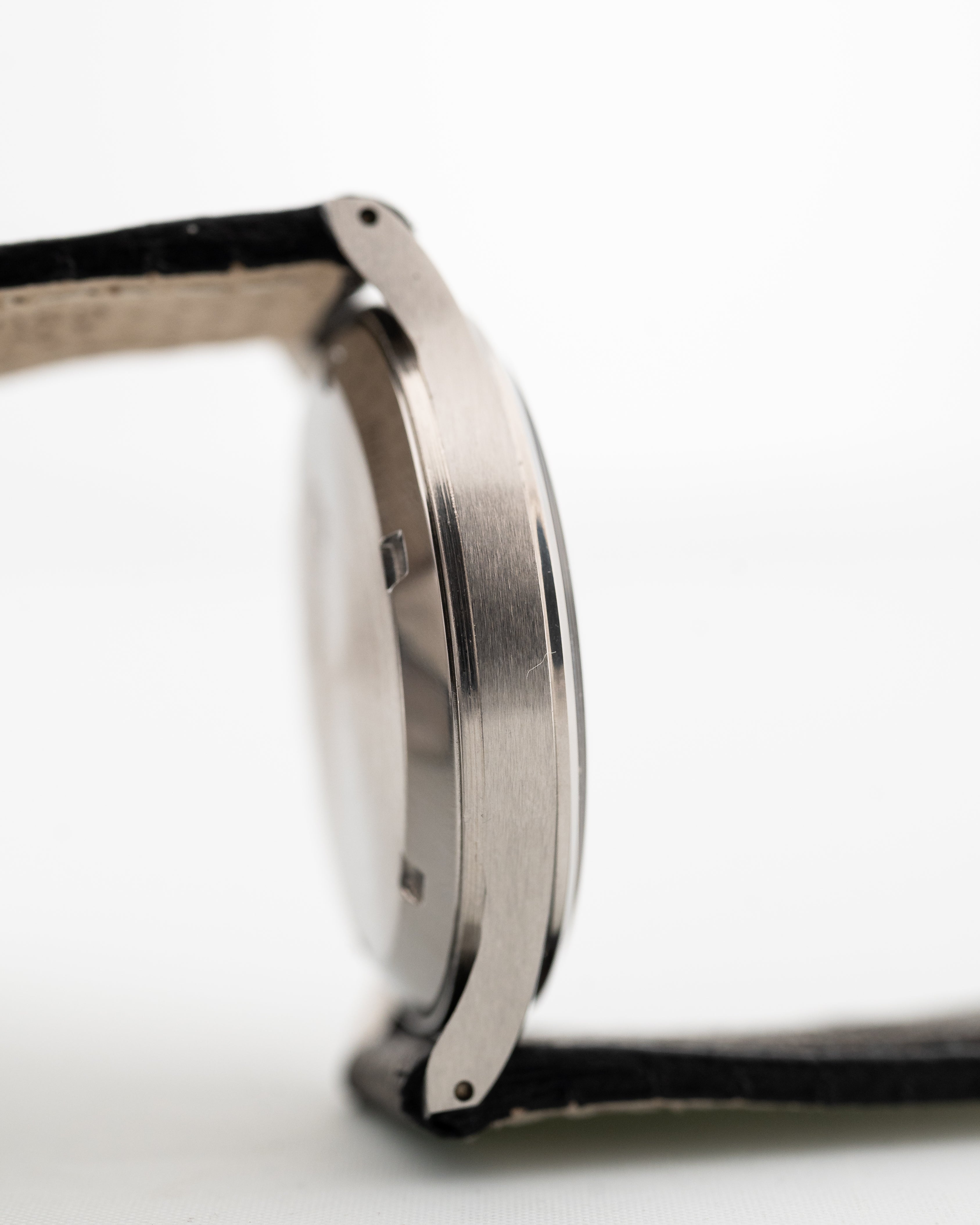 Dotato di una cassa in acciaio da 35,5 mm, di anse ribassate e di uno splendido quadrante bicolore, questo orologio è davvero imbattibile. Il quadrante è invecchiato magnificamente e presenta numeri arabi e un quadrante sussidiario dei secondi, che migliorano ulteriormente l'abbigliamento di questo orologio.