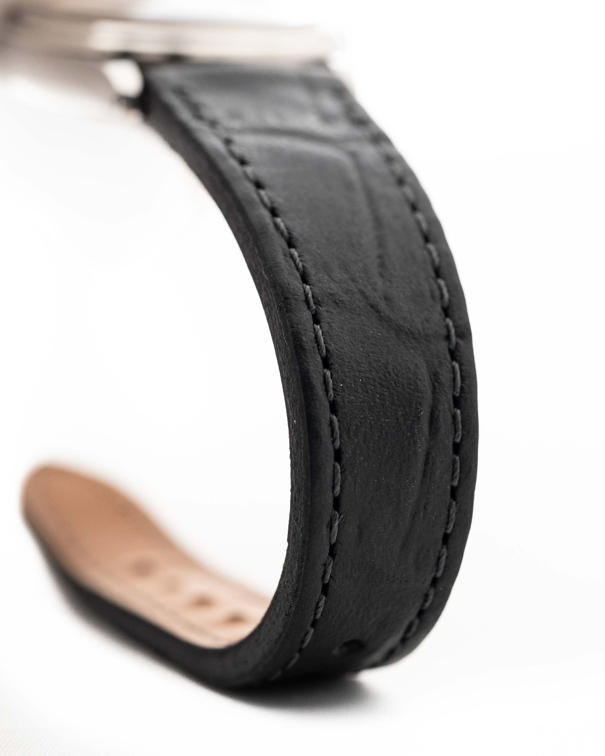 • Viene fornito con un cinturino in pelle nera aftermarket che si adatta a polsi di dimensioni fino a 20 cm / spessore 2,8 mm.