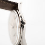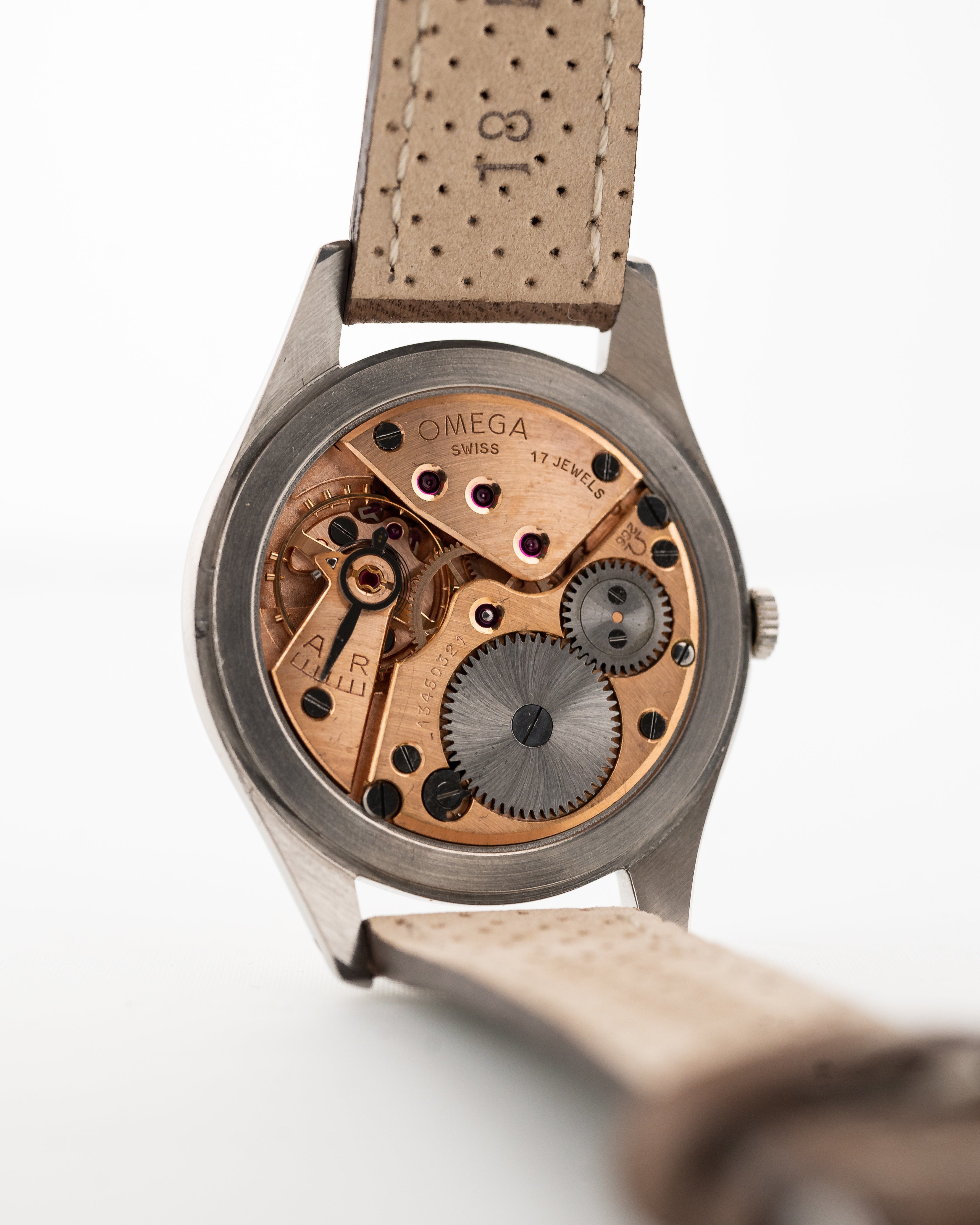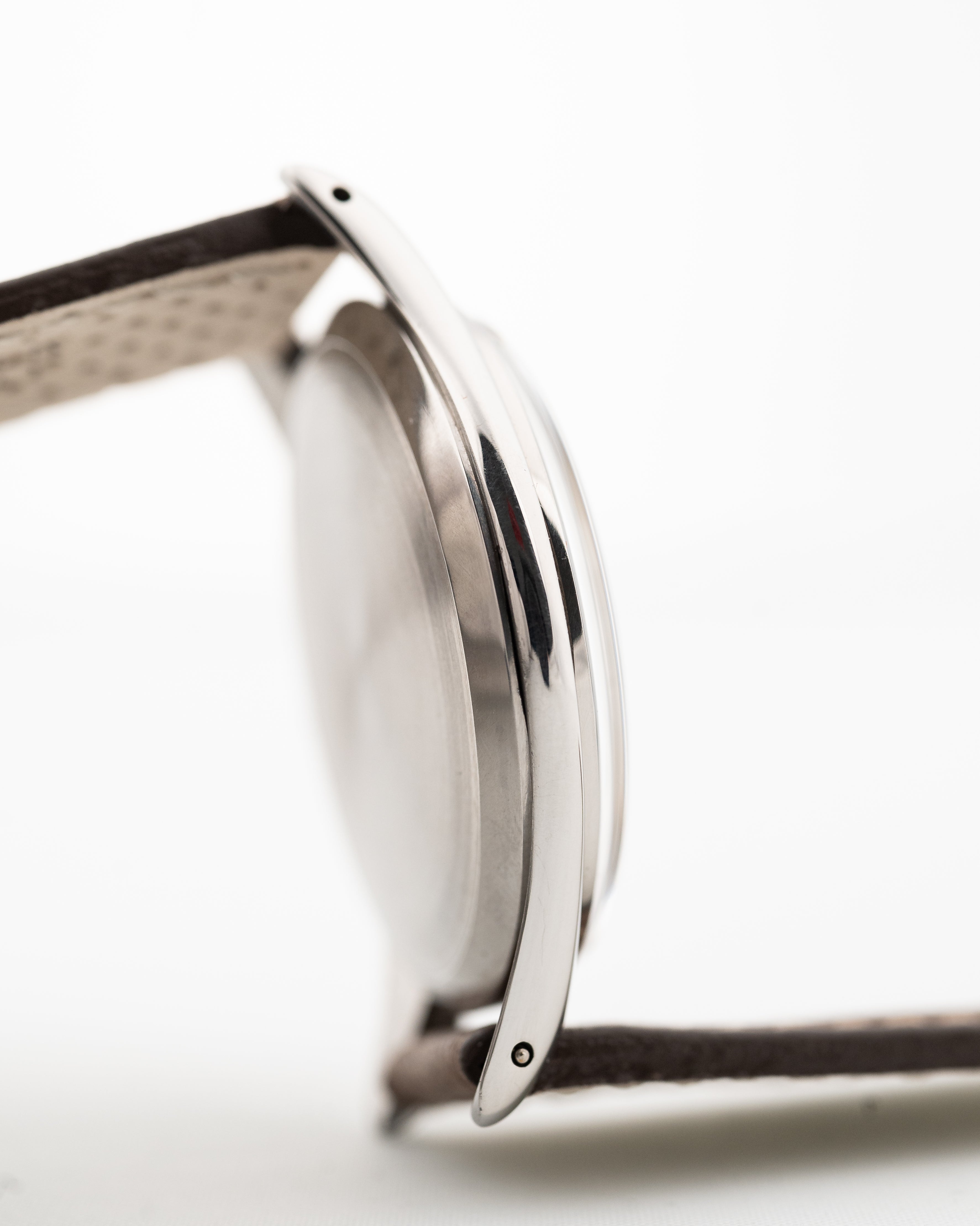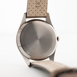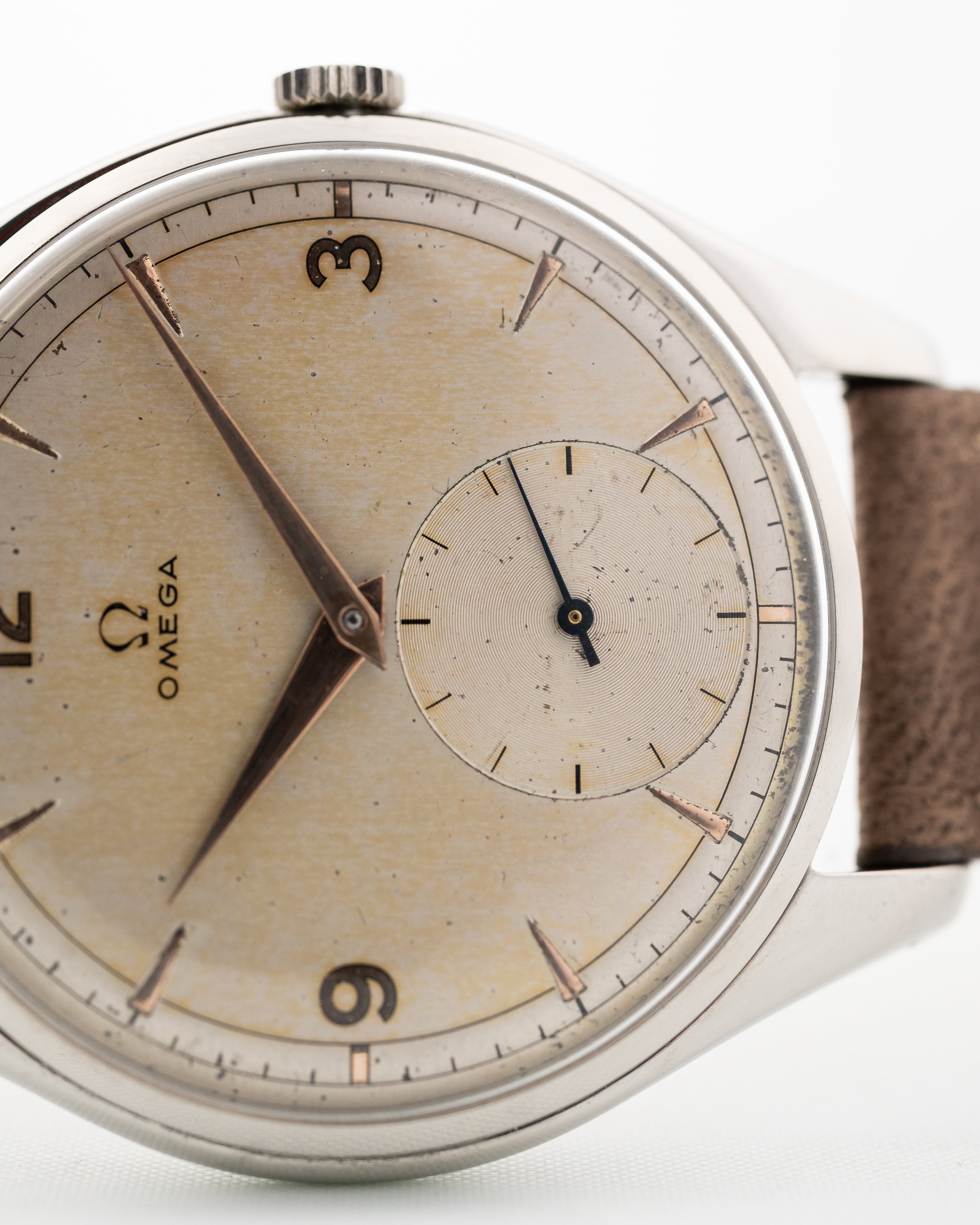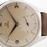 Gli anni '50 sono stati un buon periodo per Omega, come dimostra questo bellissimo orologio da sera. Questo esemplare non è solo bello, ma anche sostanzioso. Dotato di un'enorme cassa in acciaio da 38 mm, di anse ribaltate e di uno splendido quadrante bicolore leggero, questo orologio è davvero imbattibile.