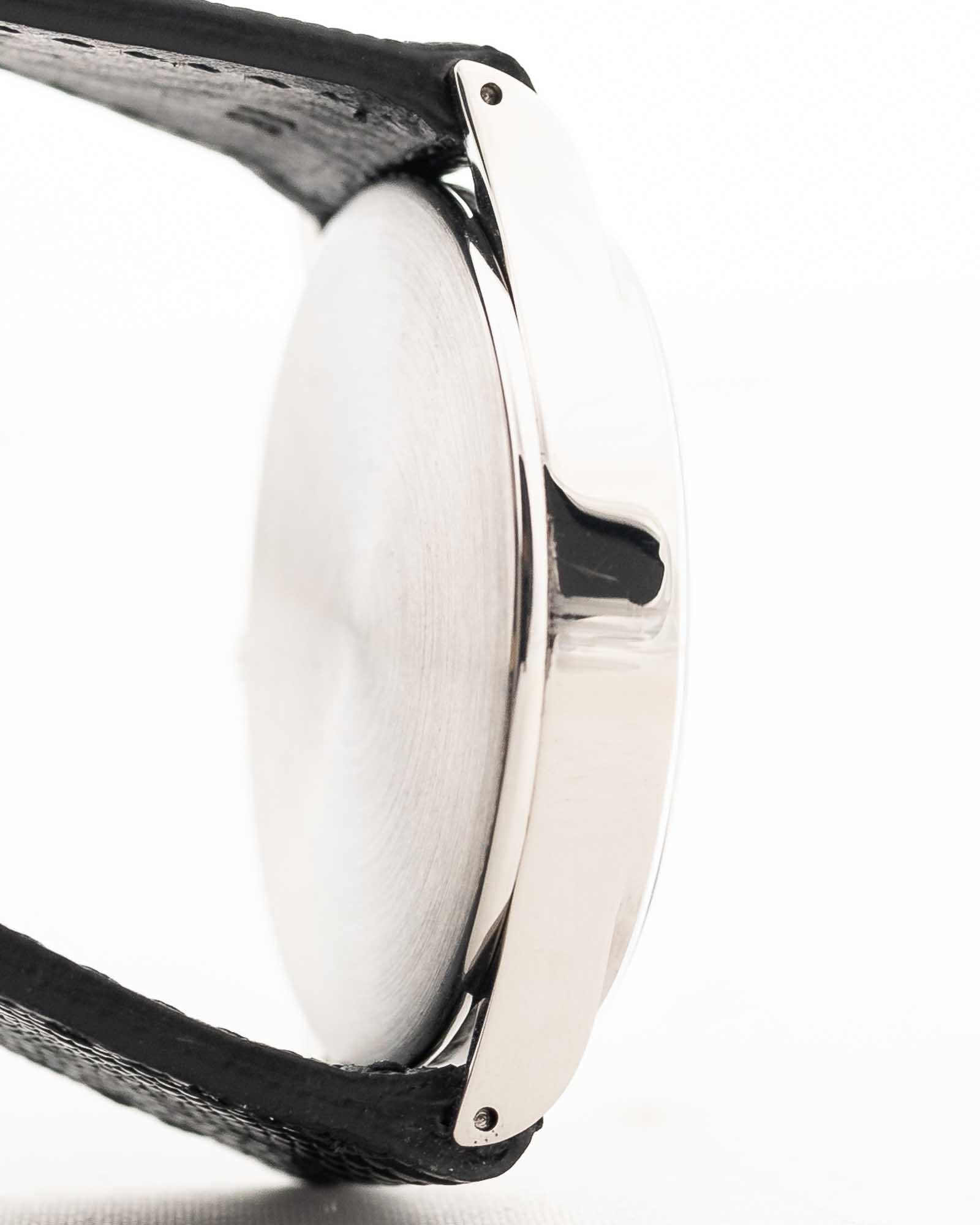 La sua cassa affilata in acciaio inossidabile da 33 mm offre una presenza discreta al polso e un perfetto understatement, mentre i secondi secondari a ore sei completano il layout classico. Un esemplare straordinariamente ben conservato dell'era 30T2 di Omega.