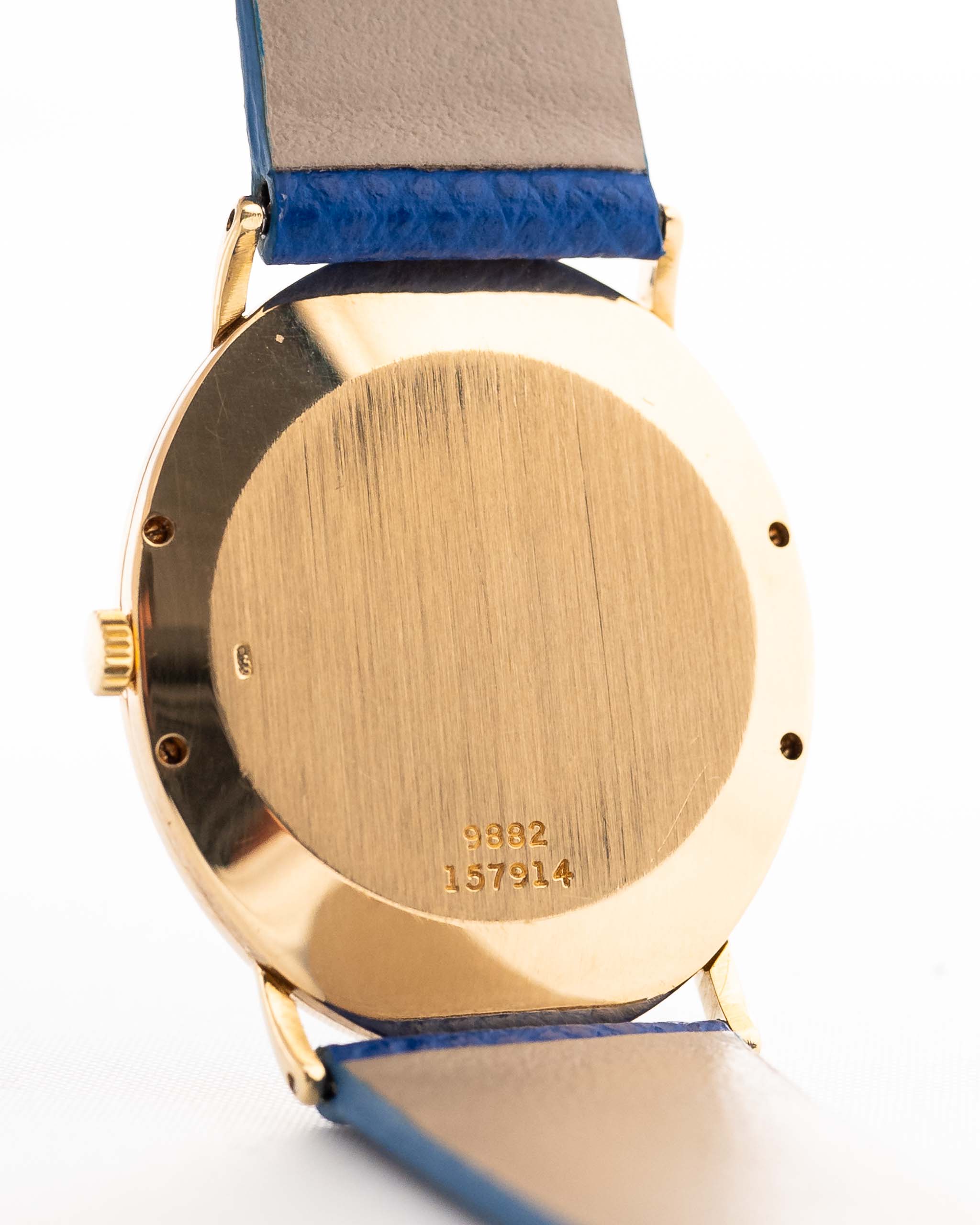 La sua sottigliezza non era solo un risultato tecnico, ma consentiva anche alla manifattura di montare quadranti in pietre dure mantenendo un profilo sottile, come questo impeccabile Piaget Ellipse 18k con un bellissimo quadrante in pietra Lapislazzuli.