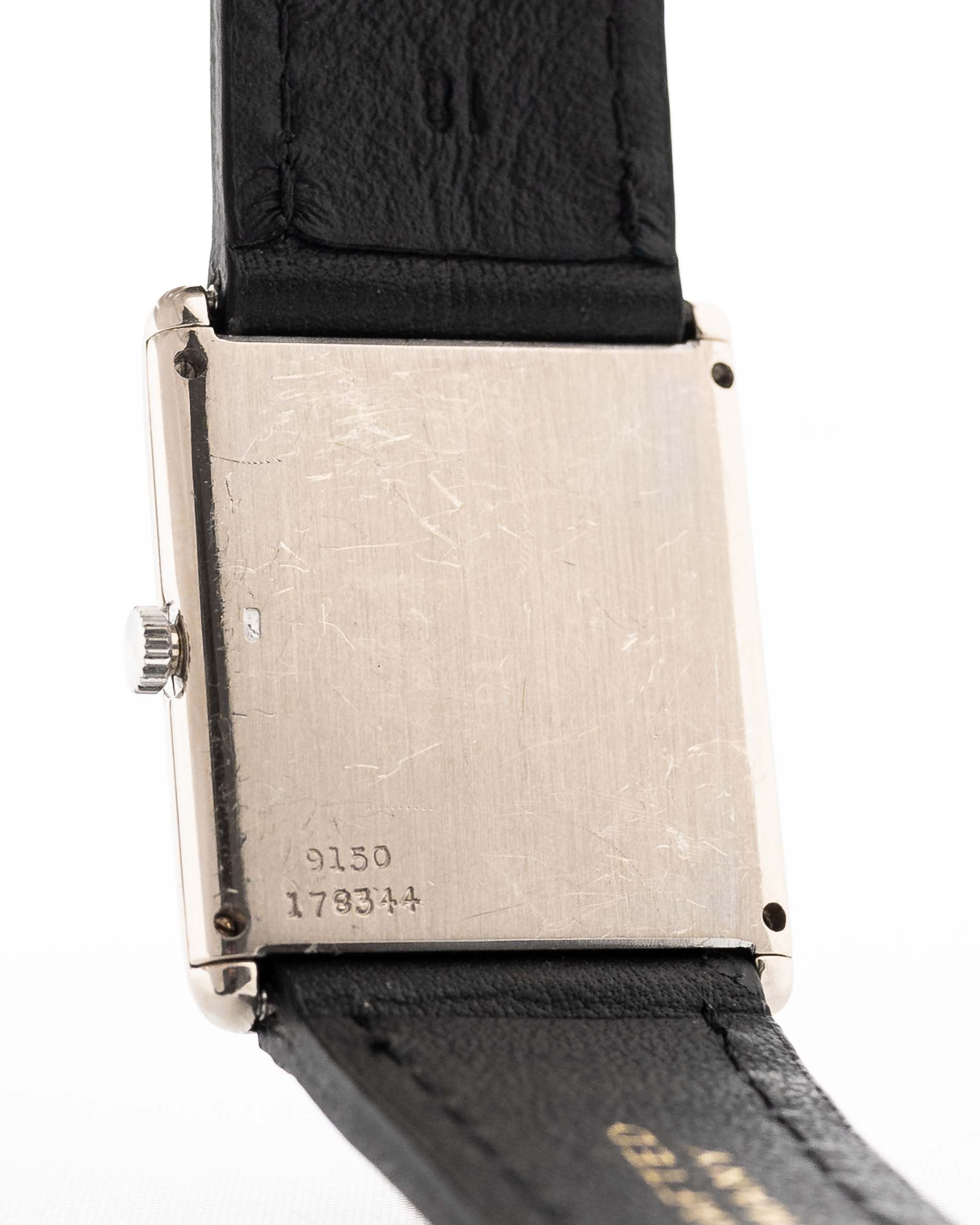 Orologio vintage Piaget Tank 9150 Lapislazzuli 18k Roman degli anni '70. 23 mm con cassa in oro bianco 18k, quadrante Lapislazzuli, Calibro 9P a carica manuale, cinturino in pelle nera in ottime condizioni.
