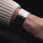 • Il bracciale in oro bianco 18 carati si adatta a un polso di 19,5 cm (regolabile di 0,5 cm alla chiusura) / 1,7 mm di spessore.