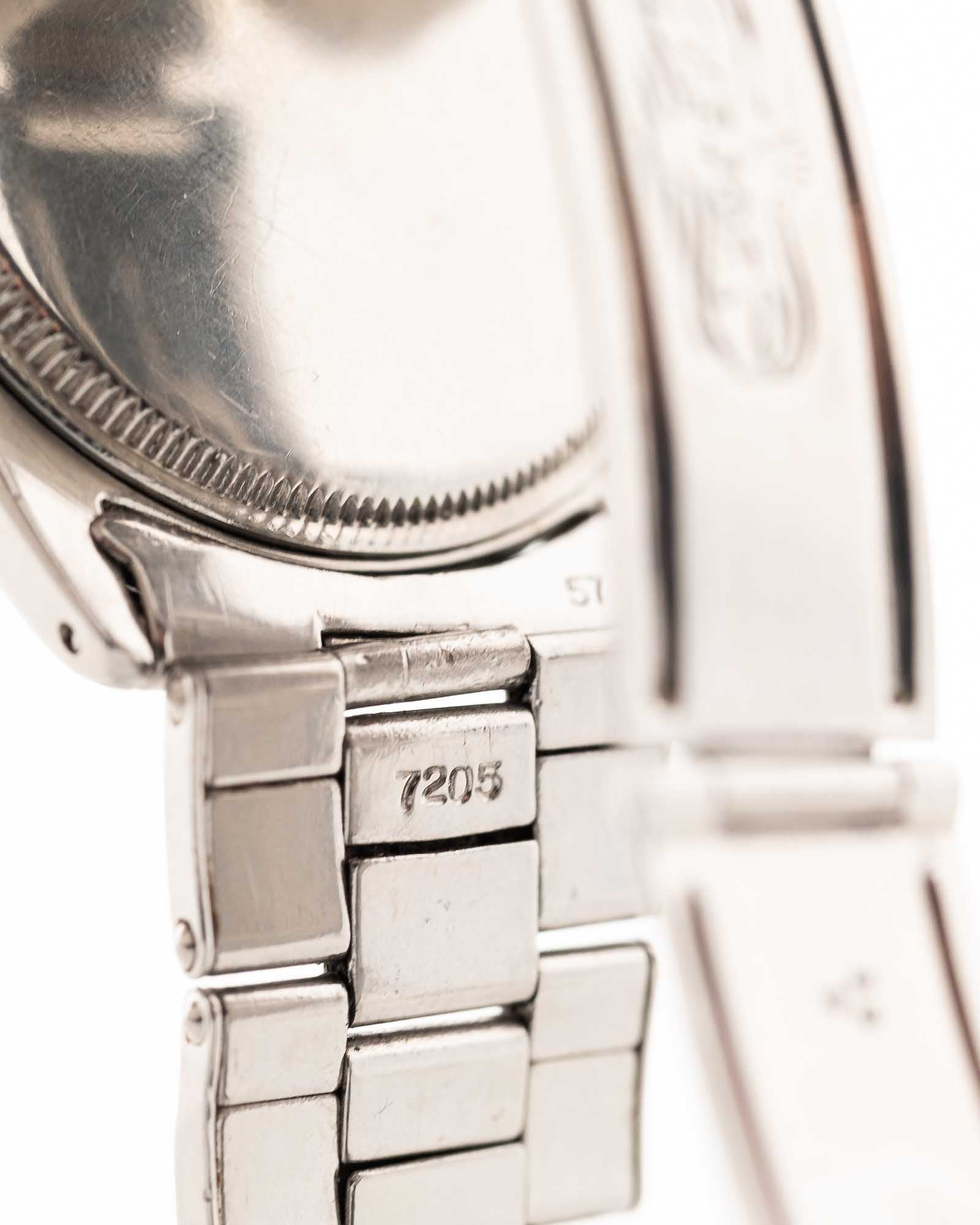 Racchiuso in una cassa Oyster in acciaio inossidabile del 1963 ben conservata, questo orologio incarna tutto ciò che i collezionisti apprezzano dei primi Rolex: semplicità, proporzioni e design senza tempo. Un pezzo autentico ed elegante che dimostra come meno sia davvero meglio.
