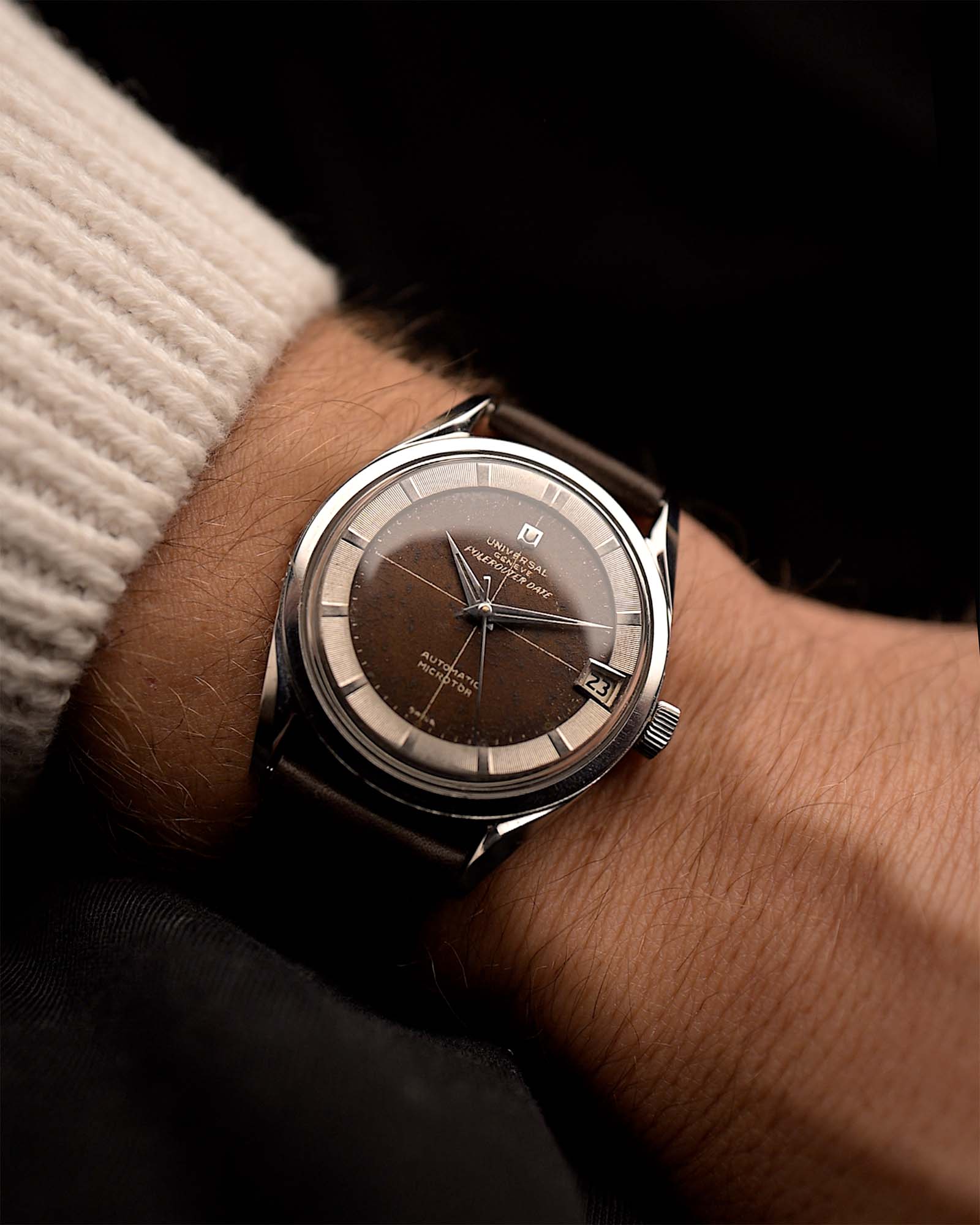 The case has been carefully polished to original Universal Genève factory specs, preserving its sharp, sculptural lines. Altogether, this is more than just a watch — it’s a design milestone from one of horology’s greatest minds, and a standout collector’s piece.