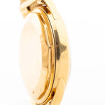Gli indici dorati a forma di diamante nel mezzo, la minuteria a cerchio interno e la lancetta a bastone rendono l'occhio ancora più piacevole. La ciliegina sulla torta è il bracciale integrato Vacheron Constantin giallo 18 carati.