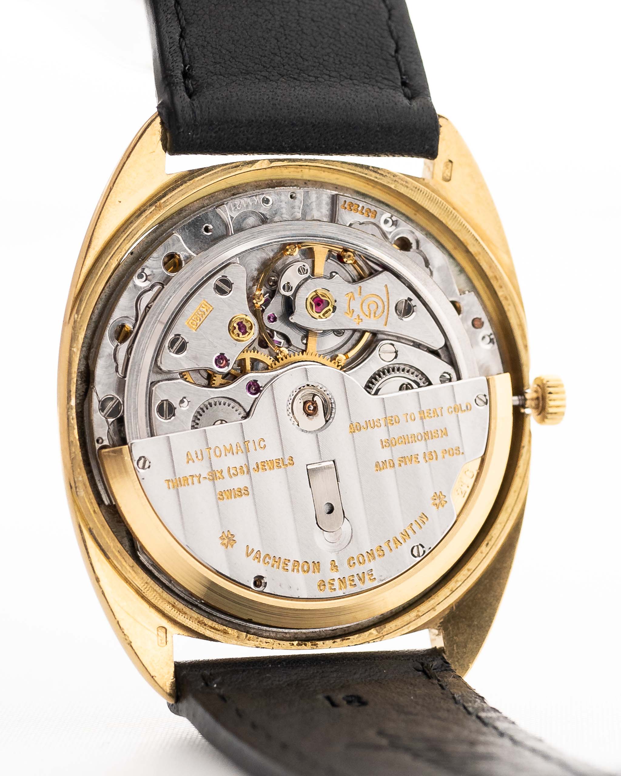 Vacheron Constantin 2020 Tonneau vintage degli anni '50 al polso. 32 mm con cassa in oro giallo 18 carati, calibro automatico K1121, quadrante nero opaco originale e cinturino in pelle nera. K1121, quadrante nero opaco originale e cinturino in pelle nera.