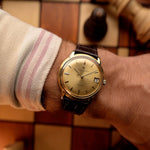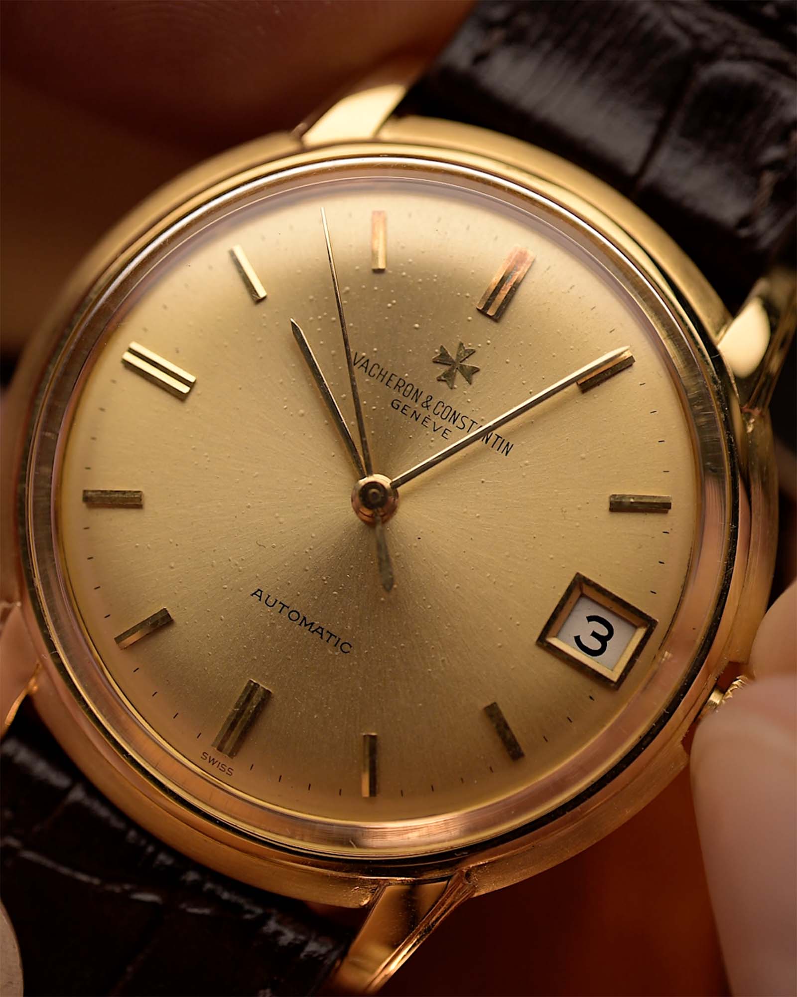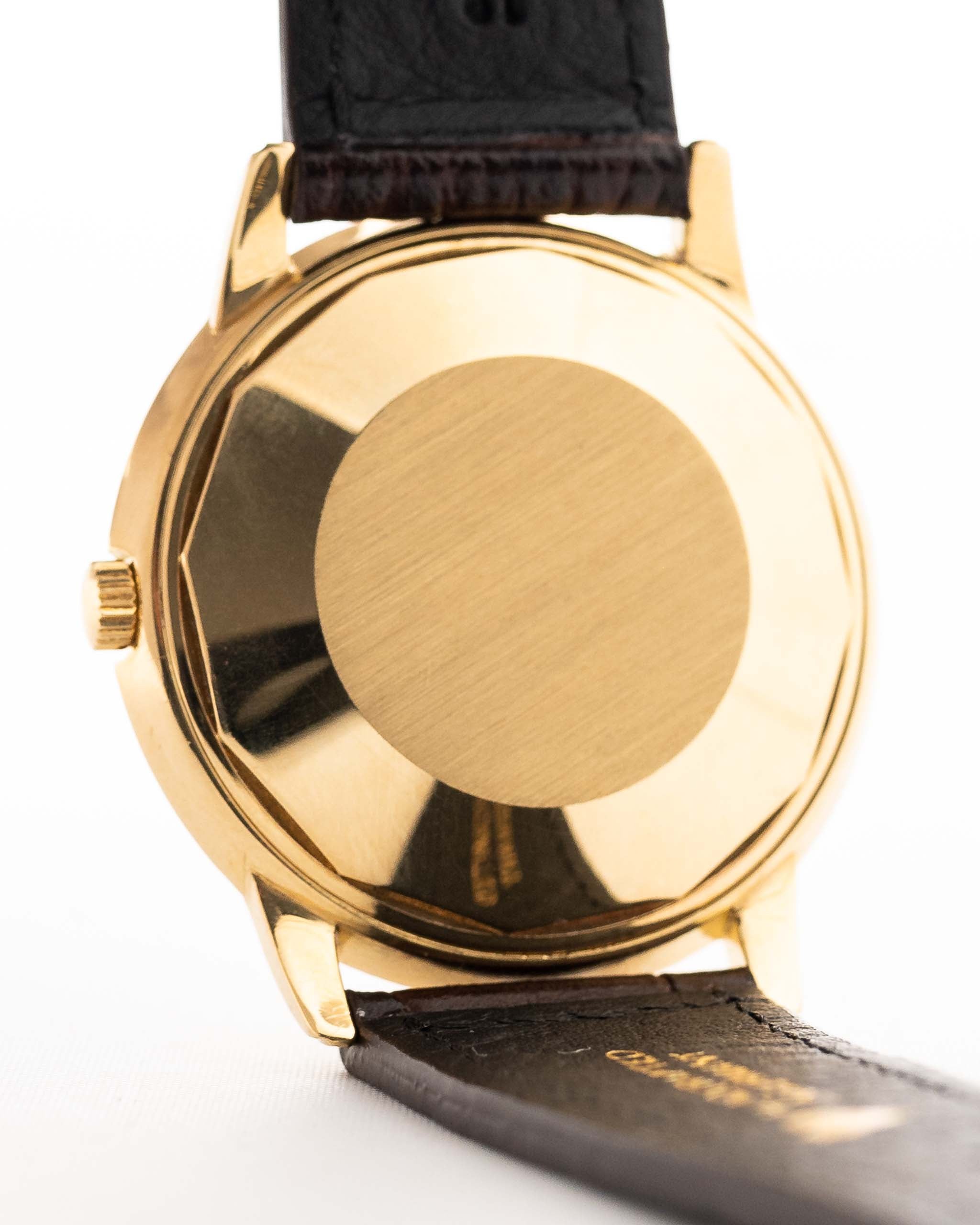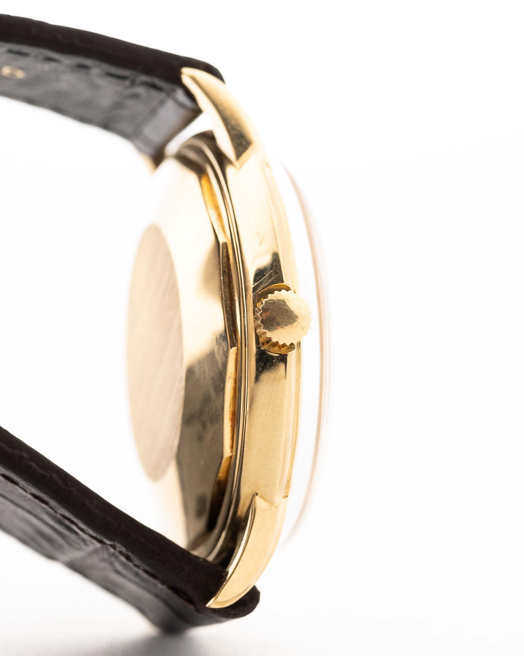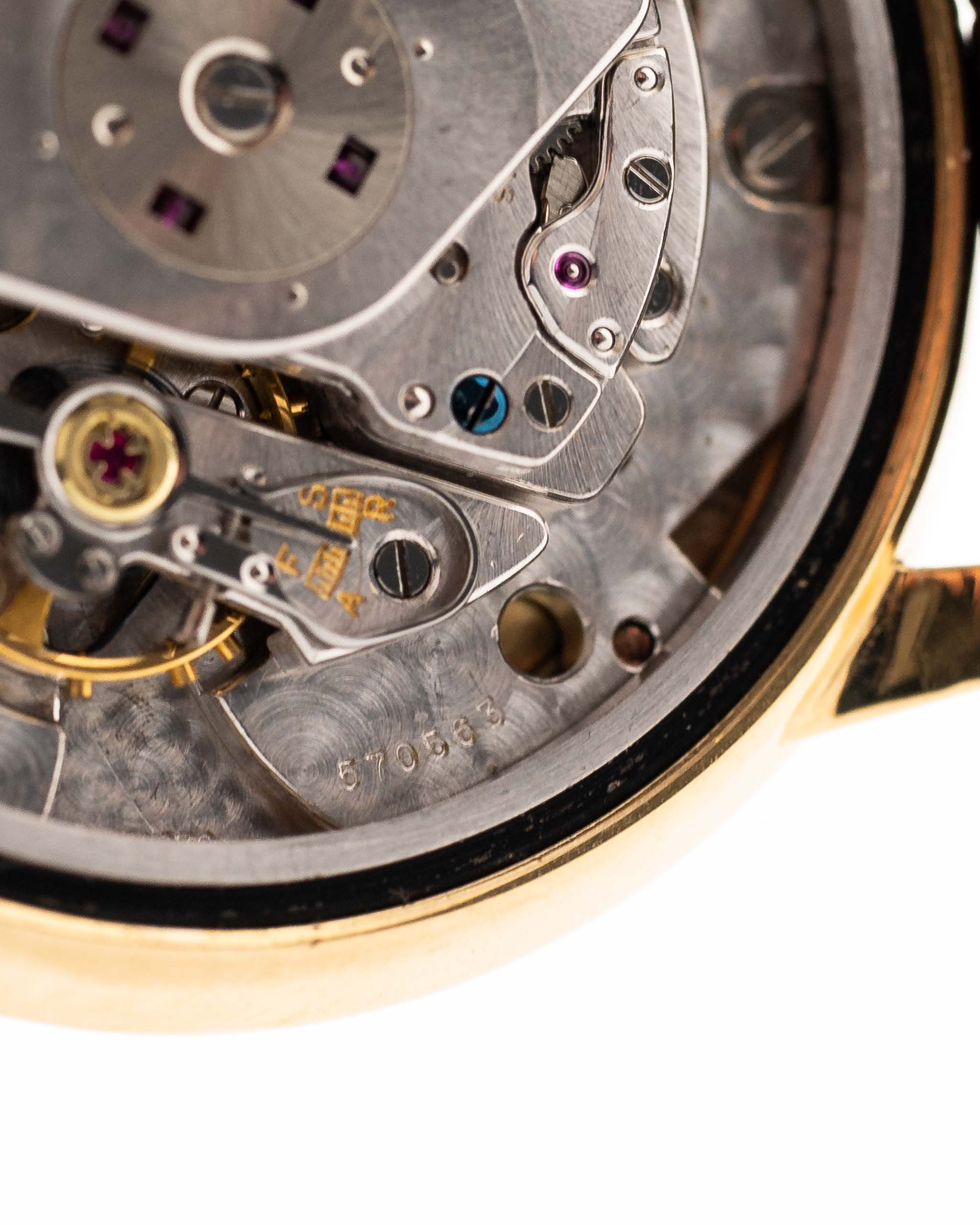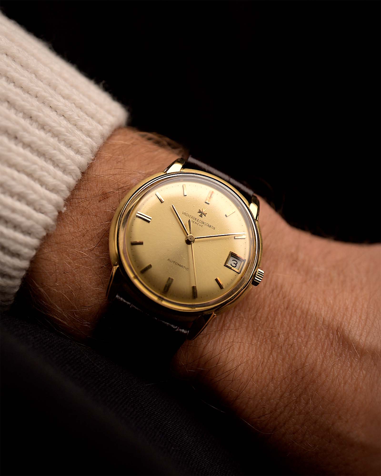 Le sue anse a gradini, le sottili curve della cassa e le lancette a bastone minimaliste creano un profilo classico e distinto al tempo stesso. All'interno si trova il Calibro Vacheron Constantin K1072, un primo movimento automatico "bumper" - un tocco affascinante di eredità orologiera.