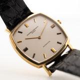 Ecco un orologio Vacheron Constantin in oro giallo 18 carati splendidamente rifinito, con cassa a forma di TV del 1991. Questo pezzo in particolare si distingue per il suo bellissimo quadrante pulito in lino bianco, gli indici in oro 18k dal design meraviglioso e la robusta cassa in oro giallo 18k a forma di TV.