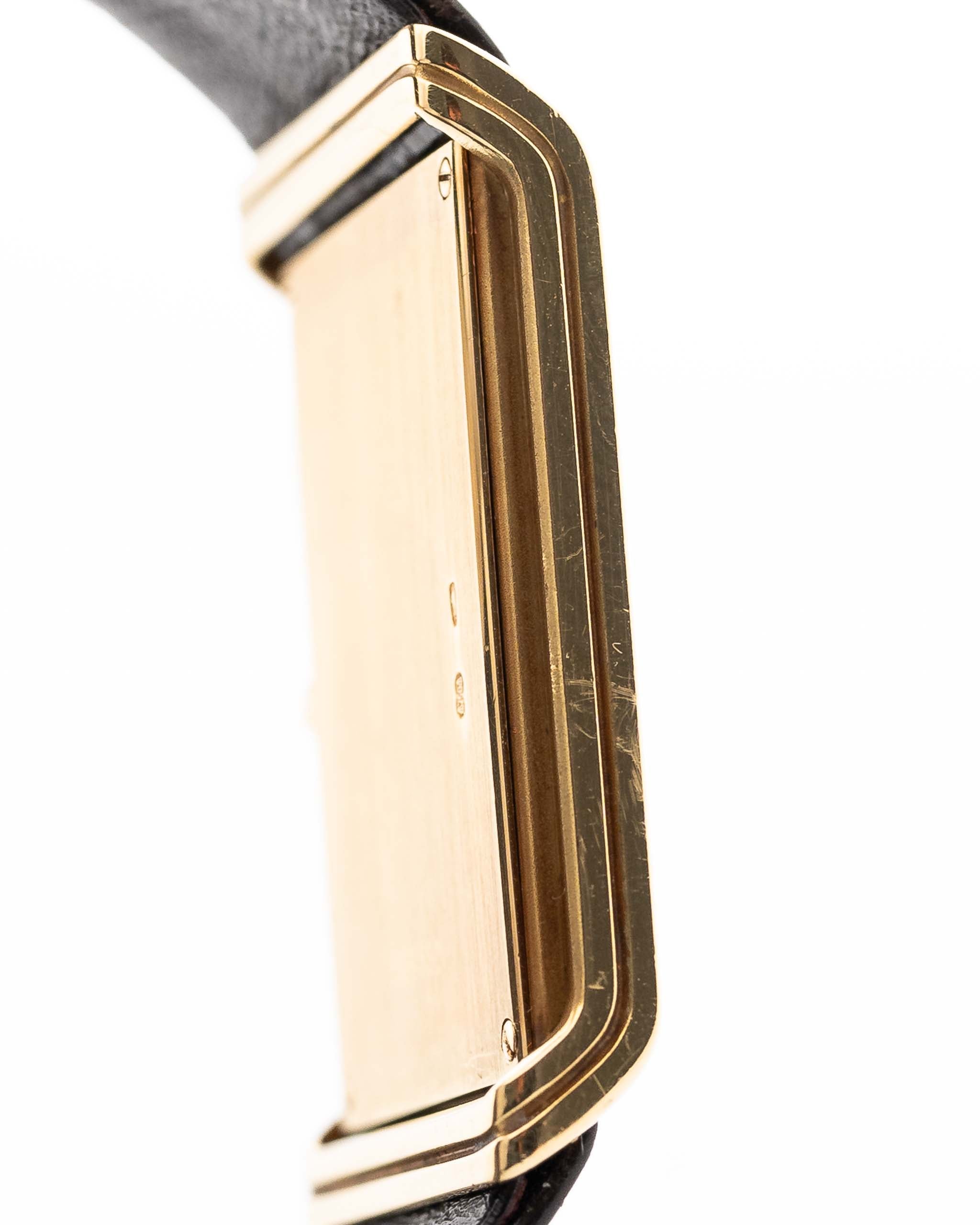 Ecco un bellissimo orologio da sera Vacheron Constantin in oro giallo 18 carati della collezione Harmony, con cassa rettangolare degli anni Ottanta.