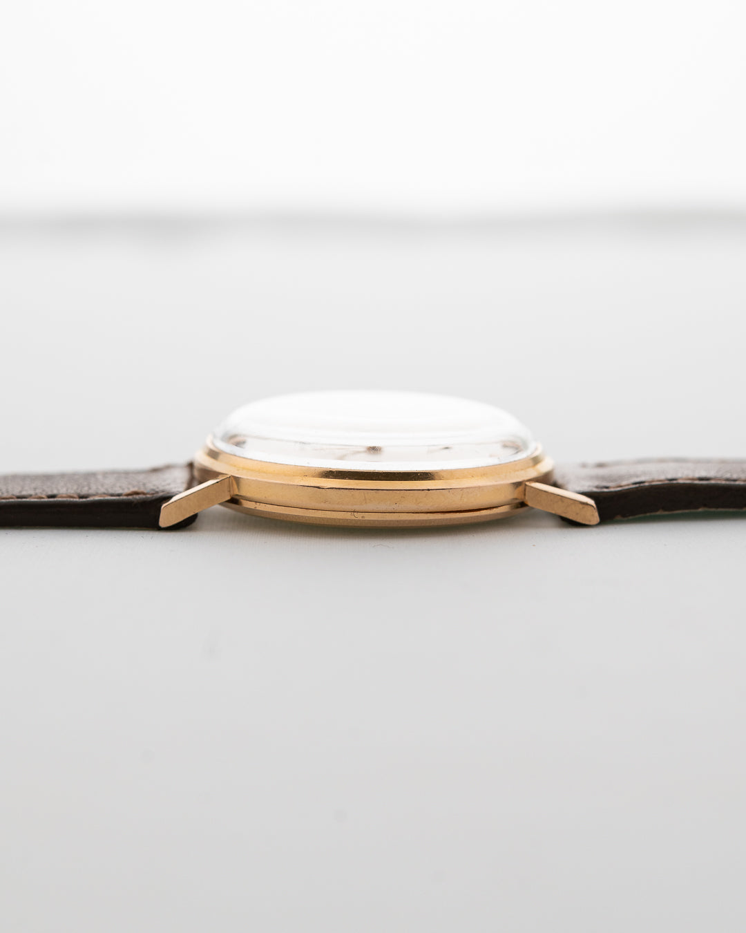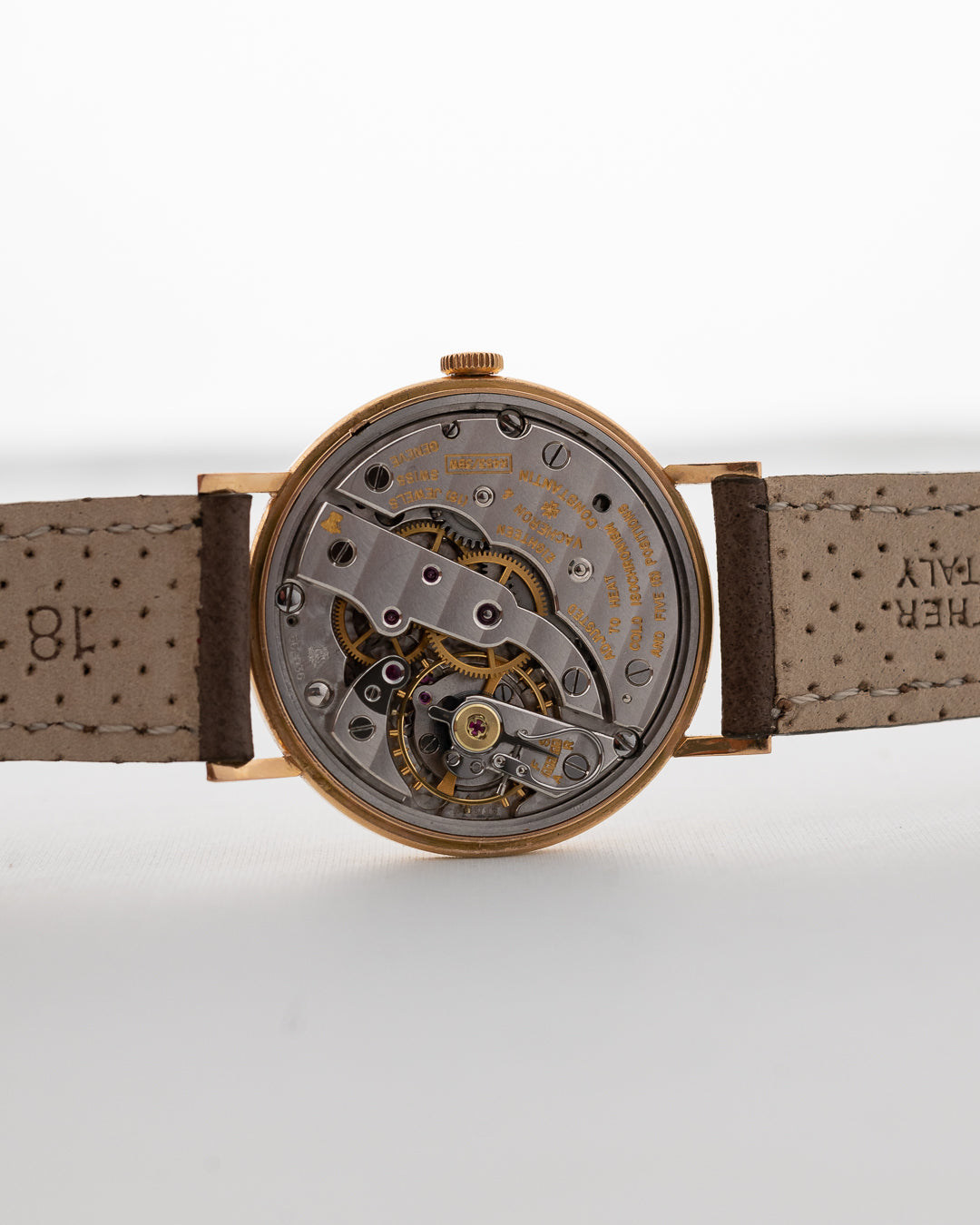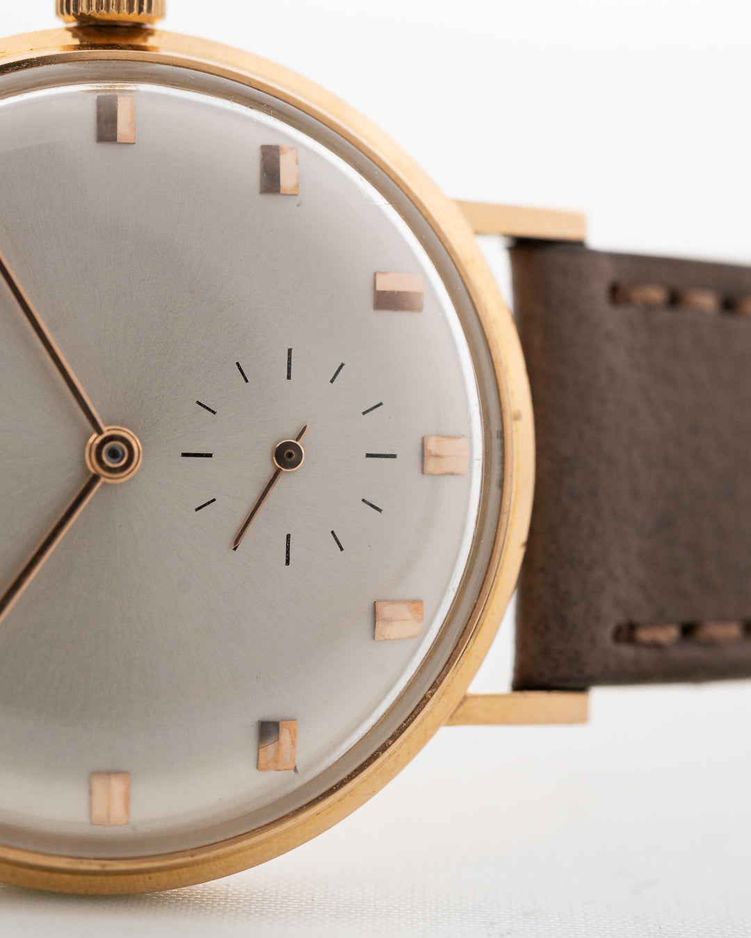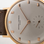 Qui abbiamo un orologio Vacheron Constantin in oro rosa splendidamente rifinito, risalente al 1960, con indici rettangolari unici e un quadrante bianco incredibilmente pulito con secondi secondari.