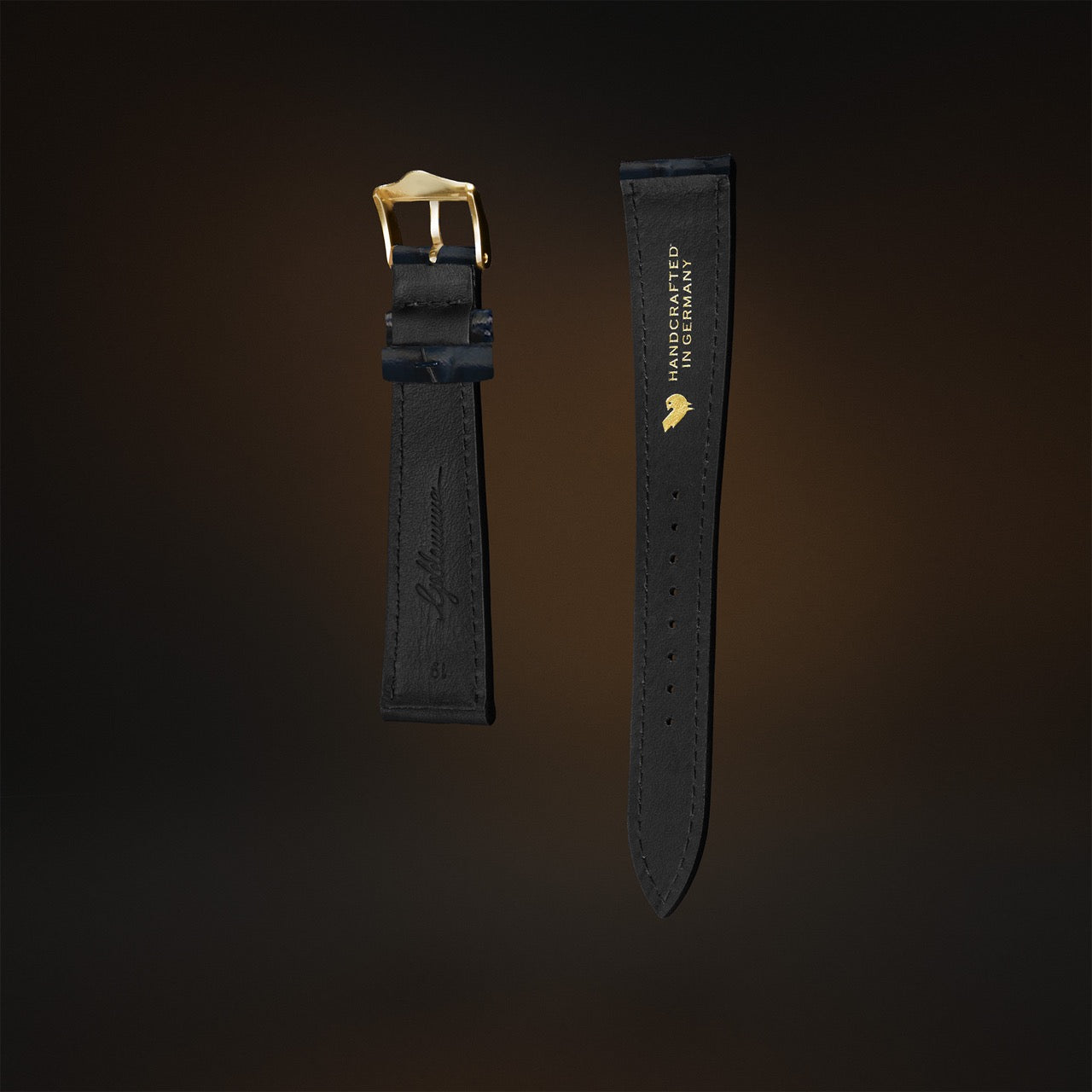 Realizzata a mano con finezza, la fibbia curva in acciaio inox da 14 mm è disponibile in oro, oro rosa o acciaio. Ispirato all'eleganza classica dell'orologeria, il logo GOLDAMMER finemente inciso sottolinea la nostra dedizione all'artigianato.