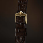 Realizzato in pregiata pelle di vitello italiana con un motivo di alligatore in rilievo, il cinturino offre una texture esotica e lucente, pur essendo sostenibile. È sottile solo 2 mm e si adatta perfettamente al polso fin dal primo utilizzo. L'esclusiva forma affusolata è un complemento discreto e fa da cornice al suo classico Orologio Vintage.