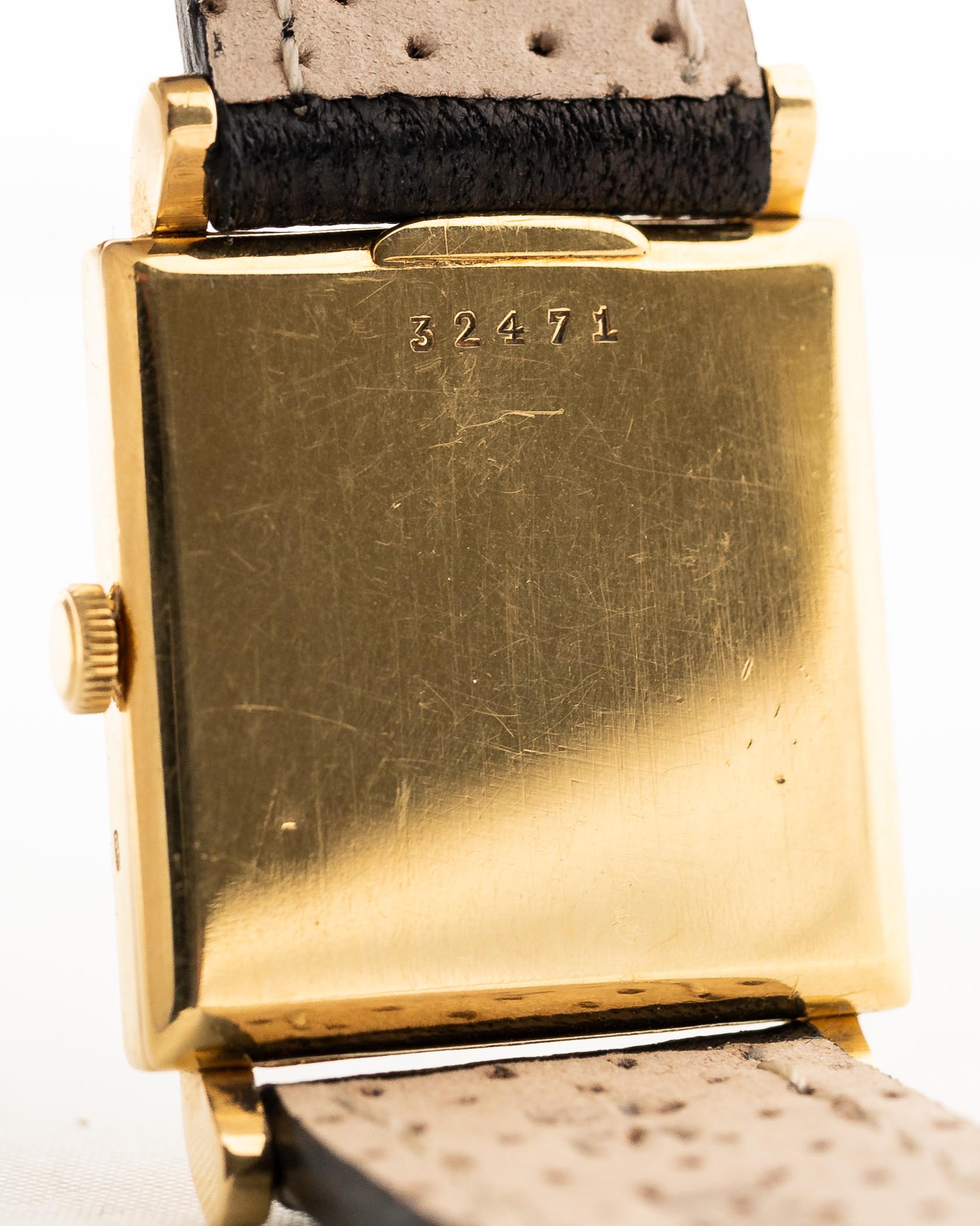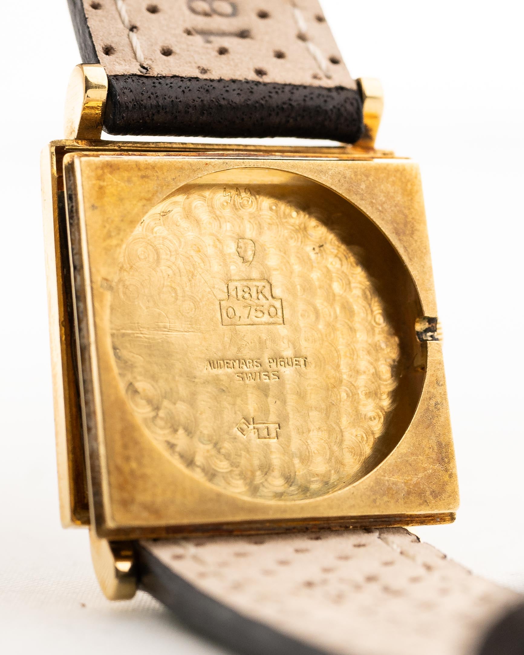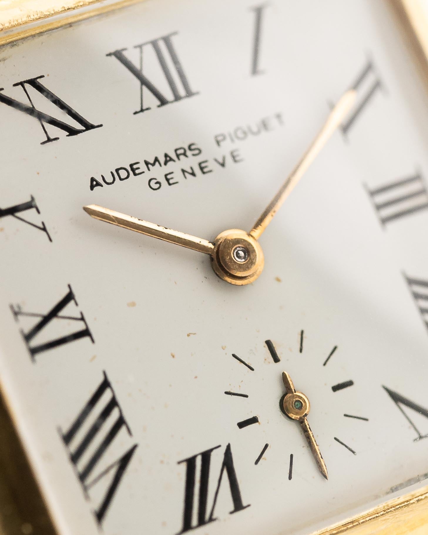 Qui abbiamo un orologio da abito Audemars Piguet degli anni '40, splendidamente rifinito, con un bellissimo quadrante bianco, numeri romani e la scritta AP a ore dodici. Questo particolare pezzo si distingue per le sue splendide condizioni, la robusta cassa ultrasottile in oro giallo 18 carati e le anse tornite più spesse.